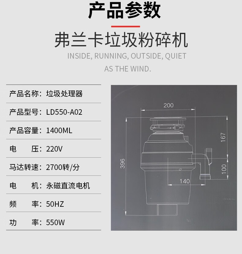 YWZR Swiss garbage disposer kitchen food waste crusher food wet treatment LD550-A02