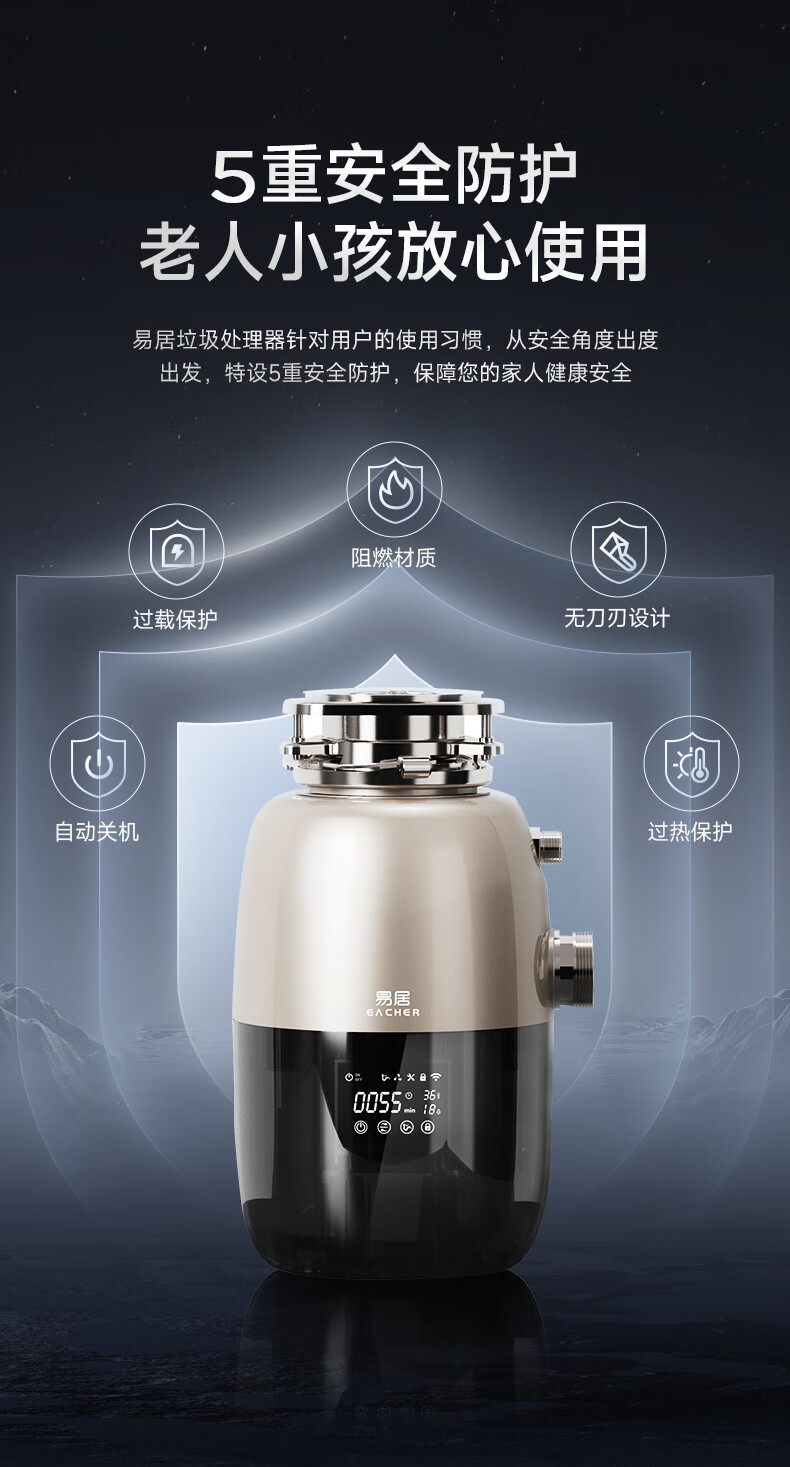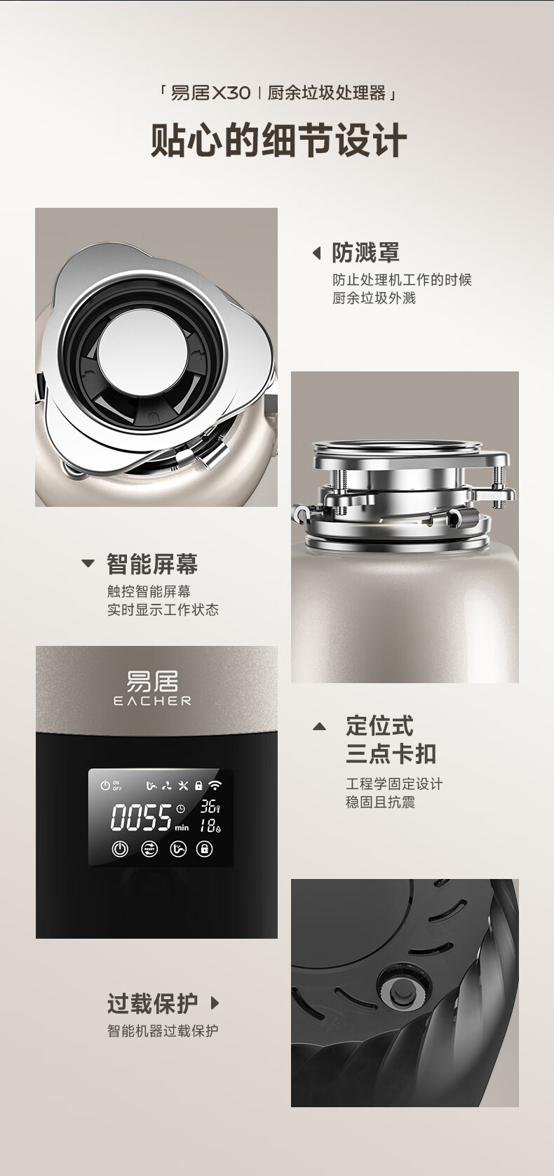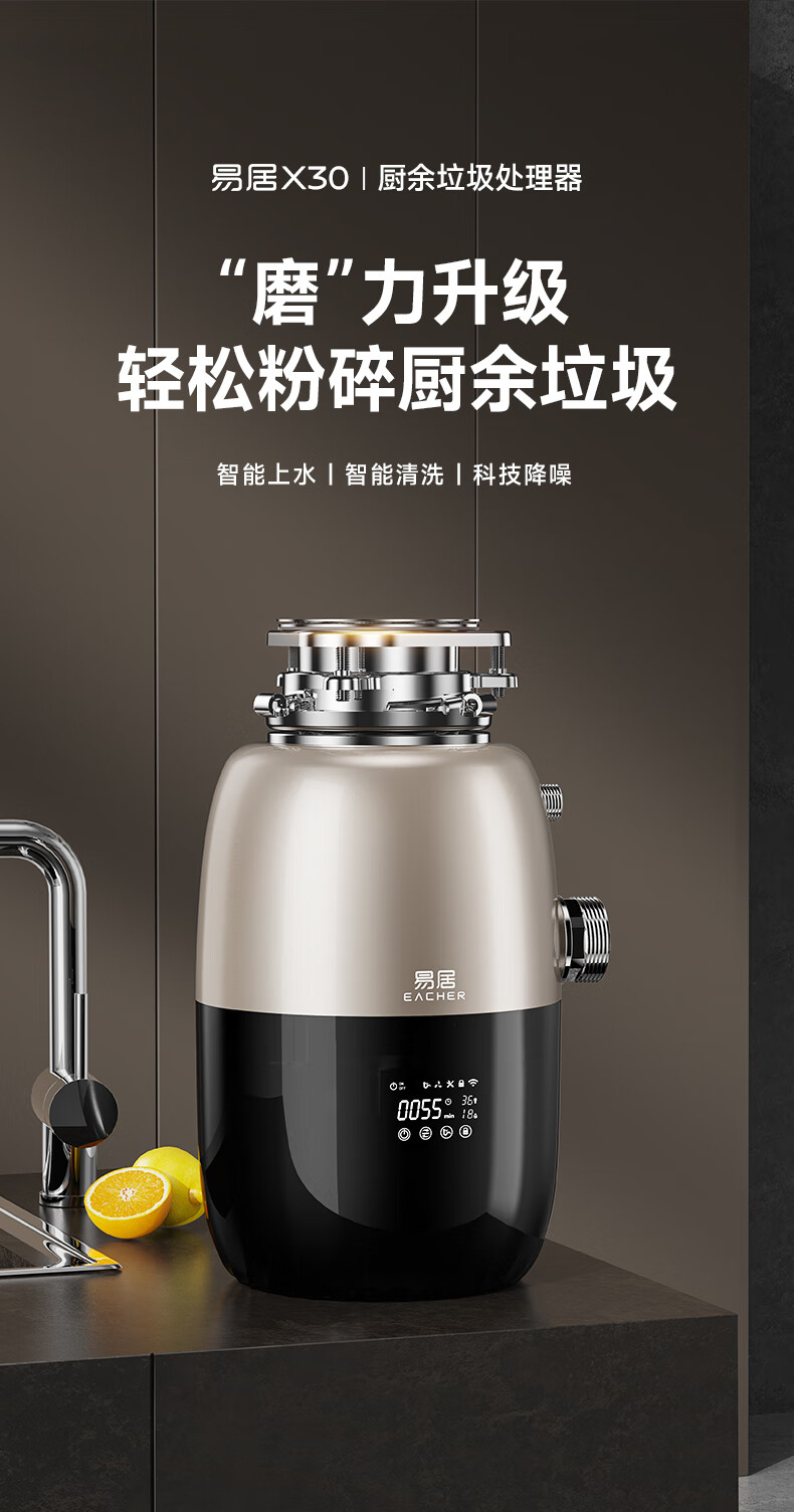 Yiju Sino-German joint venture automatic water inlet food waste disposer household kitchen food waste crusher high-end Zhenxiang model X30