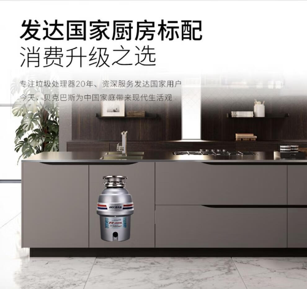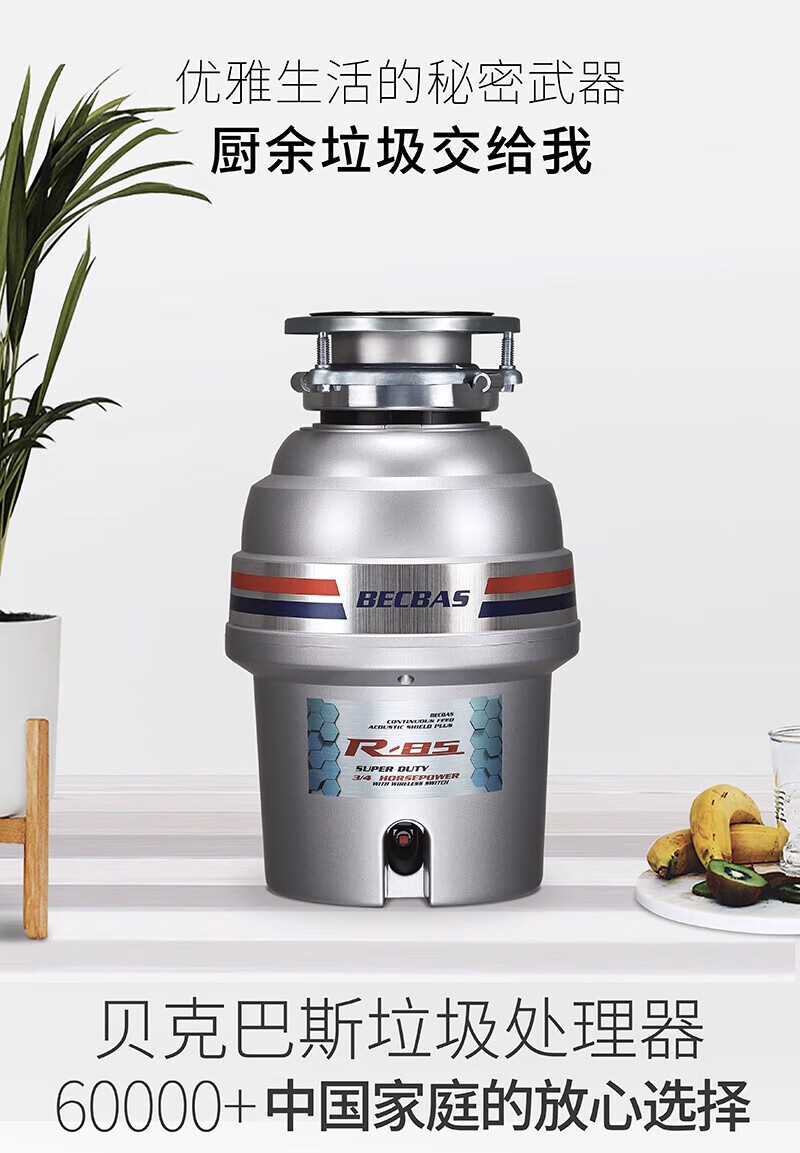 BECBAS R85 industrial high-speed kitchen food waste disposer, fully automatic, light gray