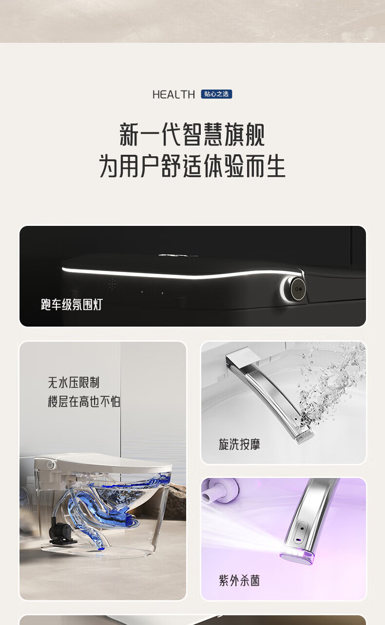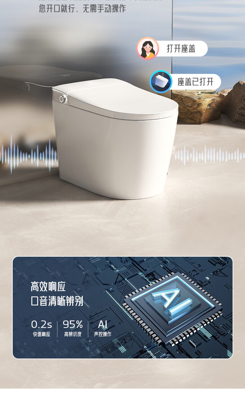 JOMOO smart toilet fully automatic flip lid voice control built-in foam shield siphon instant heating all-in-one toilet ZS780 gray - slip back high configuration - UV - with water tank (including 400mm