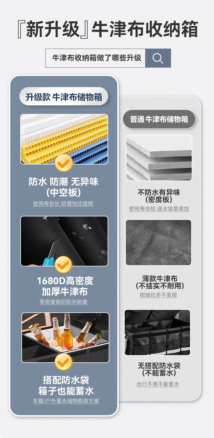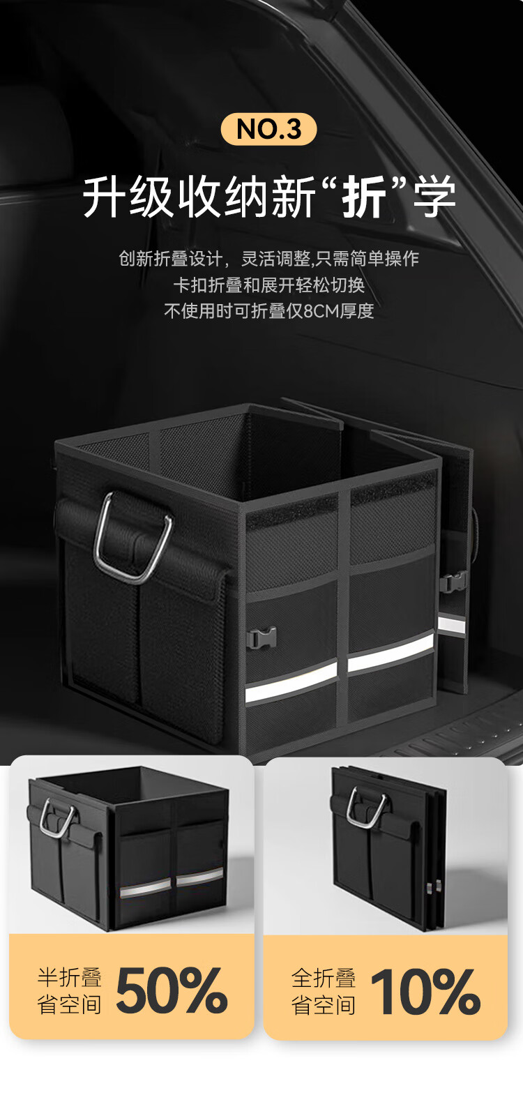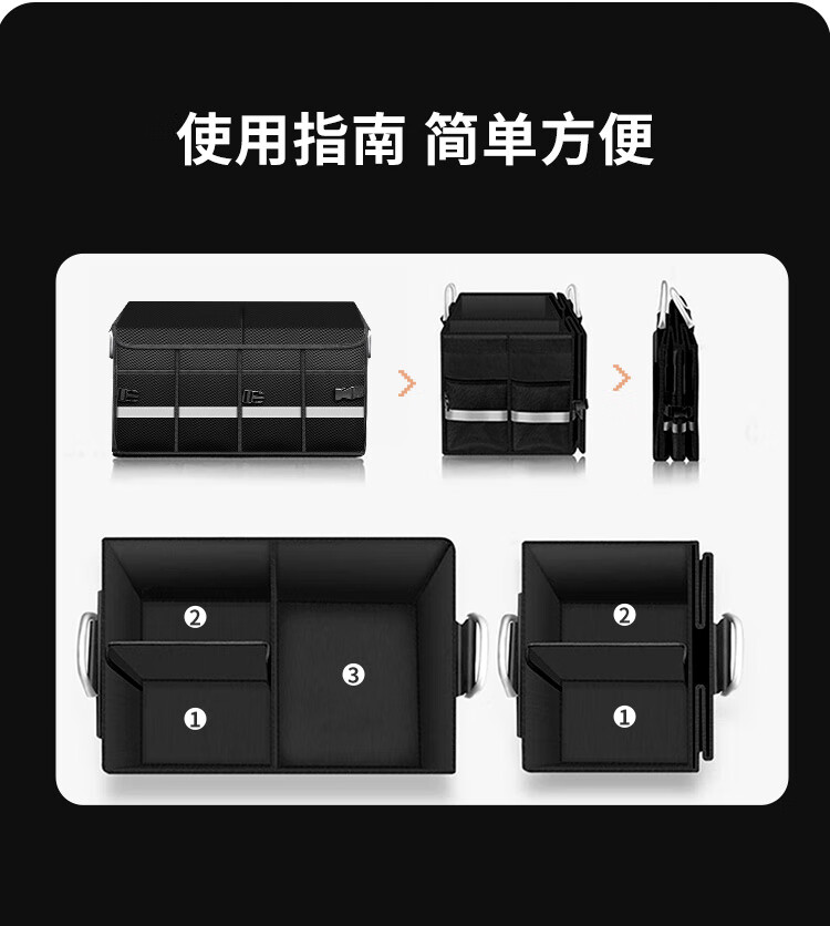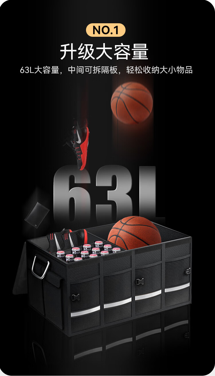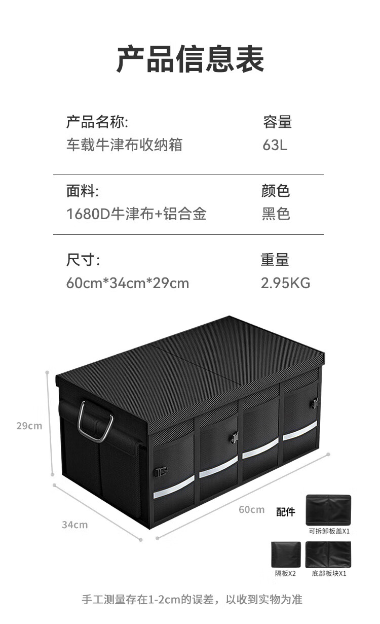 Yueka trunk storage box car storage box car folding multi-functional partitioned trunk storage box-Oxford cloth 63L