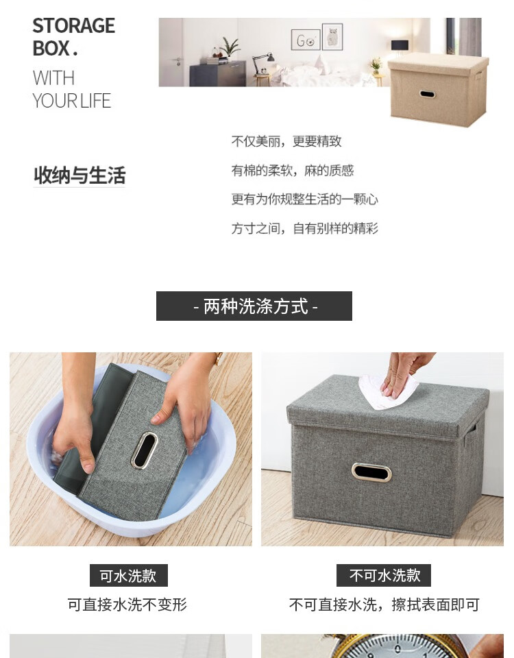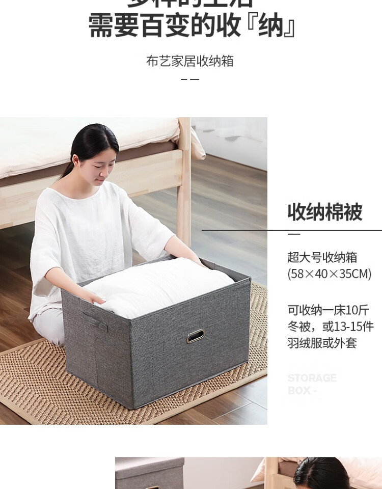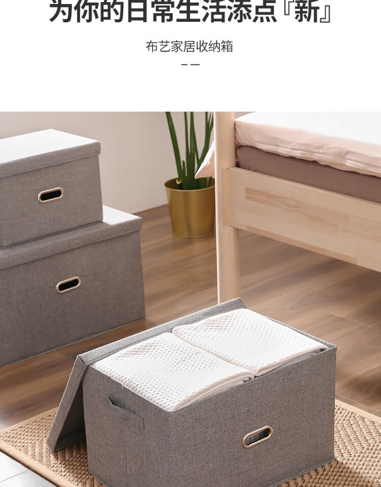 Mo Lin Storage Box Fabric Box Wardrobe Storage Box Organizing Box Household Clothes Storage Box Foldable Box Brown Medium Size (37*27*26cm)