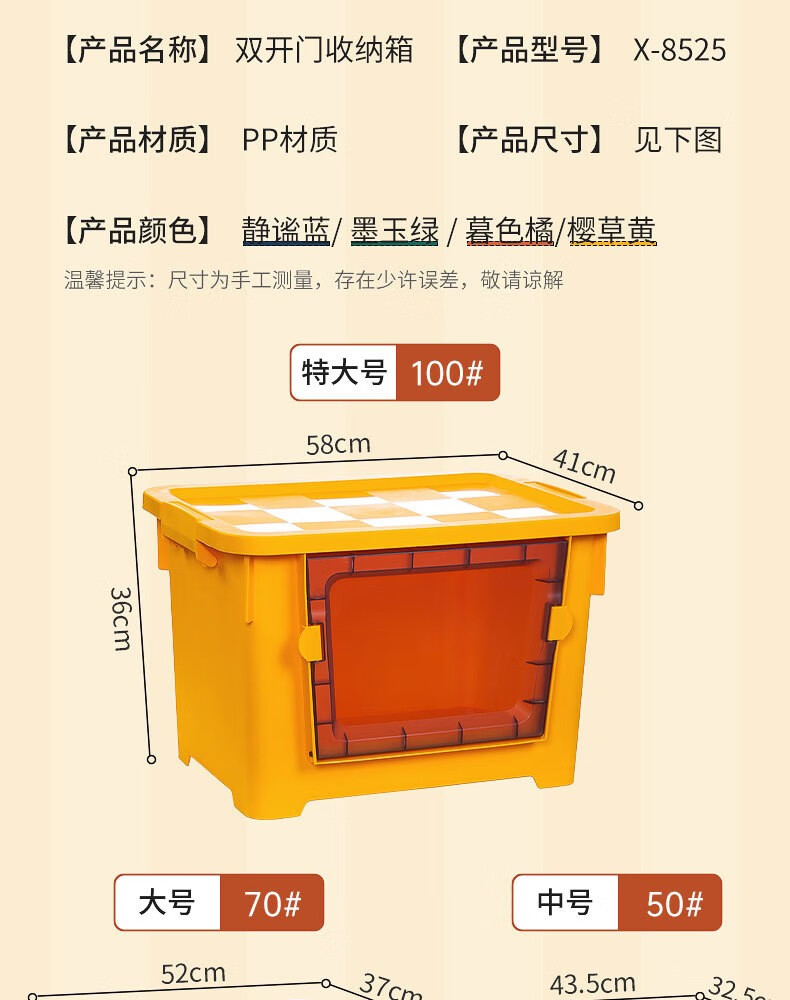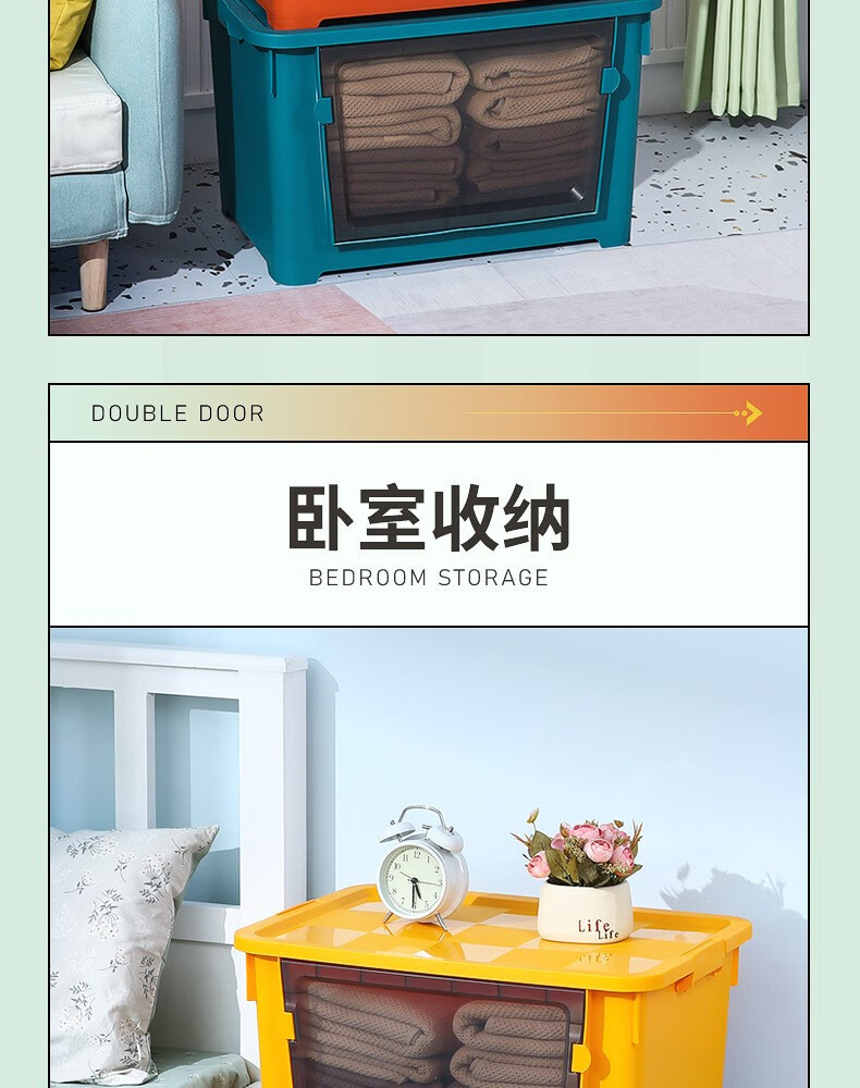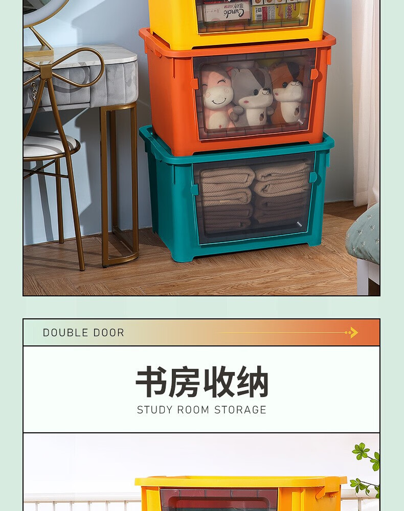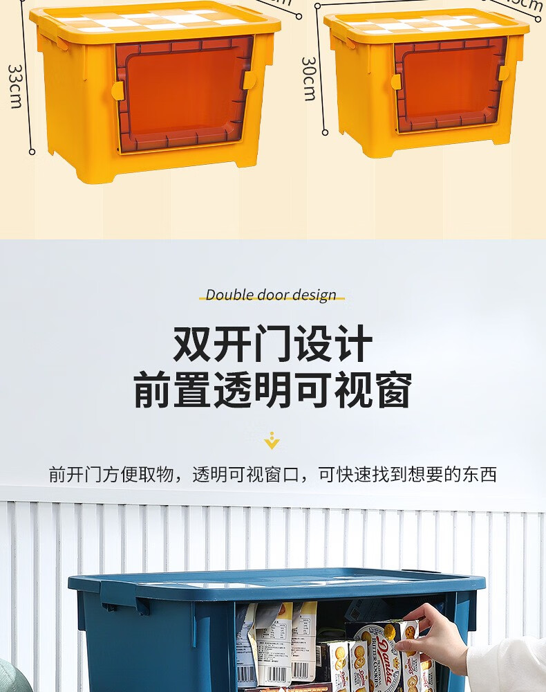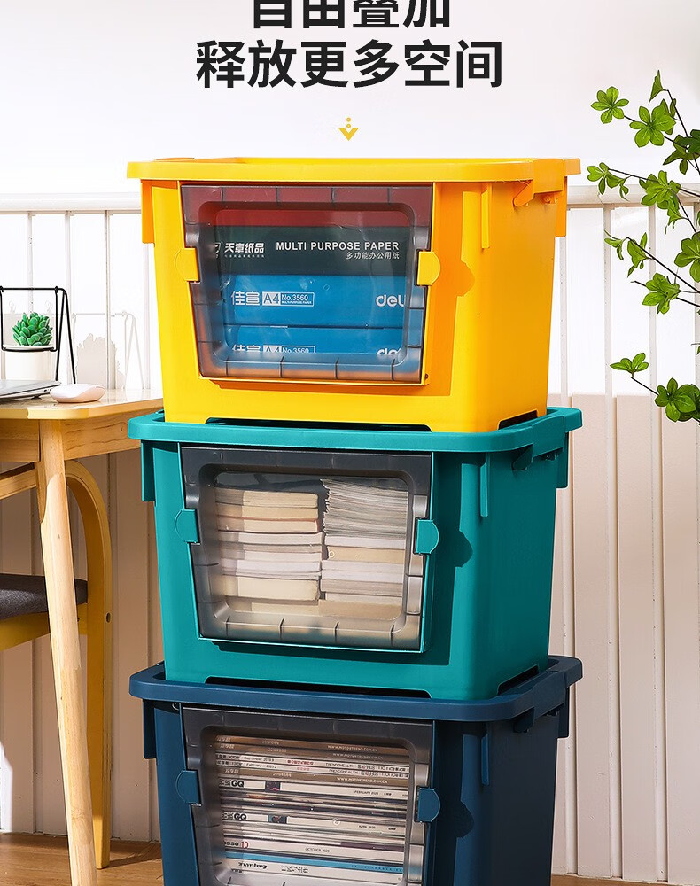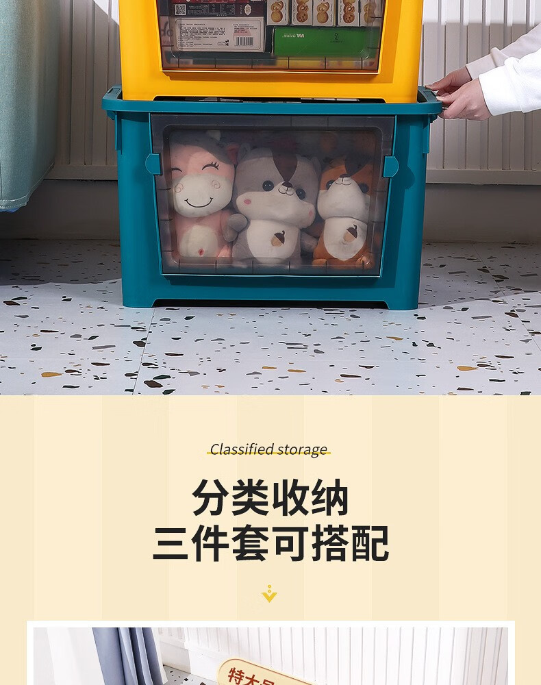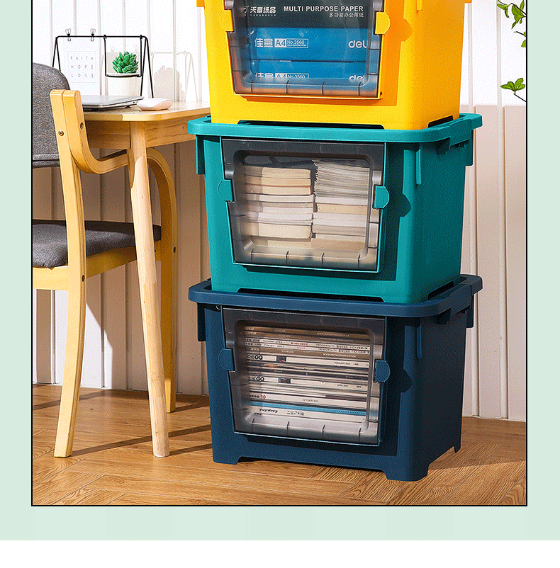 Muranoel front-opening storage box plastic side-opening large baby and children's toy clothing storage box storage transparent box Nordic pink 100L length 58*width 41*height 36cm