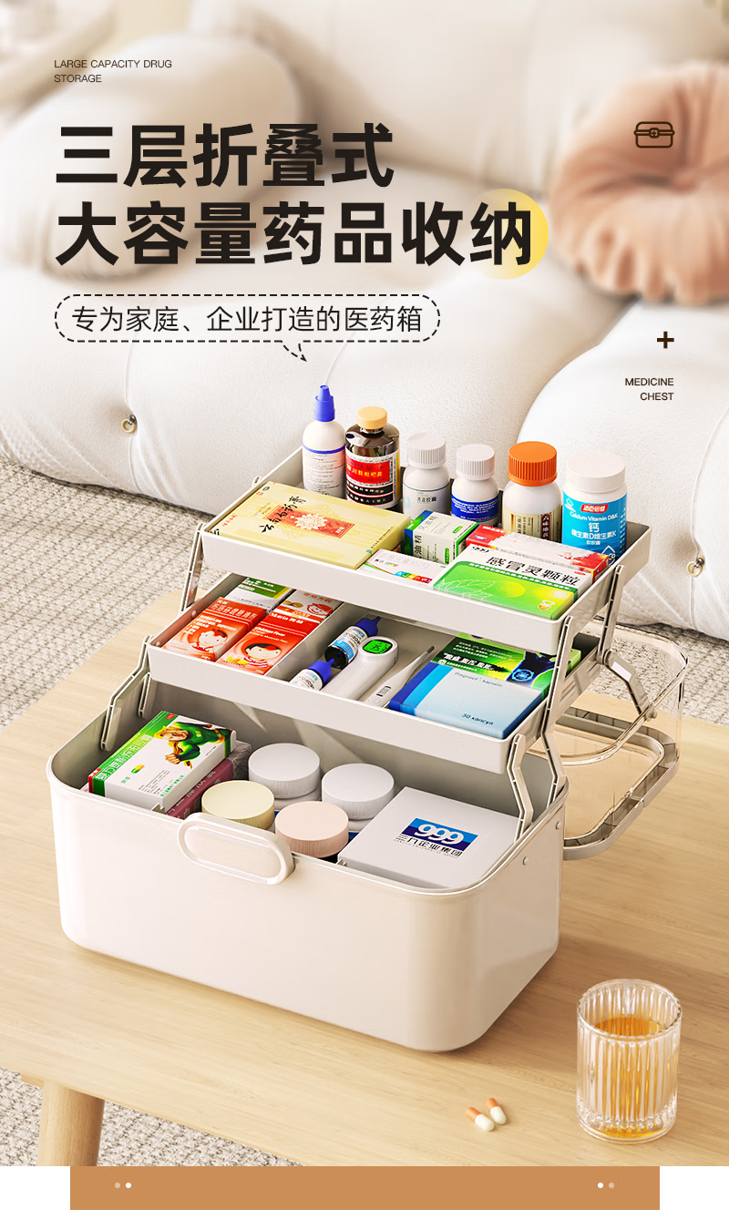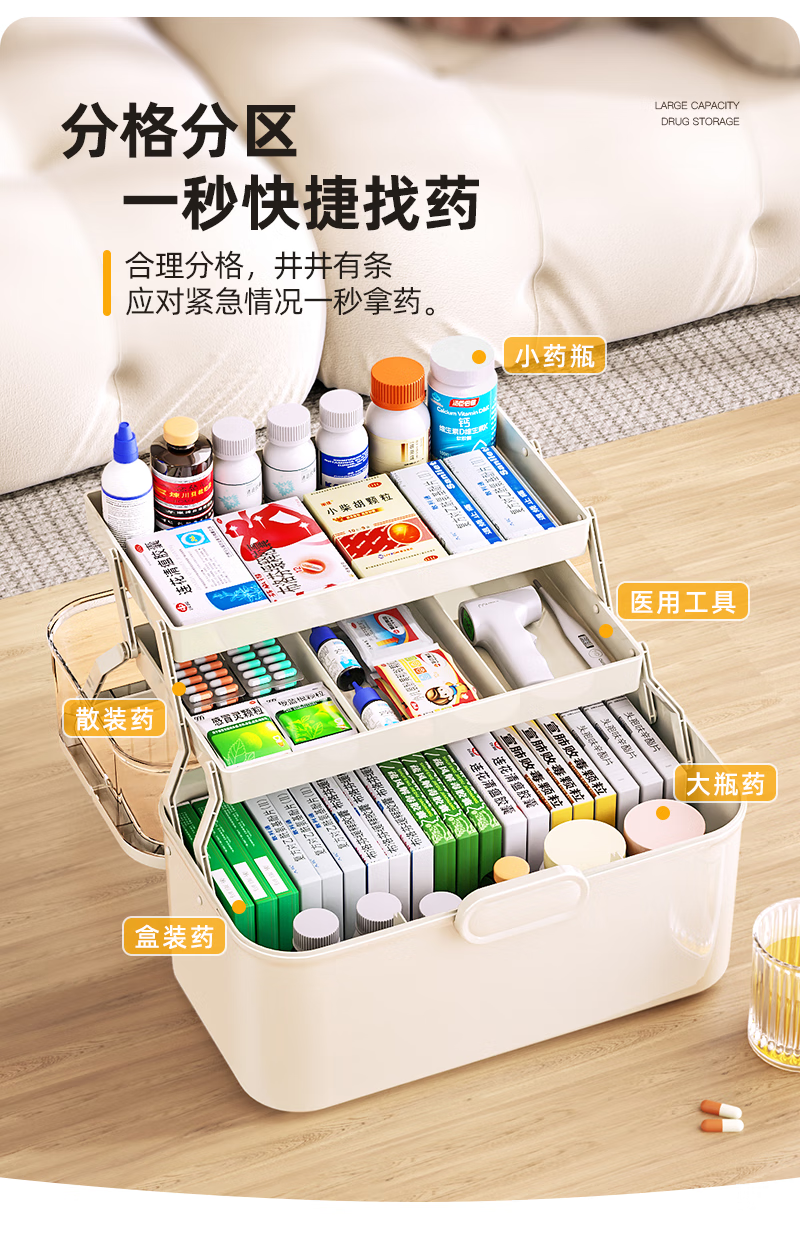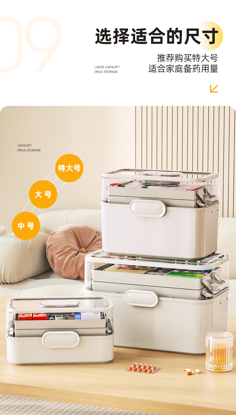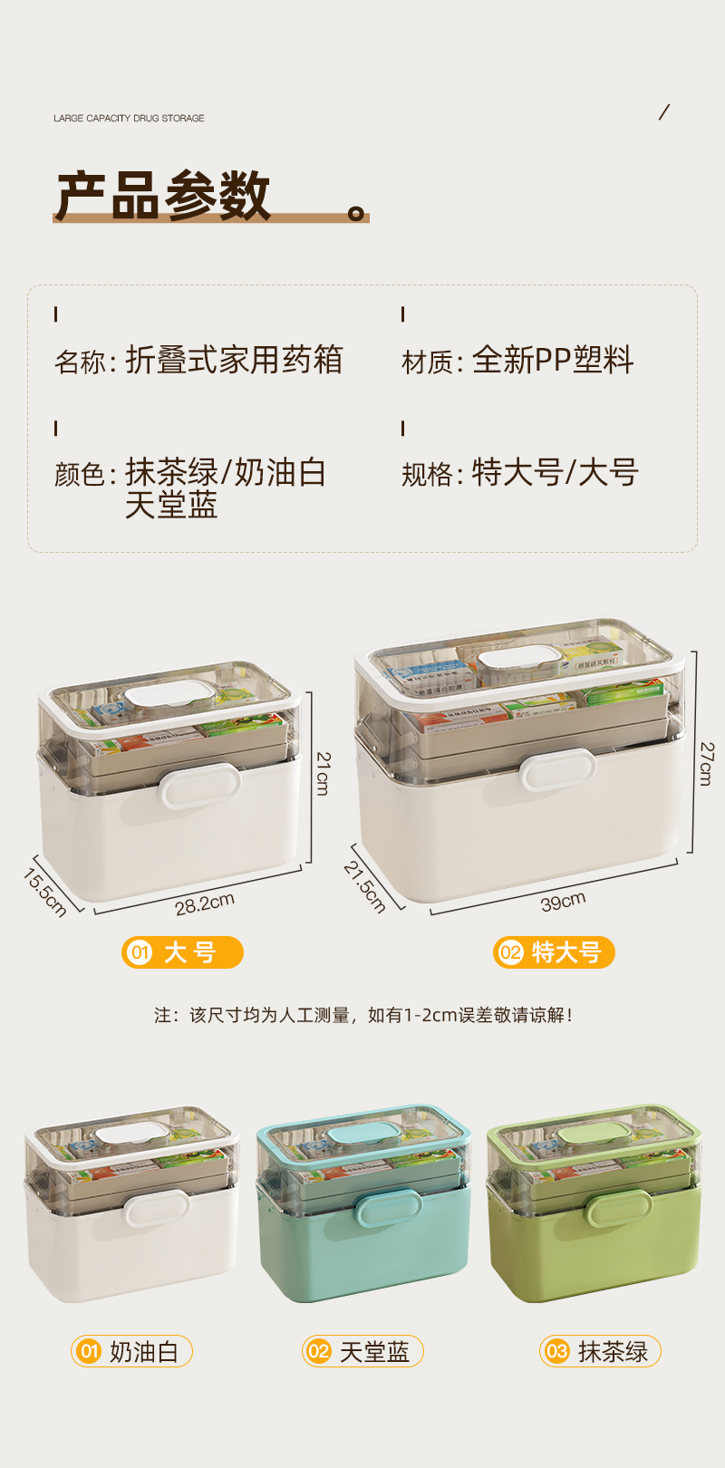 ABDT Medical Box Home Extra Large Capacity Medicine Storage Box Home Pack Emergency First Aid Box Multi-Layer Organizing Small Medicine Box Transparent Cover - Matcha Color - Large Size