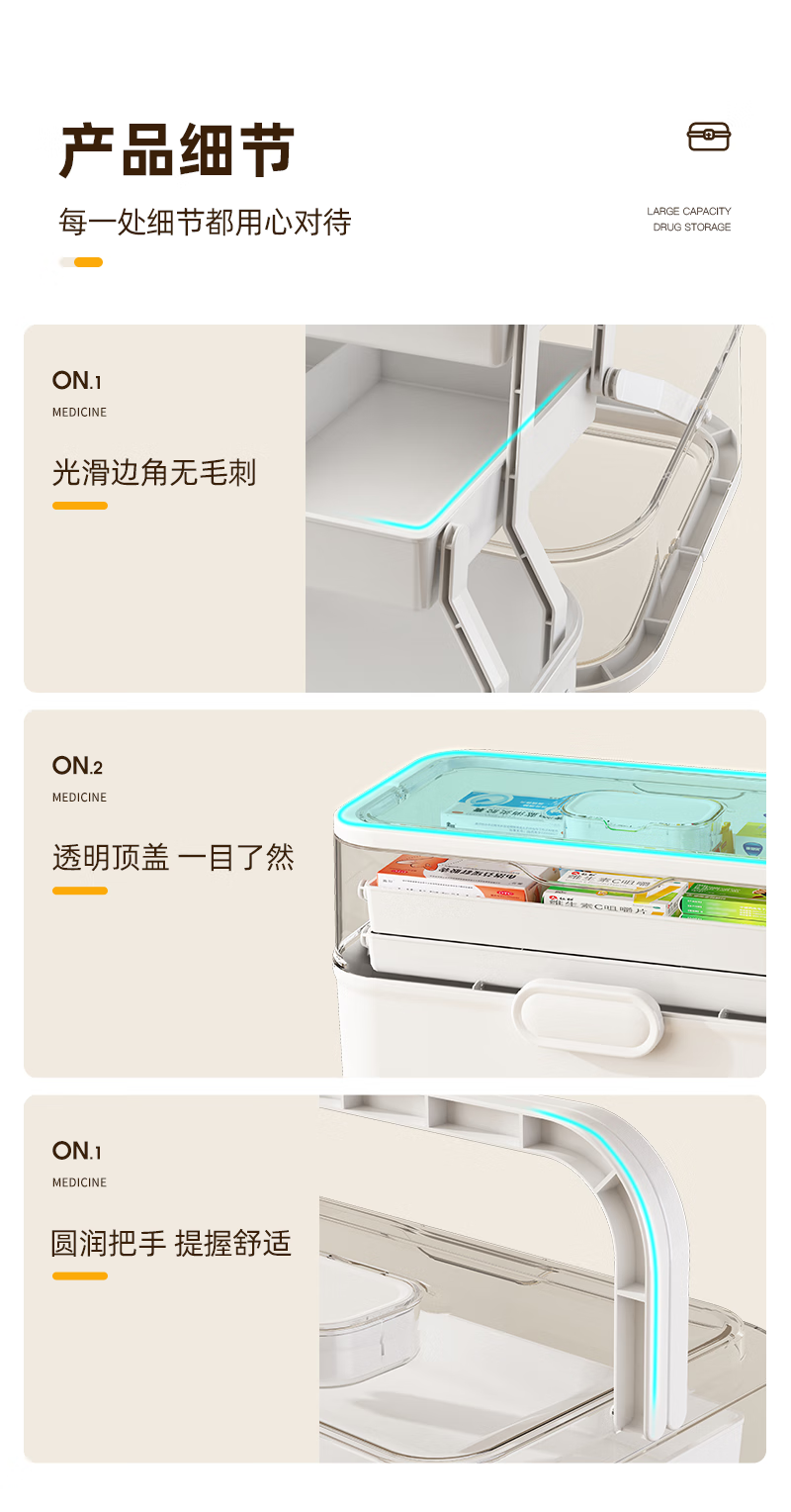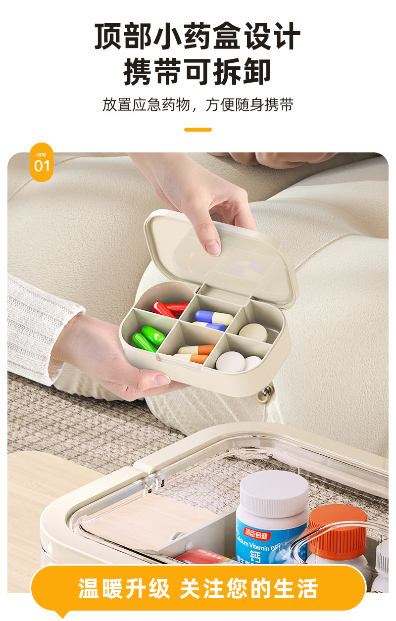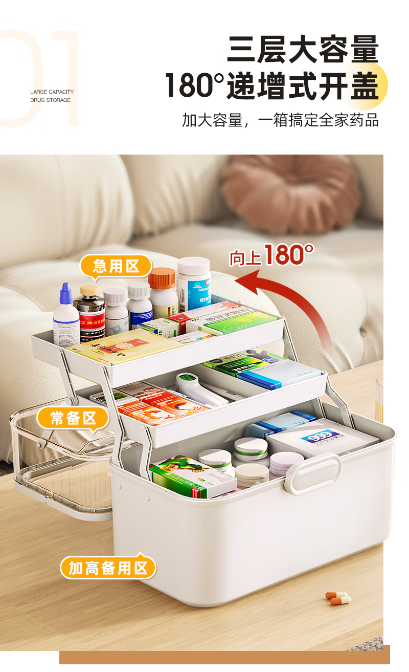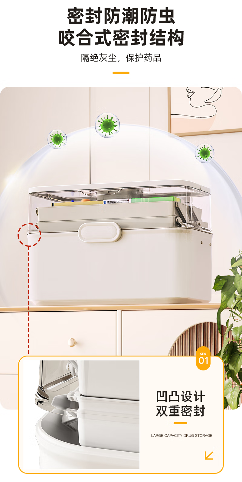 ABDT Medical Box Home Extra Large Capacity Medicine Storage Box Home Pack Emergency First Aid Box Multi-Layer Organizing Small Medicine Box Transparent Cover - Matcha Color - Large Size