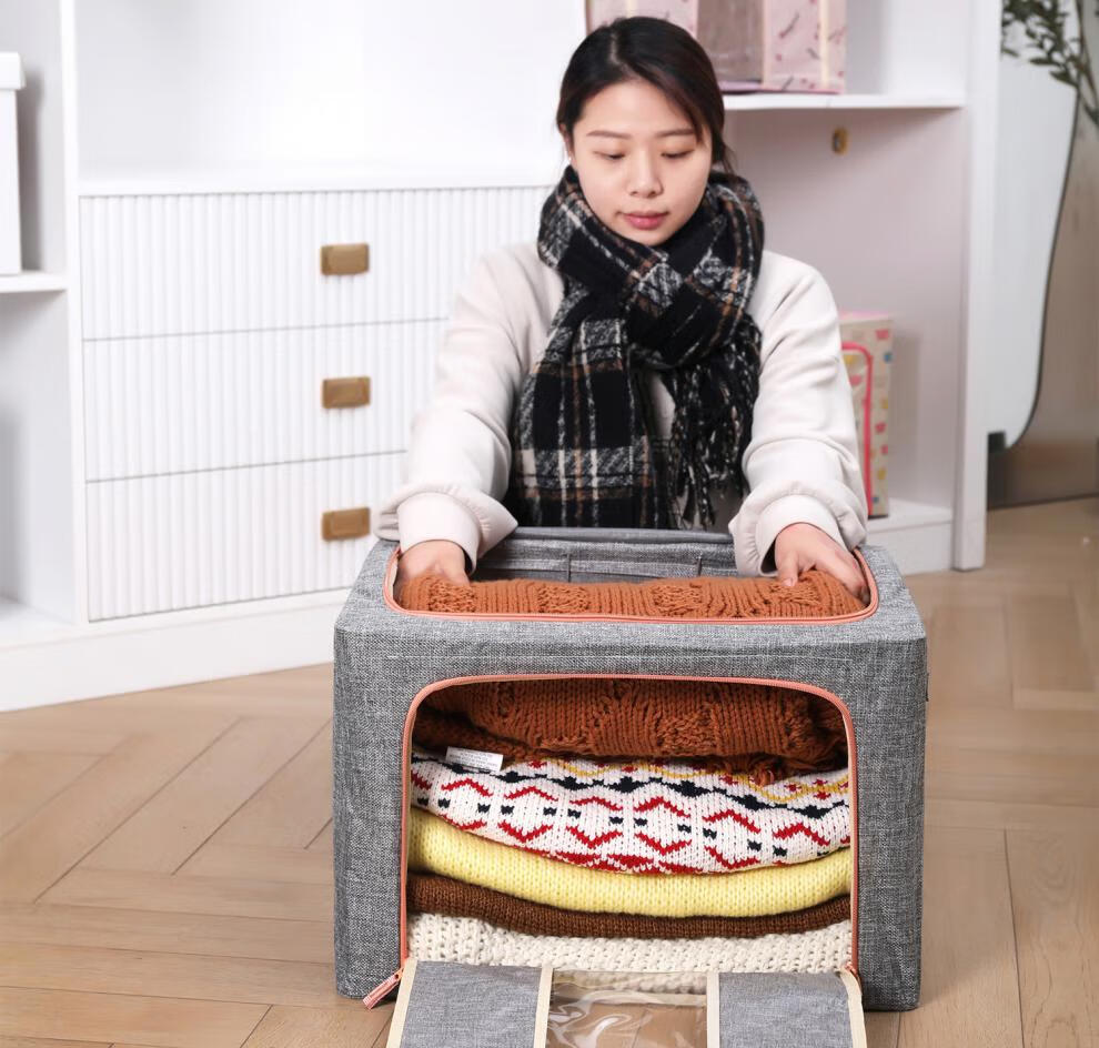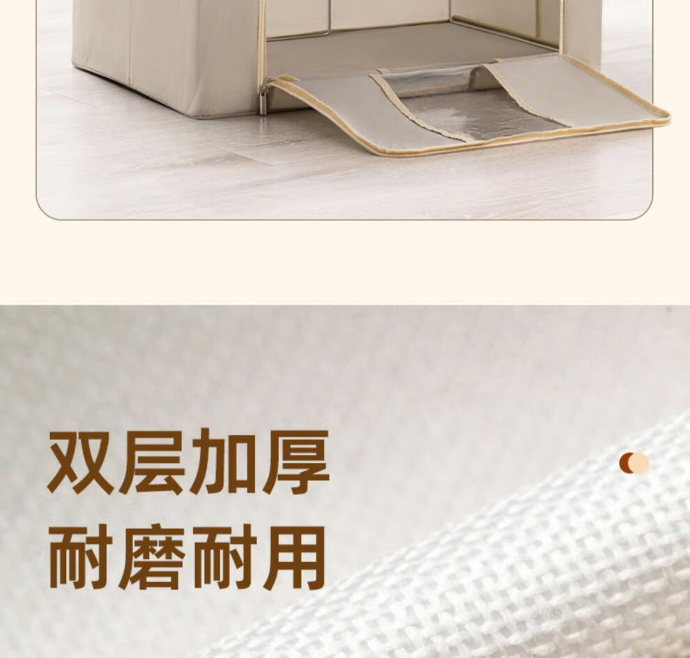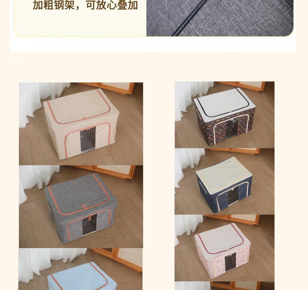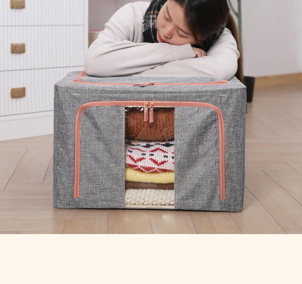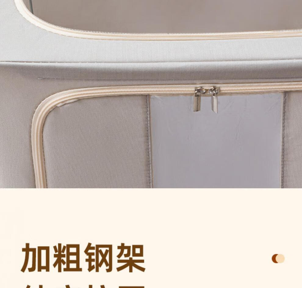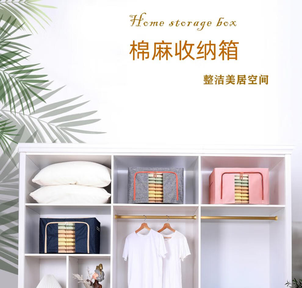 Chenzhi Shangpin fabric storage box cotton and linen foldable storage box thickened steel frame 100% clothing storage box household beige 66L (50*40*33CM)