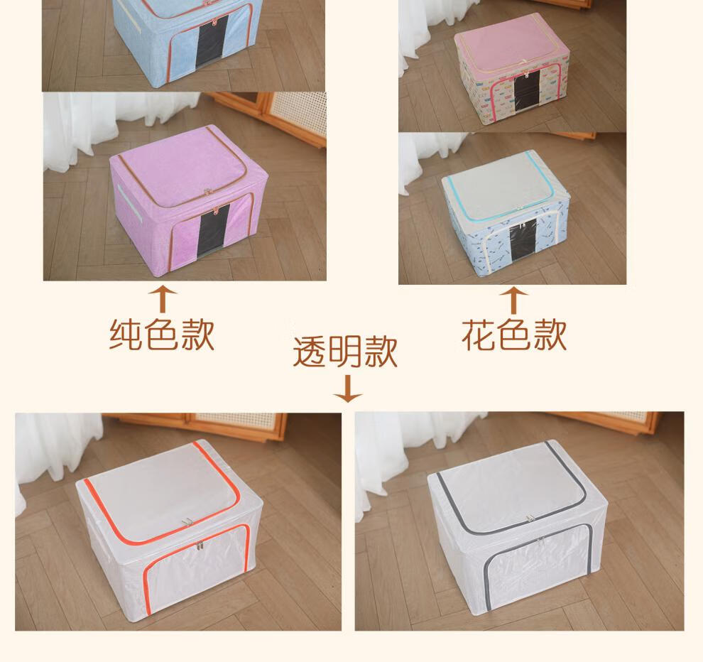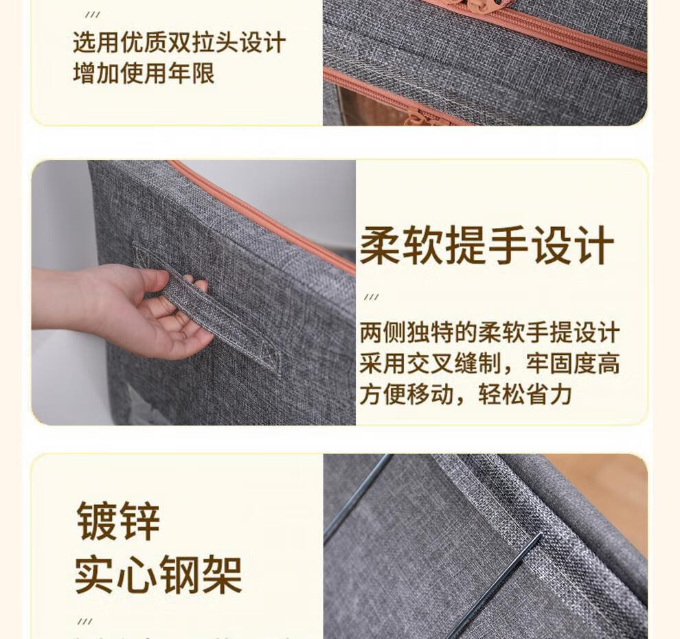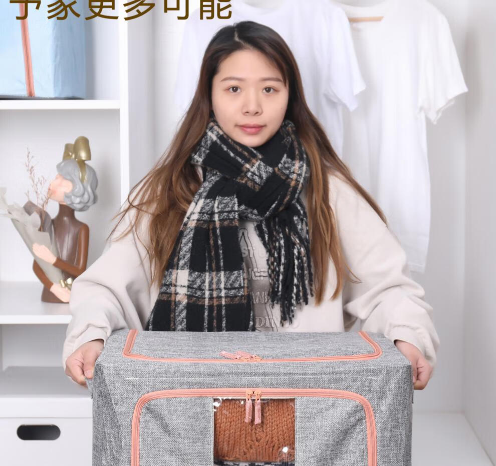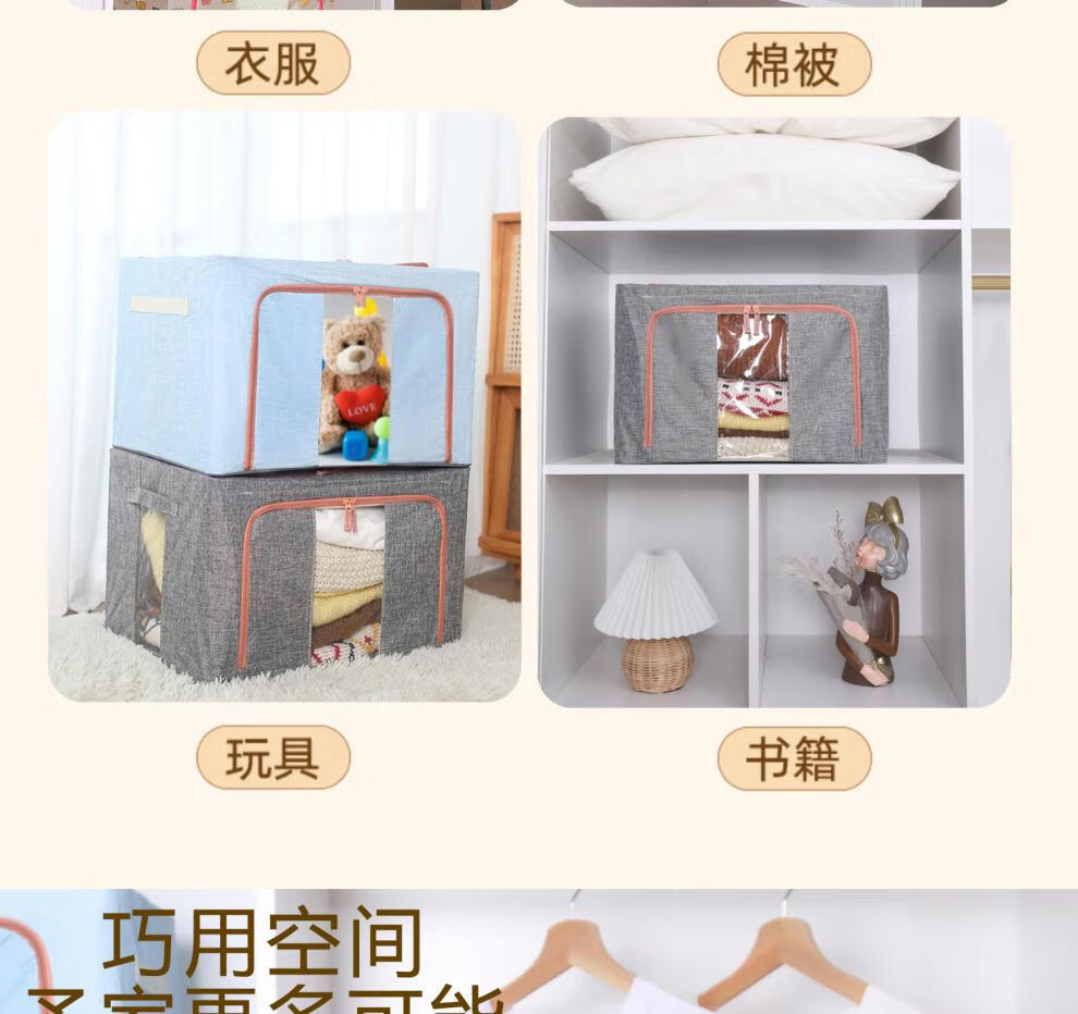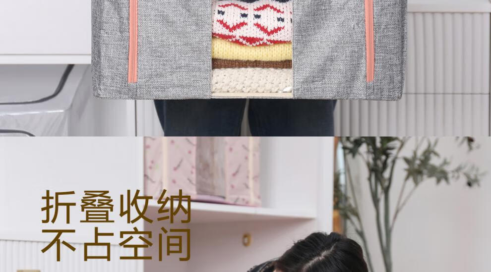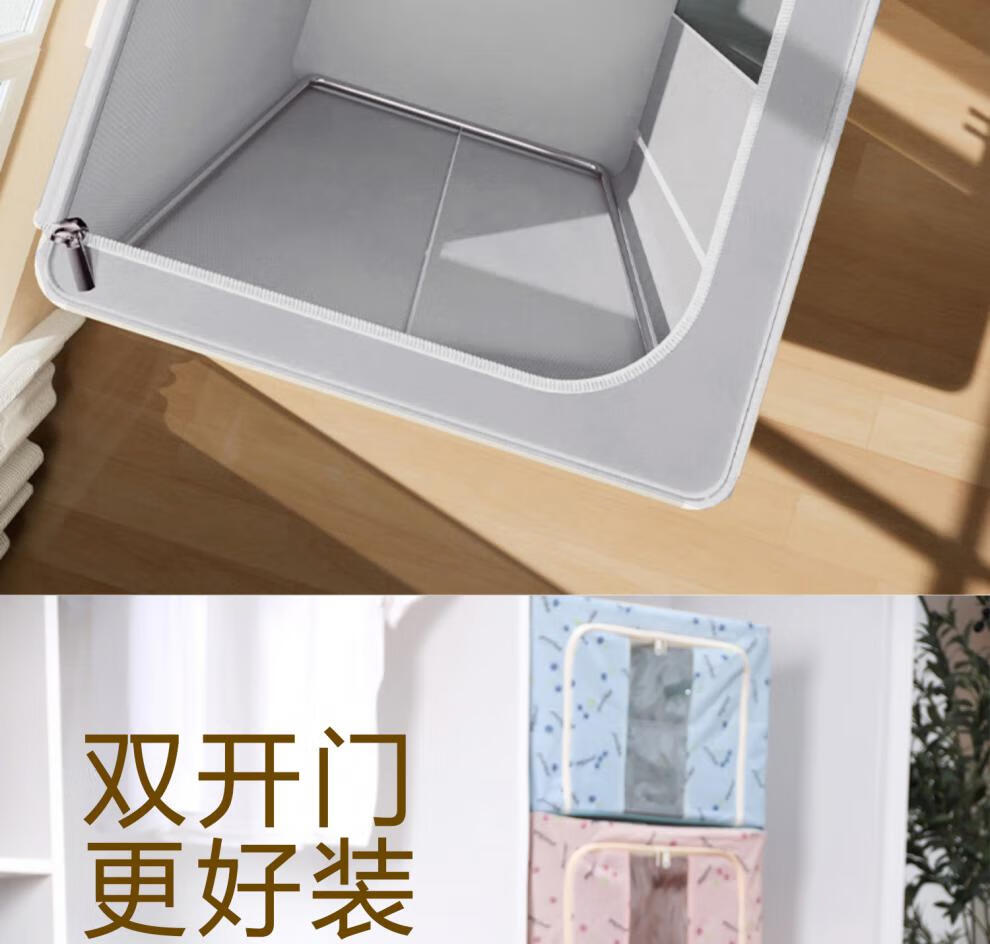 Chenzhi Shangpin fabric storage box cotton and linen foldable storage box thickened steel frame 100% clothing storage box household beige 66L (50*40*33CM)
