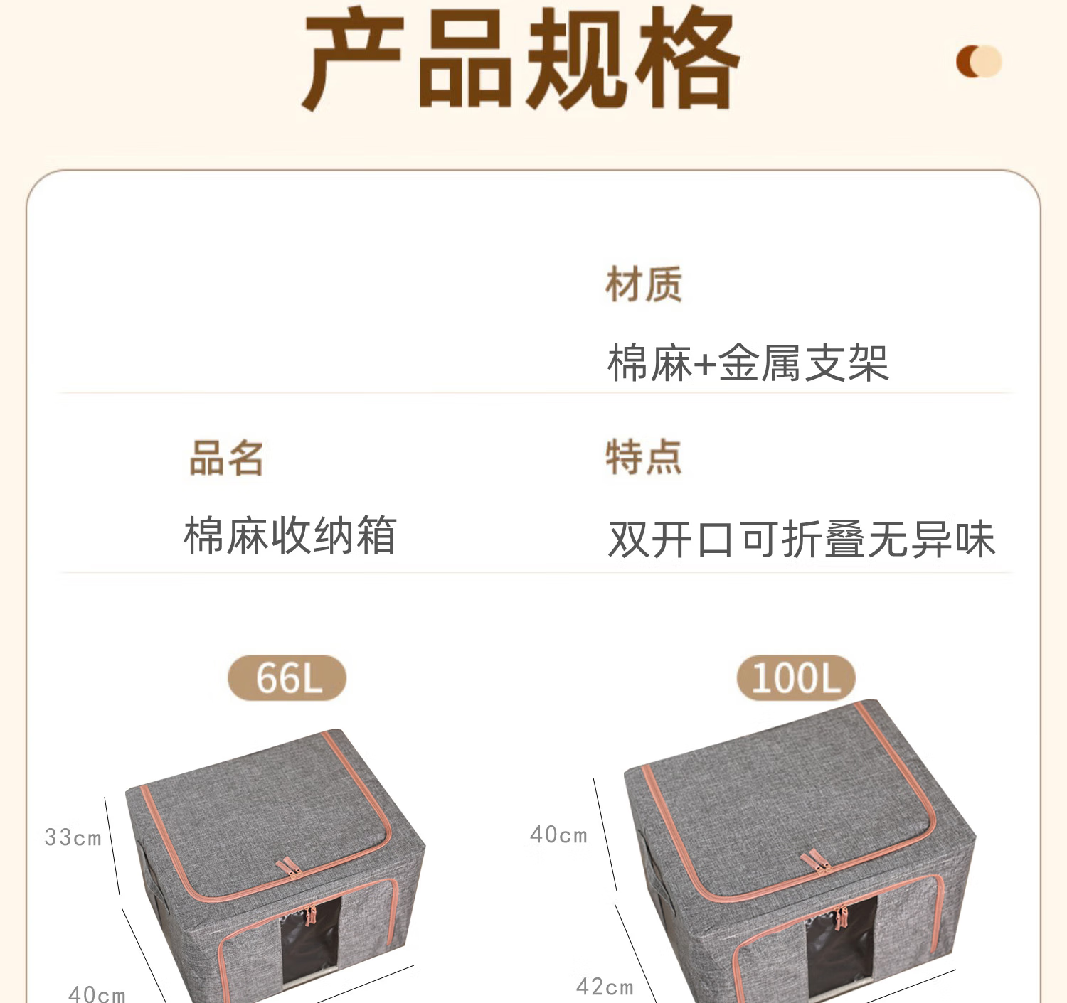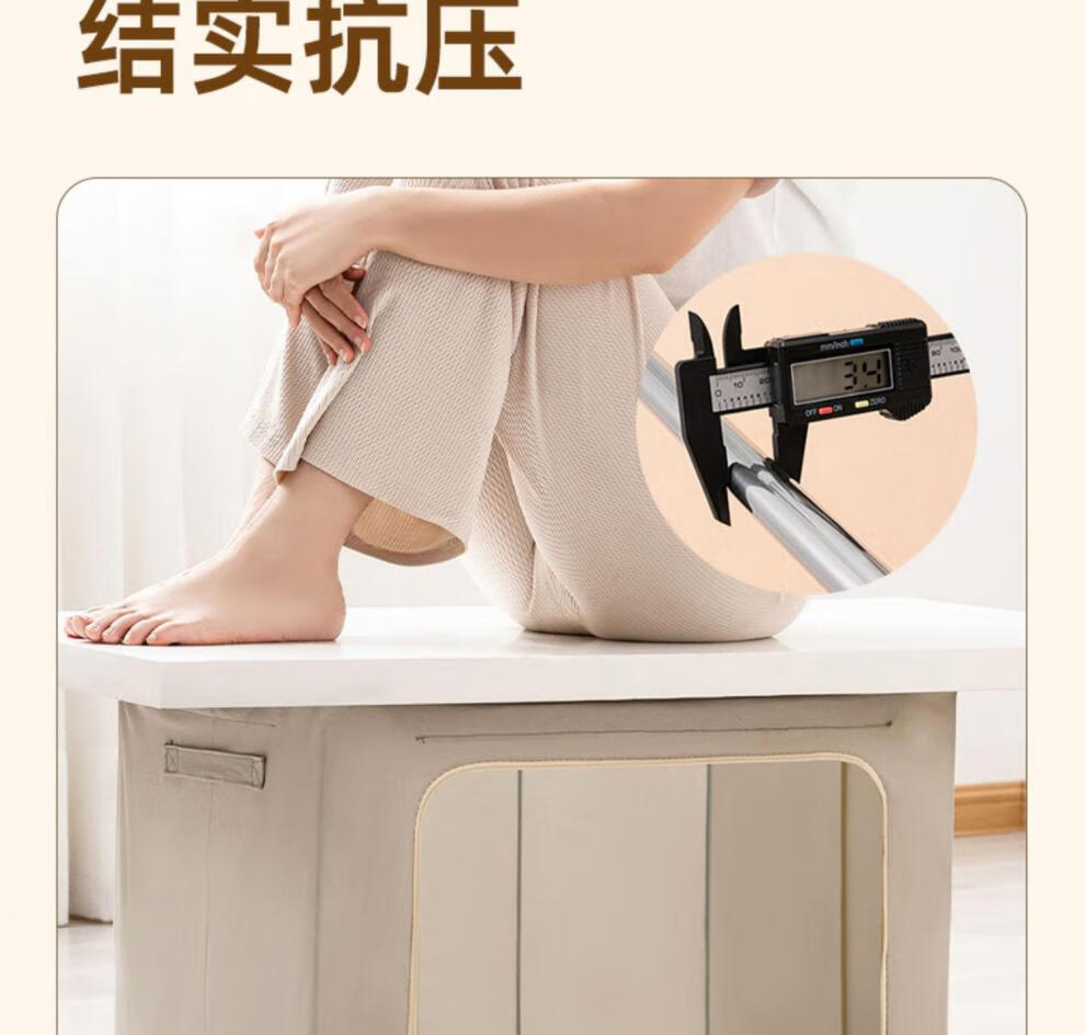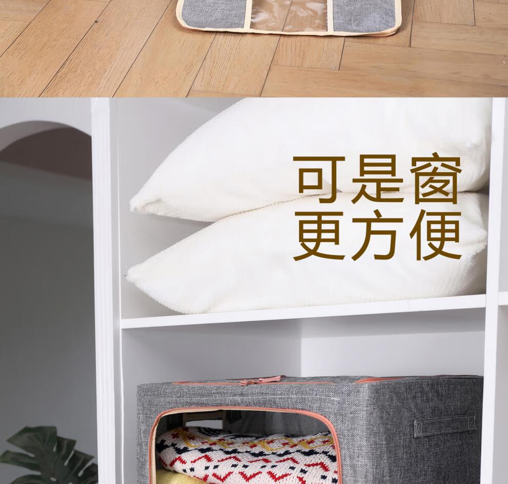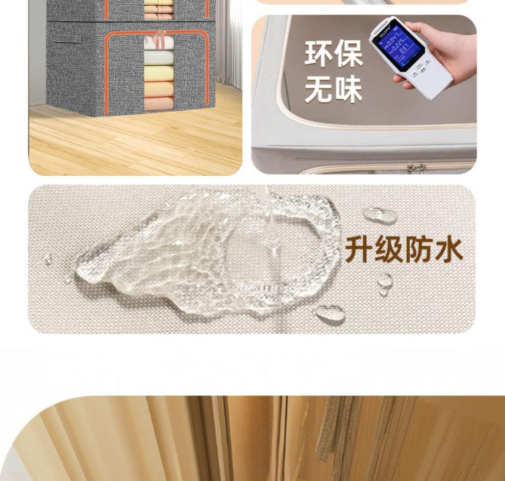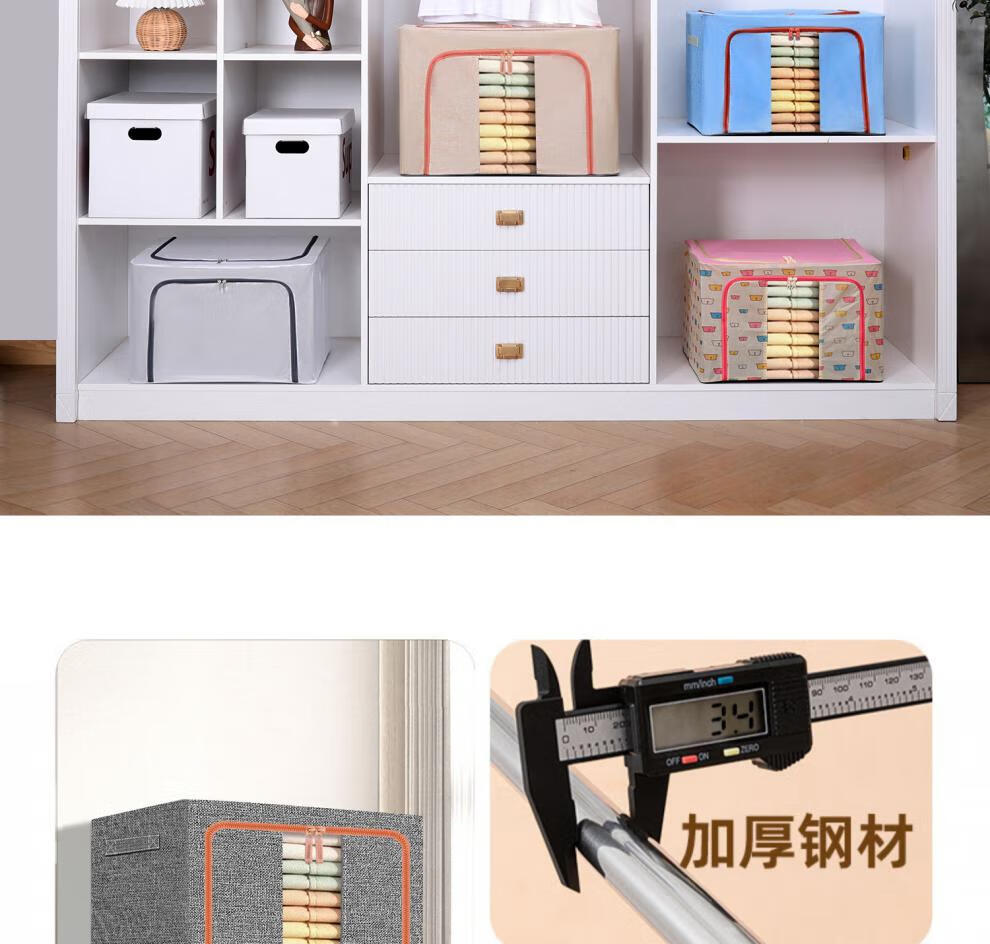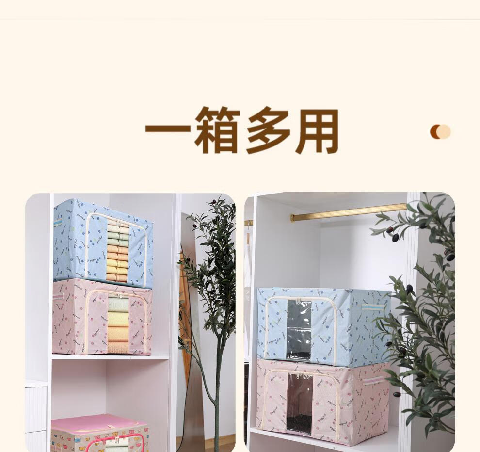 Chenzhi Shangpin fabric storage box cotton and linen foldable storage box thickened steel frame 100% clothing storage box household beige 66L (50*40*33CM)