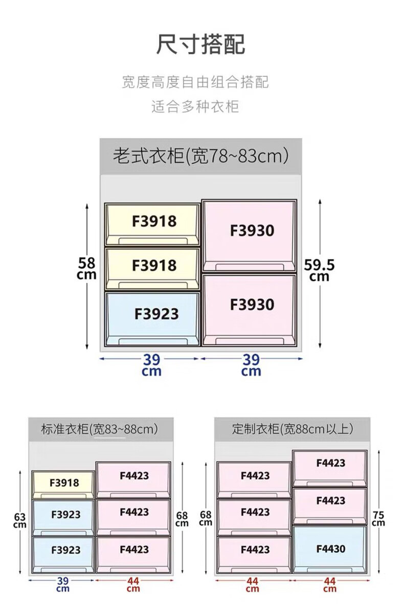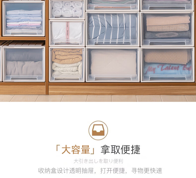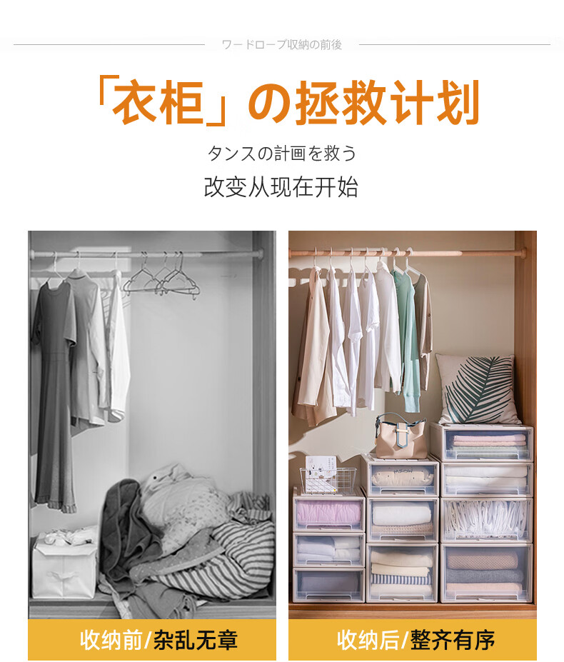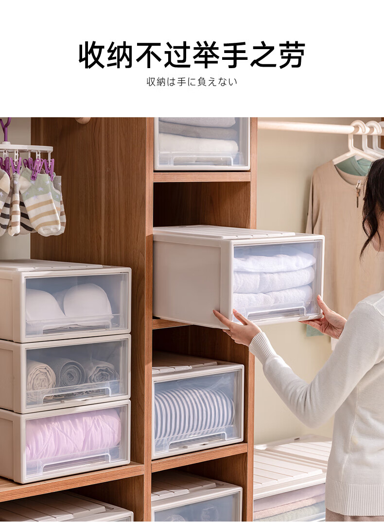 Wiayunuo Clothes Storage Box Drawer Storage Box Wardrobe Clothes Organizing Box Clothing Storage Box Household Plastic Depth 45* Width 30* Height 30CM Transparent One Pack