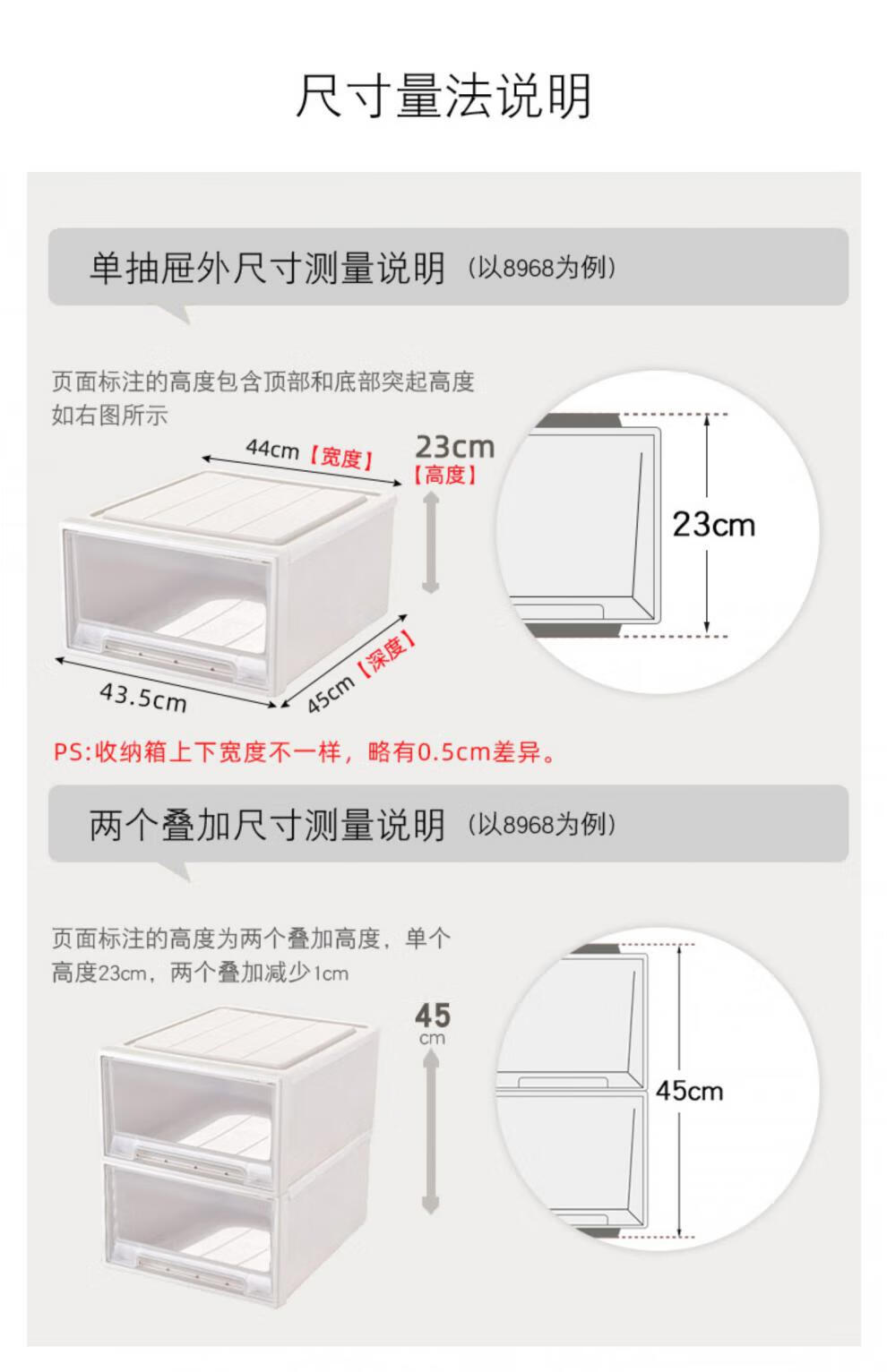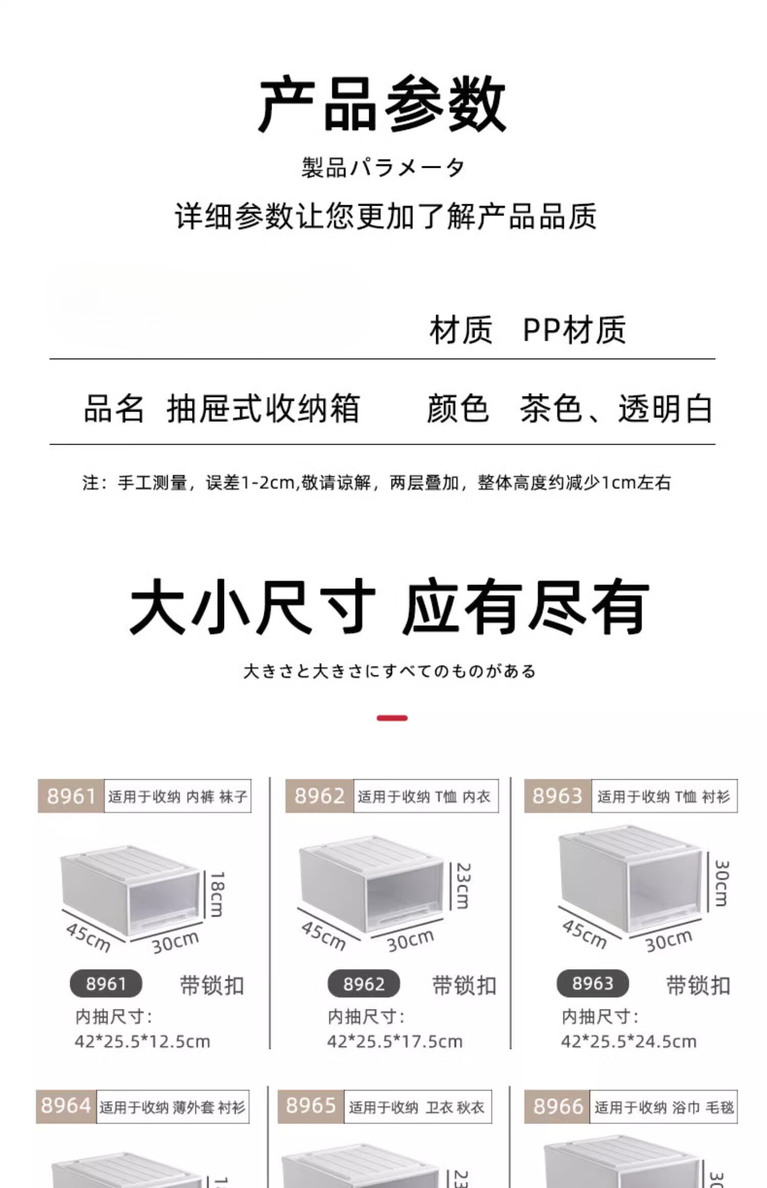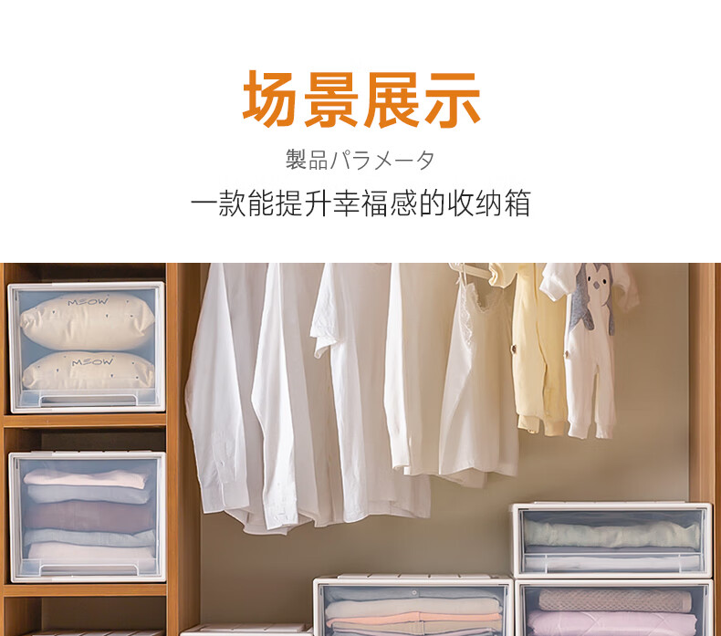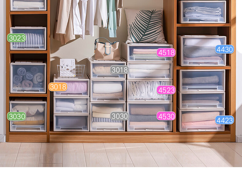 Wiayunuo Clothes Storage Box Drawer Storage Box Wardrobe Clothes Organizing Box Clothing Storage Box Household Plastic Depth 45* Width 30* Height 30CM Transparent One Pack
