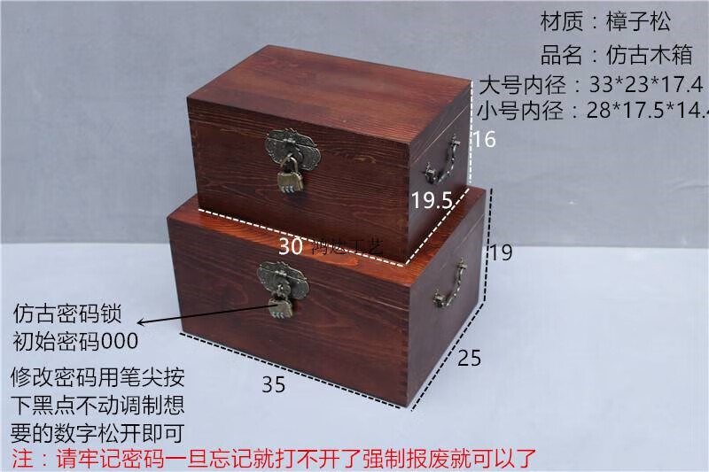 Yushe storage box with lock large antique wooden box with lock solid wood large storage box storage box glove box collection box 30*19.5*16 small