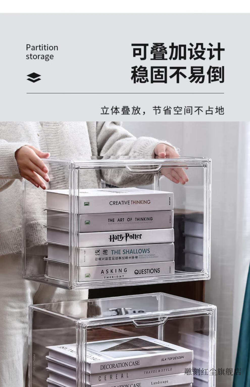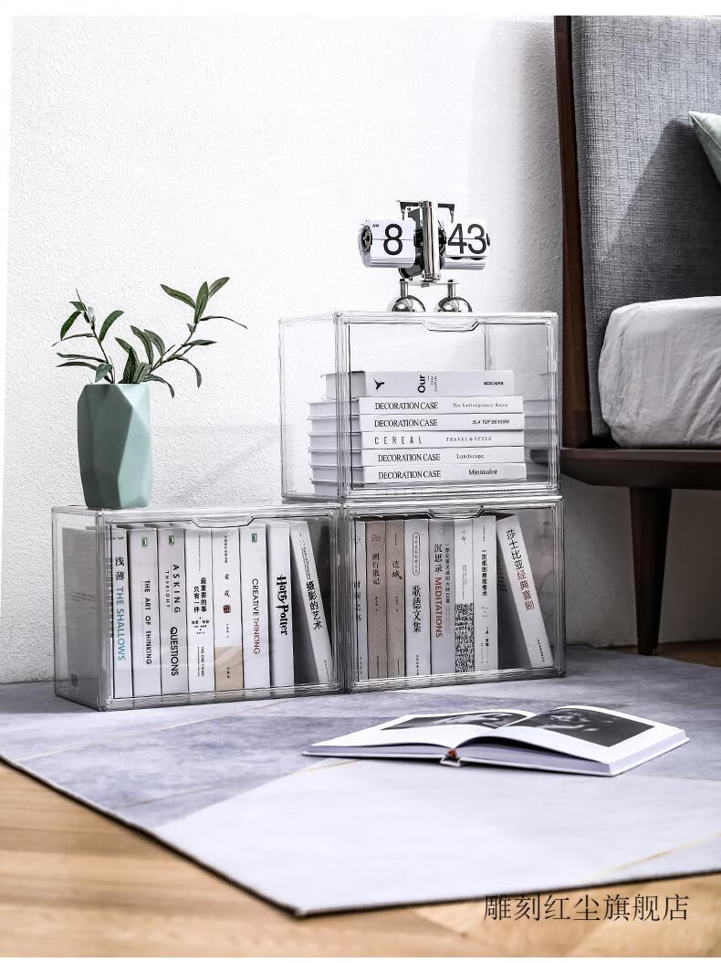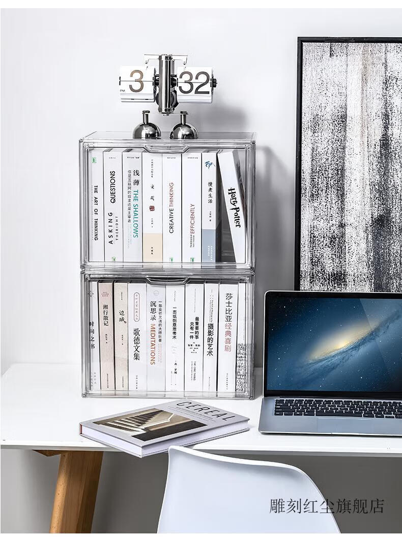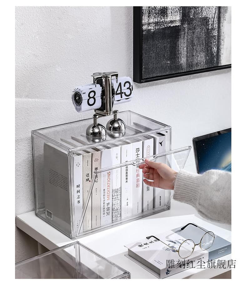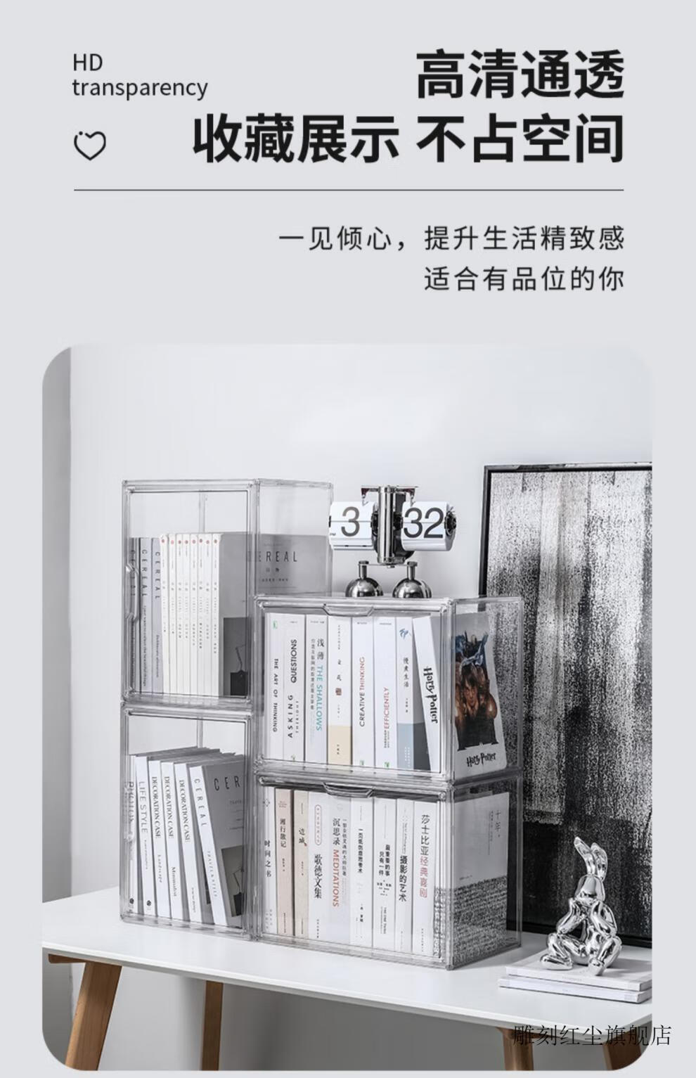 Huixiang book box desktop book box foldable book storage box transparent exquisite storage student book storage box transparent