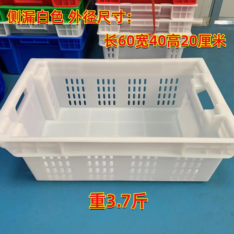 Pork cold storage special box commercial meat basket plastic basket rectangular cold storage freezing frame factory hotel transfer box hollow (length 60 width 40 height 20 cm) white