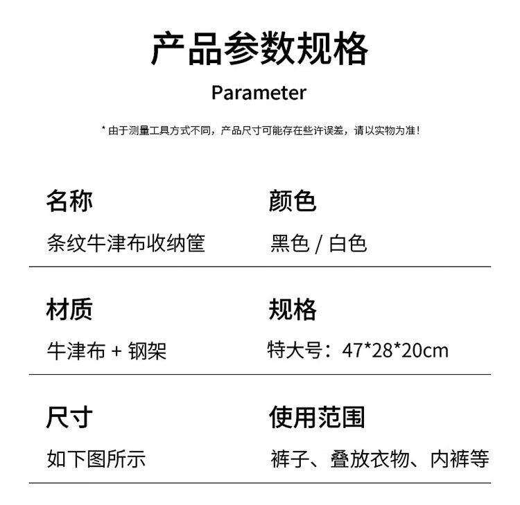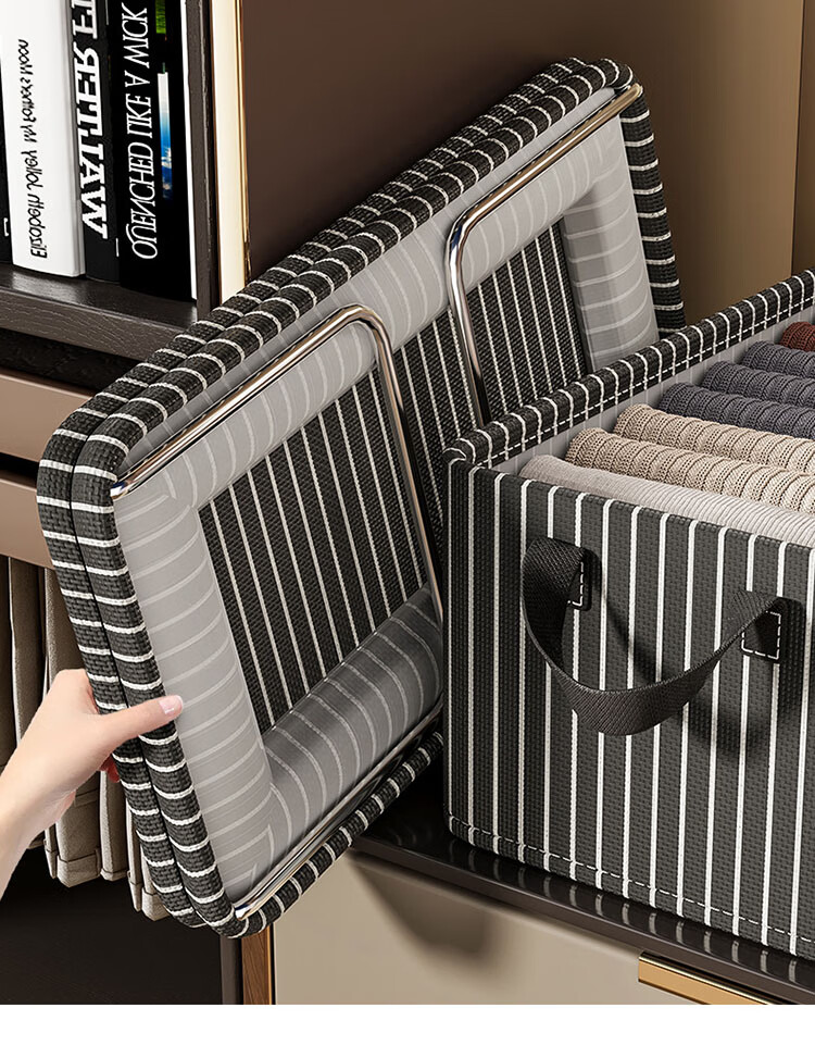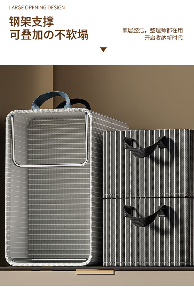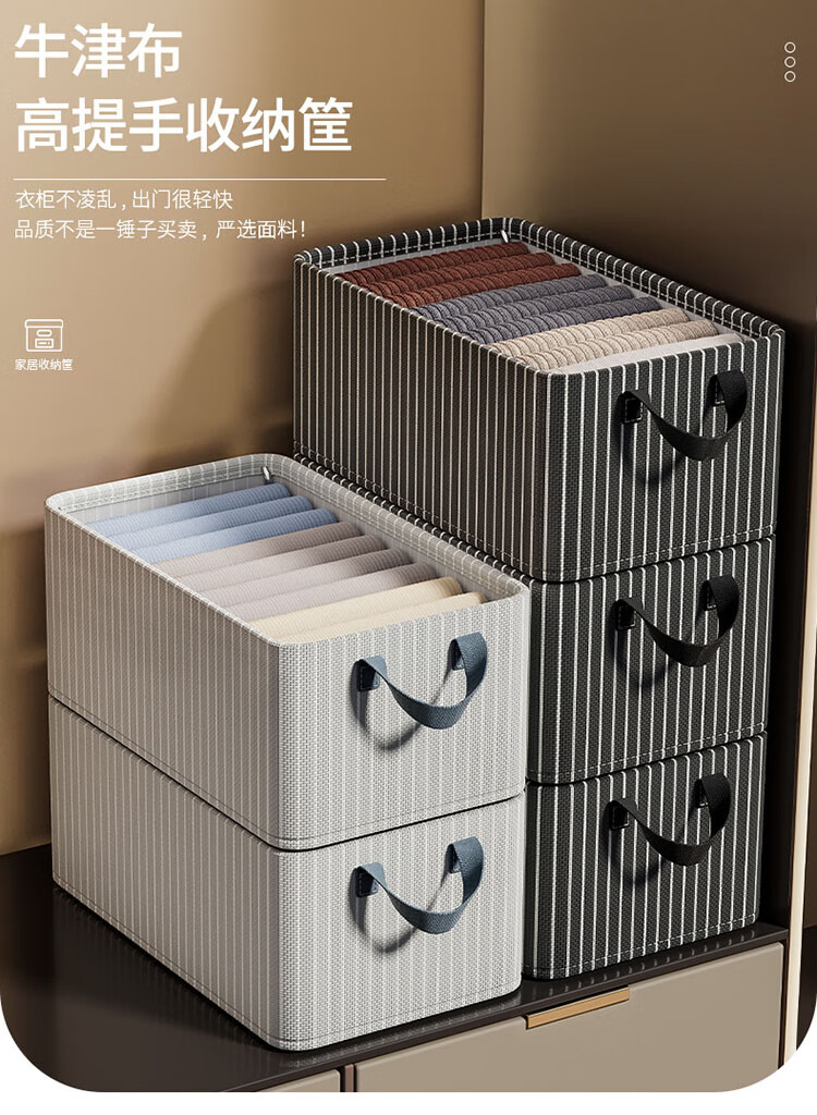 Housekeeper Oxford cloth striped storage basket storage box home wardrobe organization artifact dormitory storage box clothes basket large capacity rice stripe steel frame 2 pack