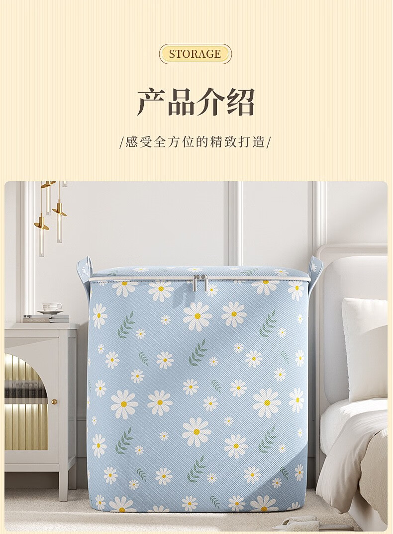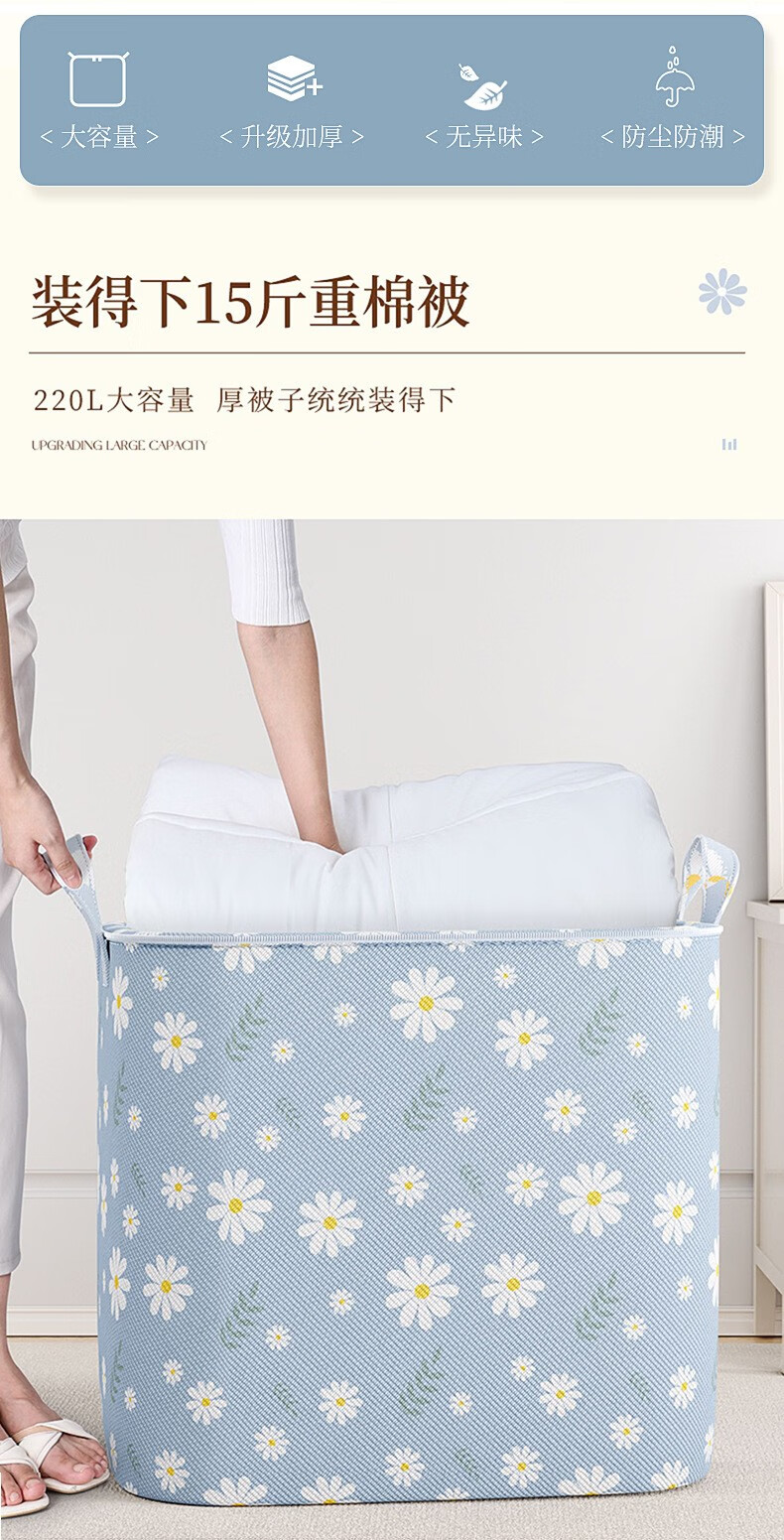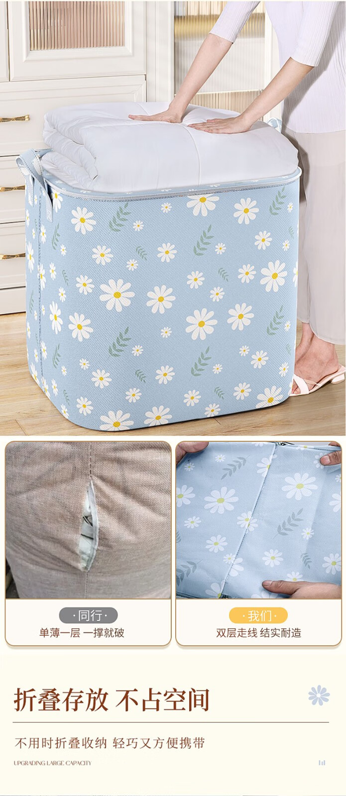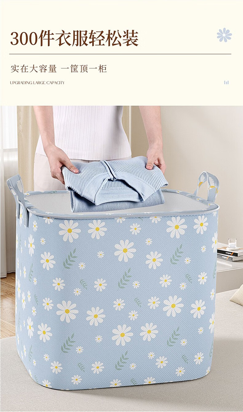 Duchu Tongzi storage box for clothes and quilts large capacity fabric box home bedroom wardrobe storage box foldable thick zipper blue daisy extra large 200L=70x60x50cm