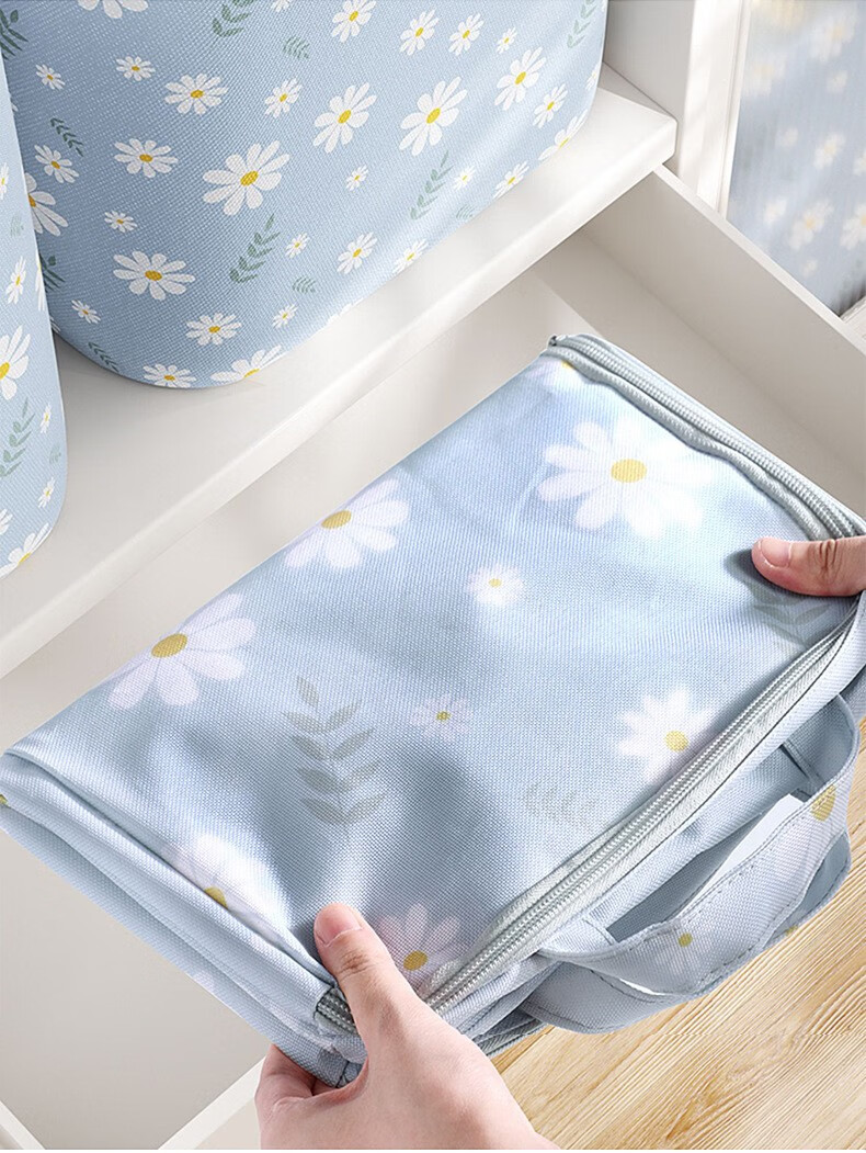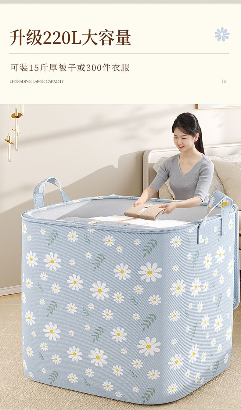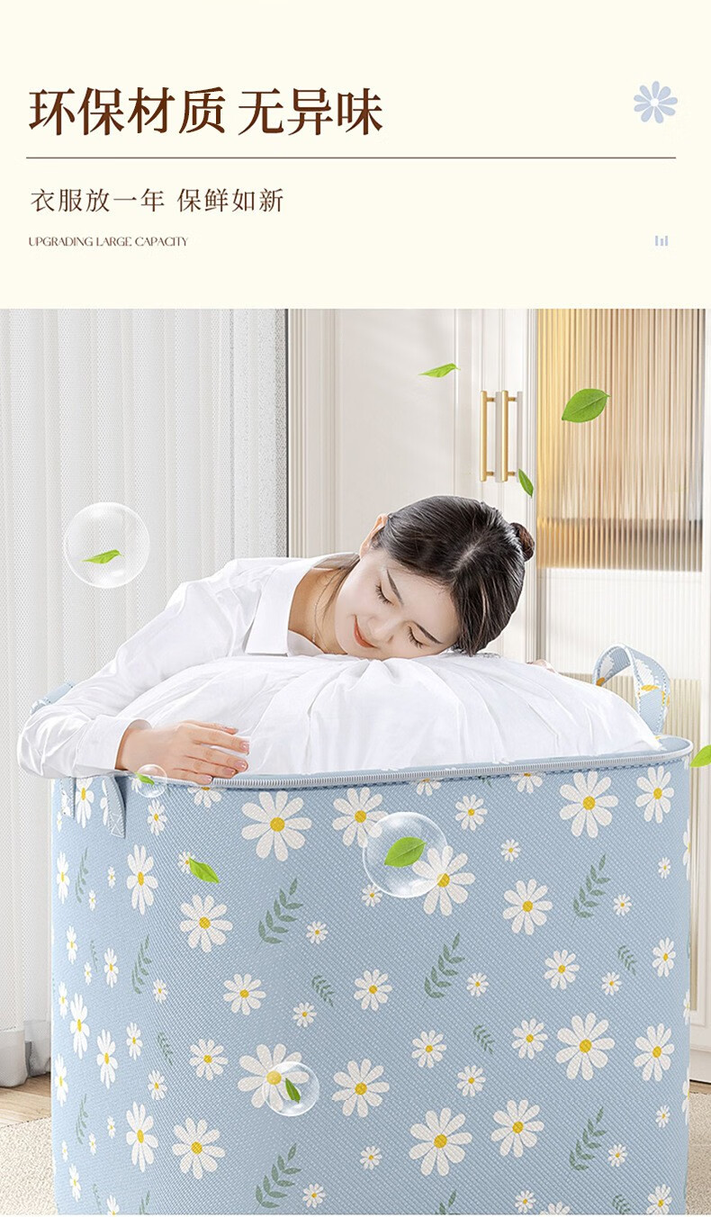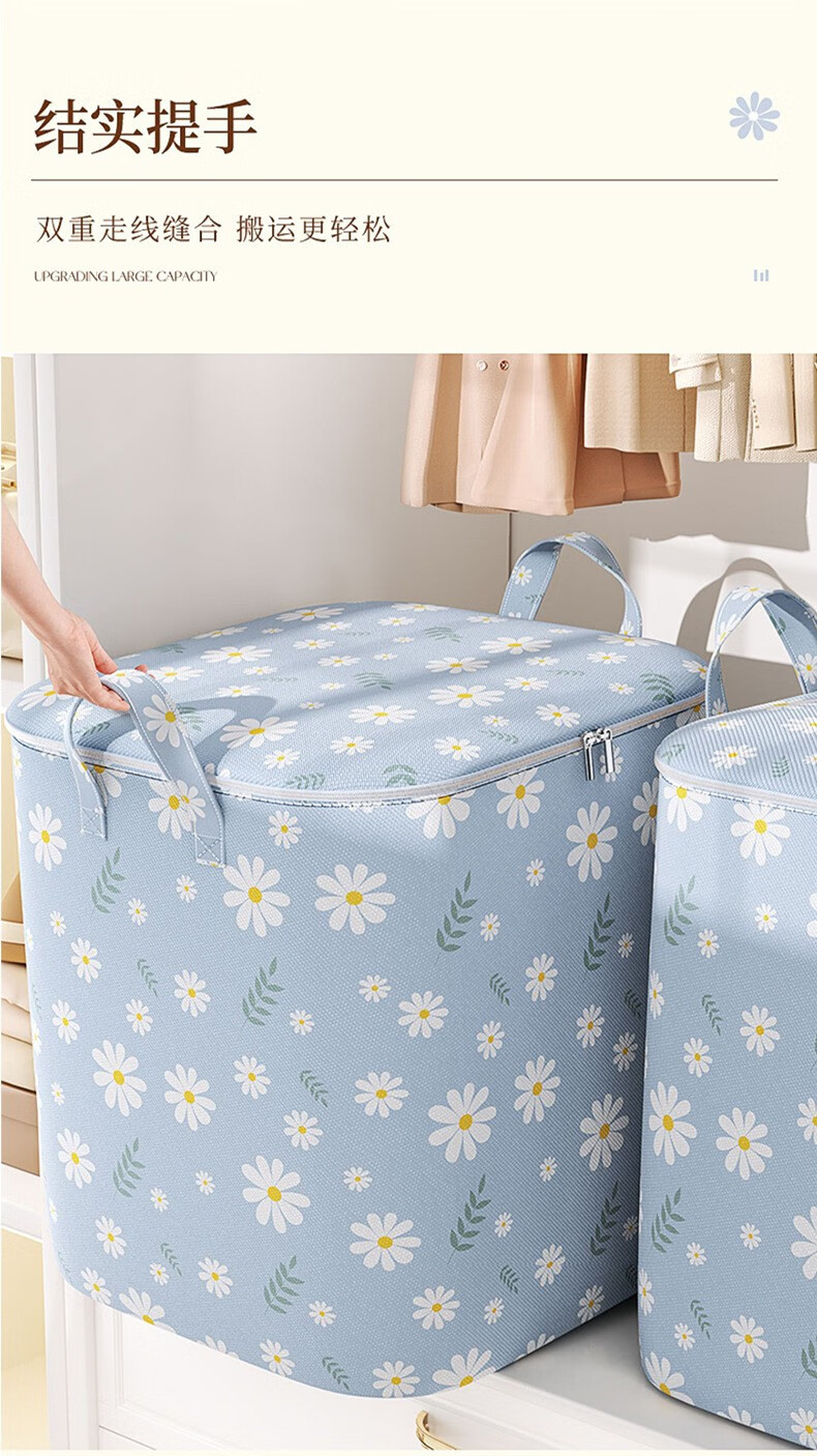 Duchu Tongzi storage box for clothes and quilts large capacity fabric box home bedroom wardrobe storage box foldable thick zipper blue daisy extra large 200L=70x60x50cm