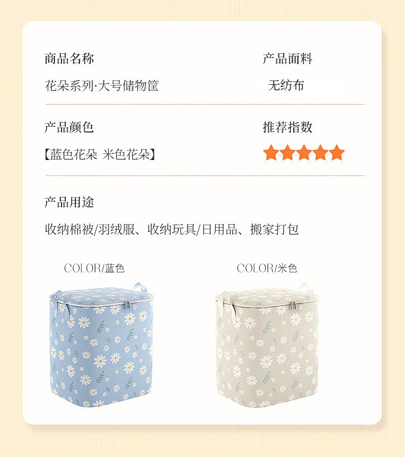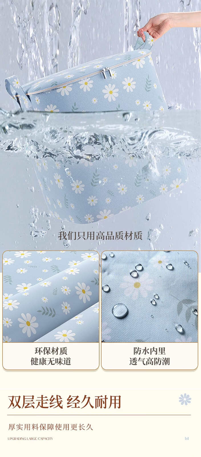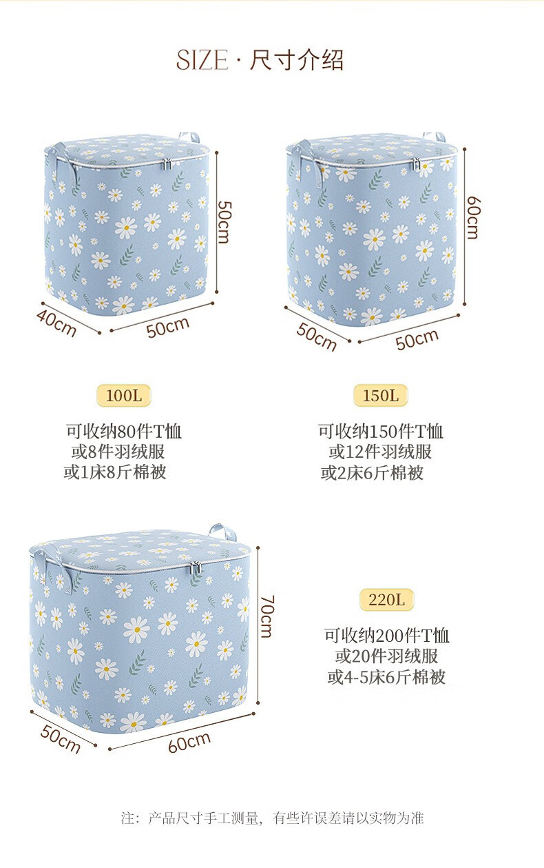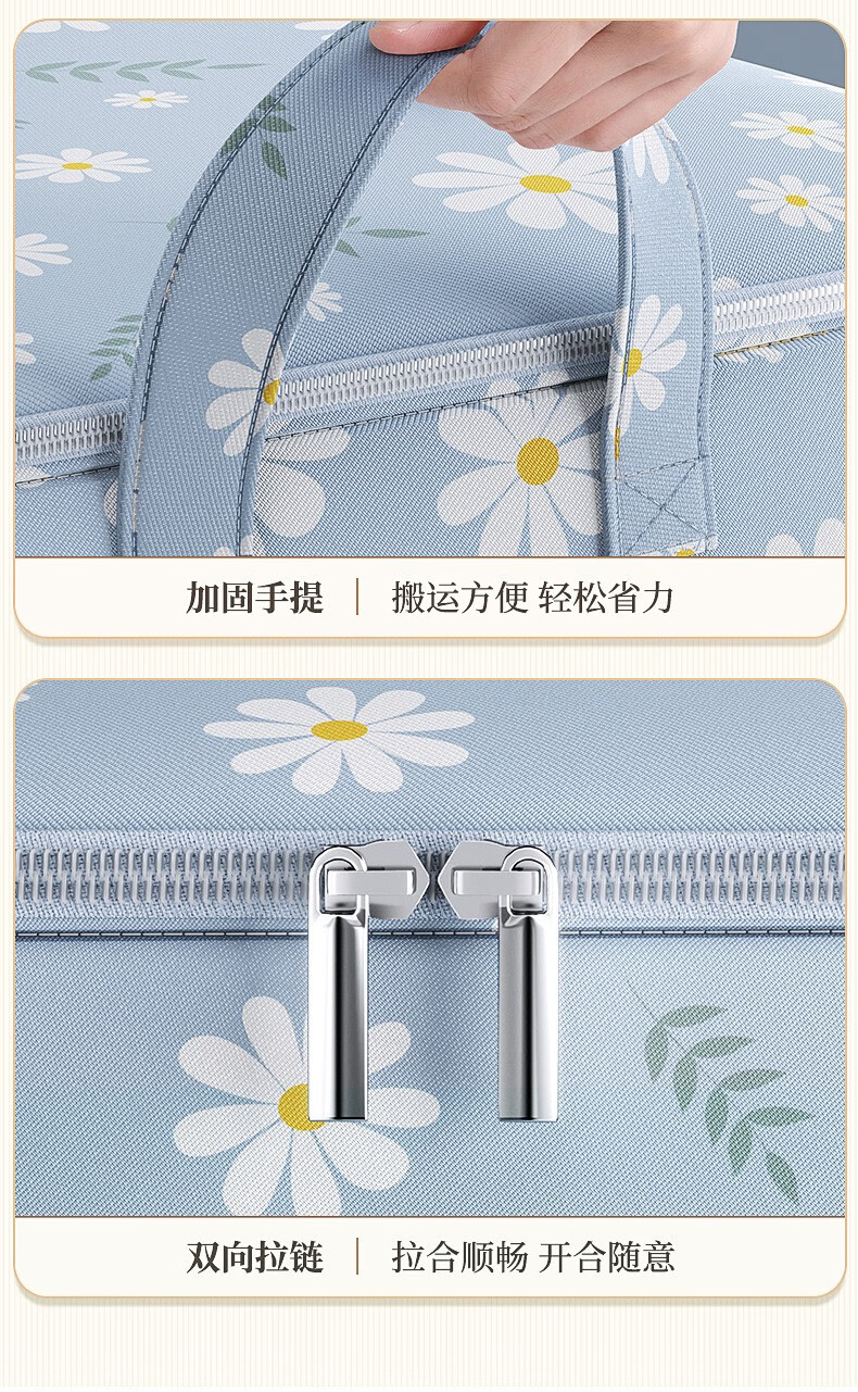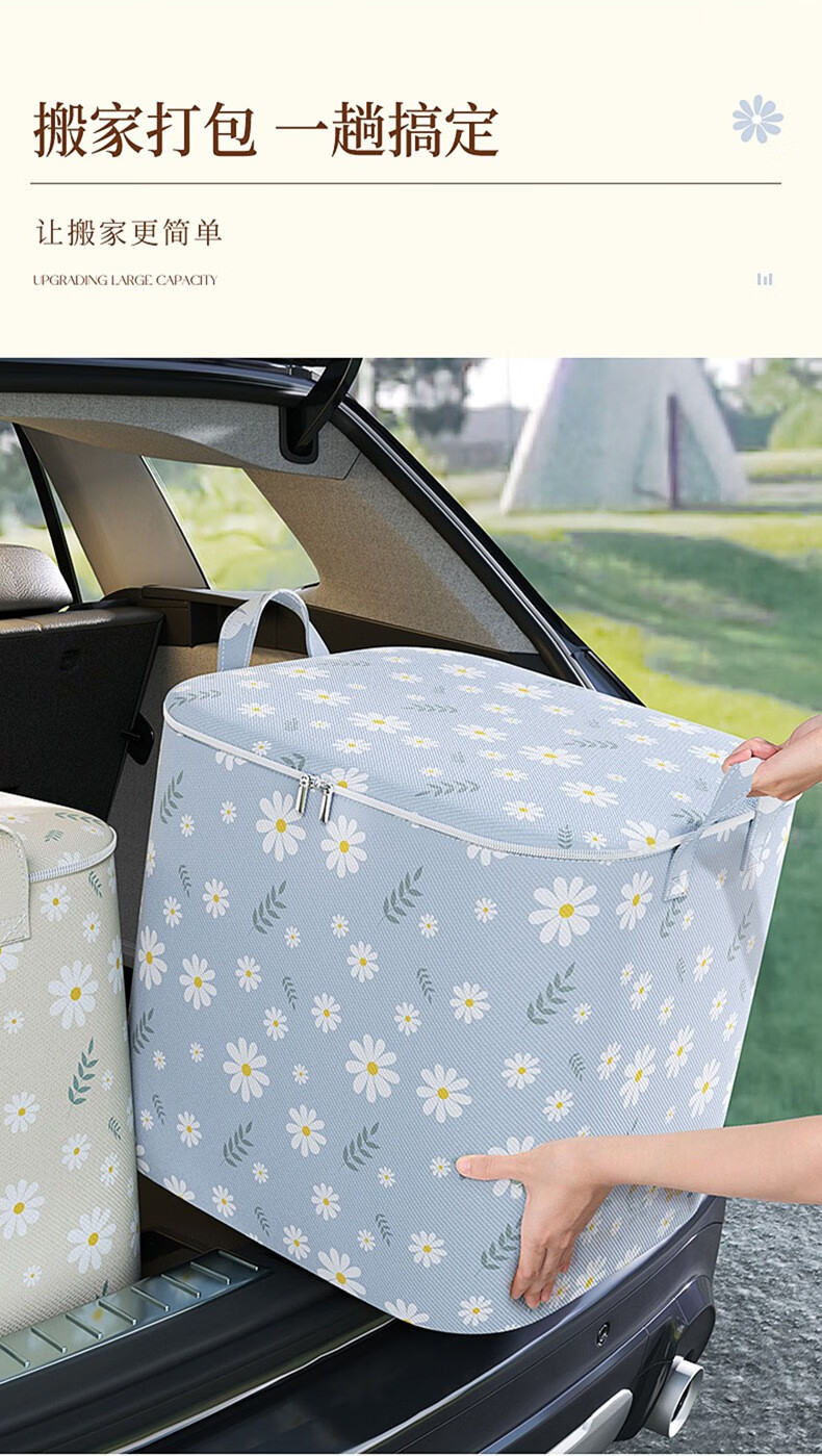 Duchu Tongzi storage box for clothes and quilts large capacity fabric box home bedroom wardrobe storage box foldable thick zipper blue daisy extra large 200L=70x60x50cm