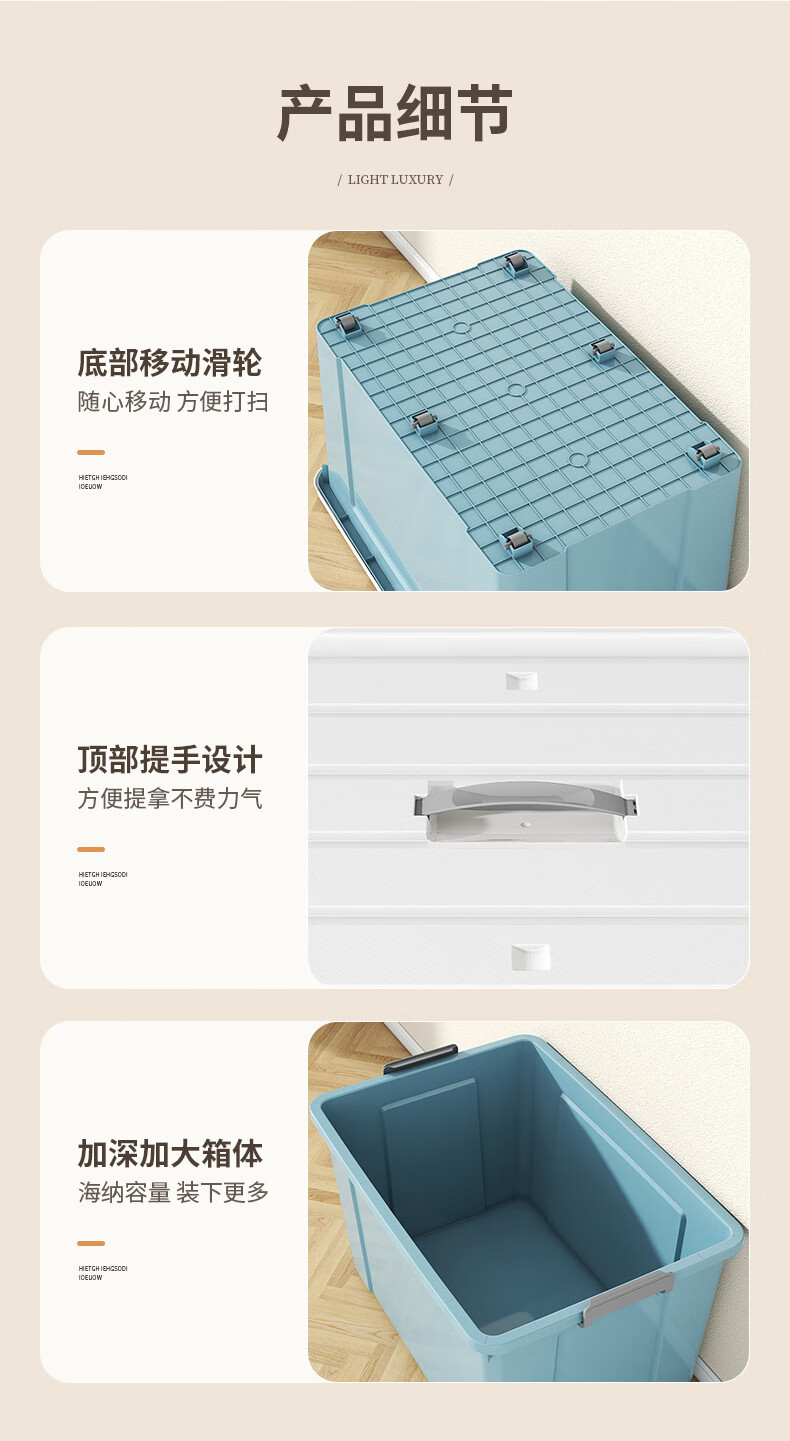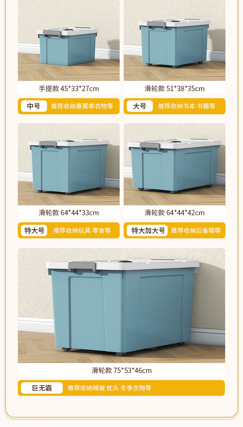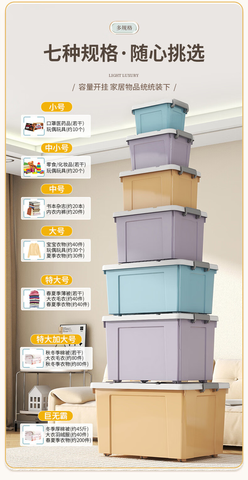 Chenzhi Shangpin thickened storage box extra large clothing storage box clothing toy storage home student dormitory plastic storage box purple BW6623#44*33*27cm without wheels