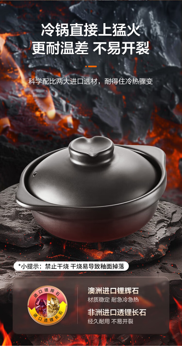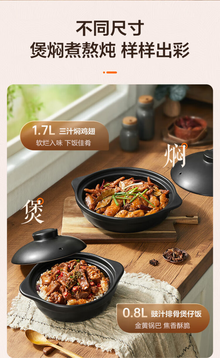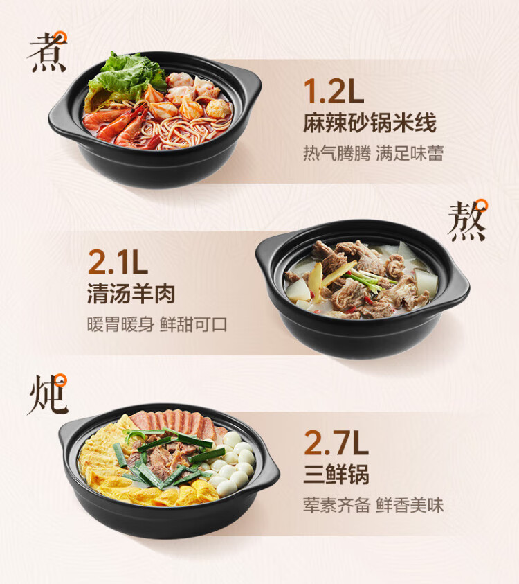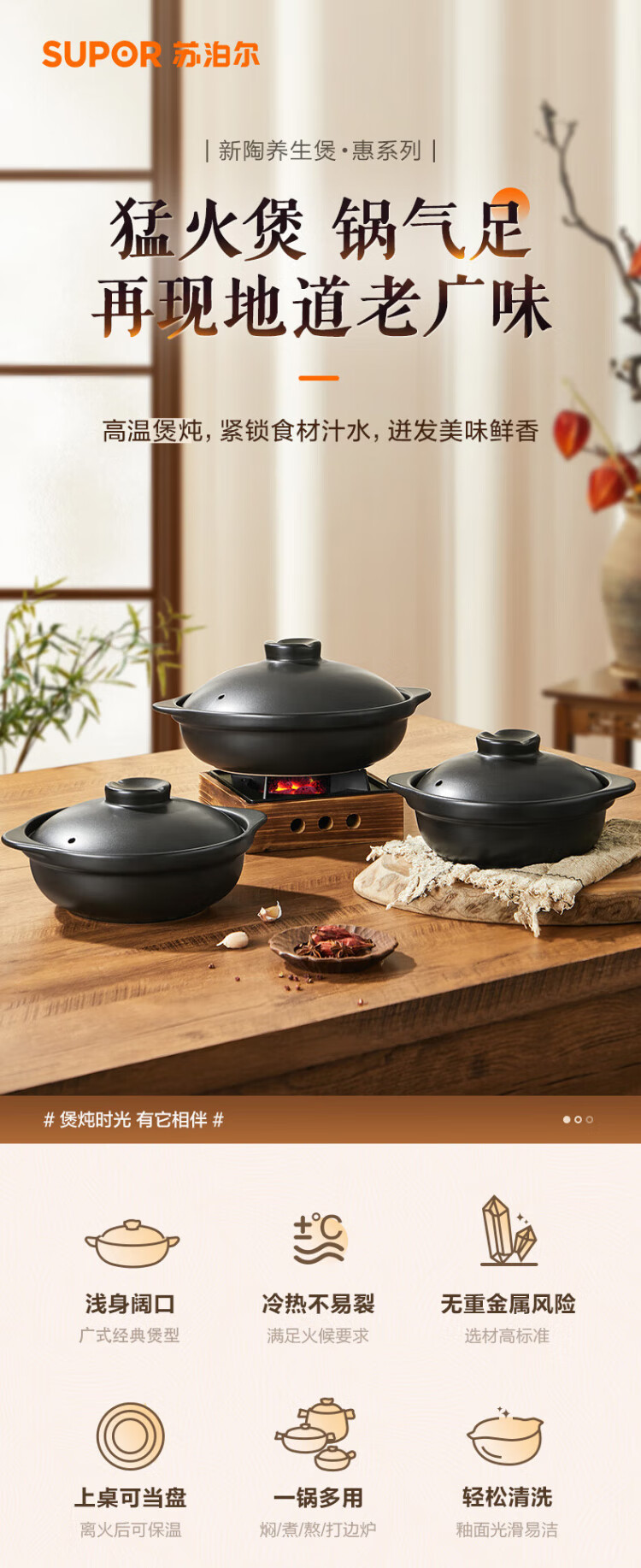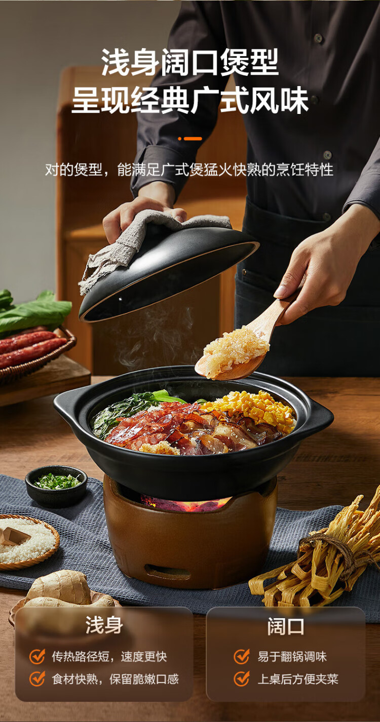 SUPOR ceramic clay pot 1.7L Cantonese style vegetable clay pot, vegetable clay pot, vegetable clay pot, special for open fire, same style as Sister Lian