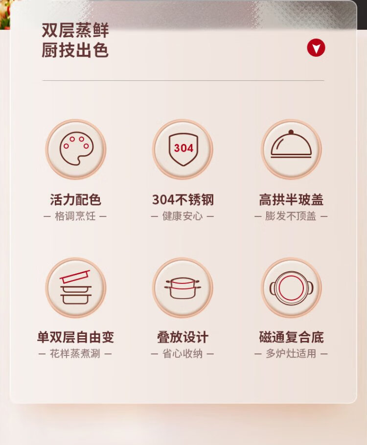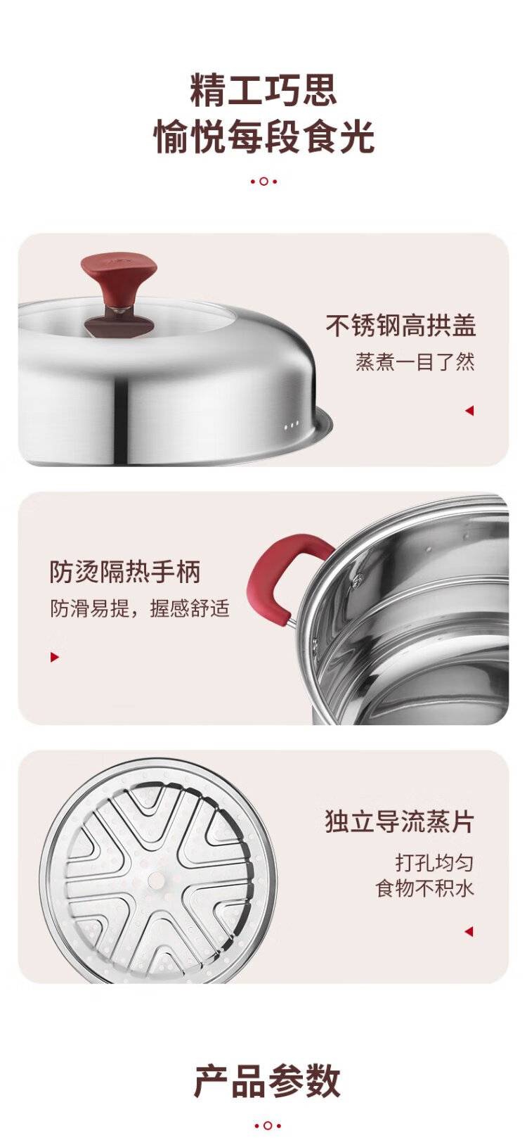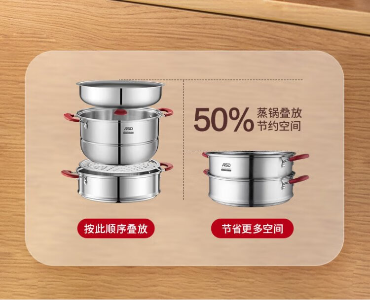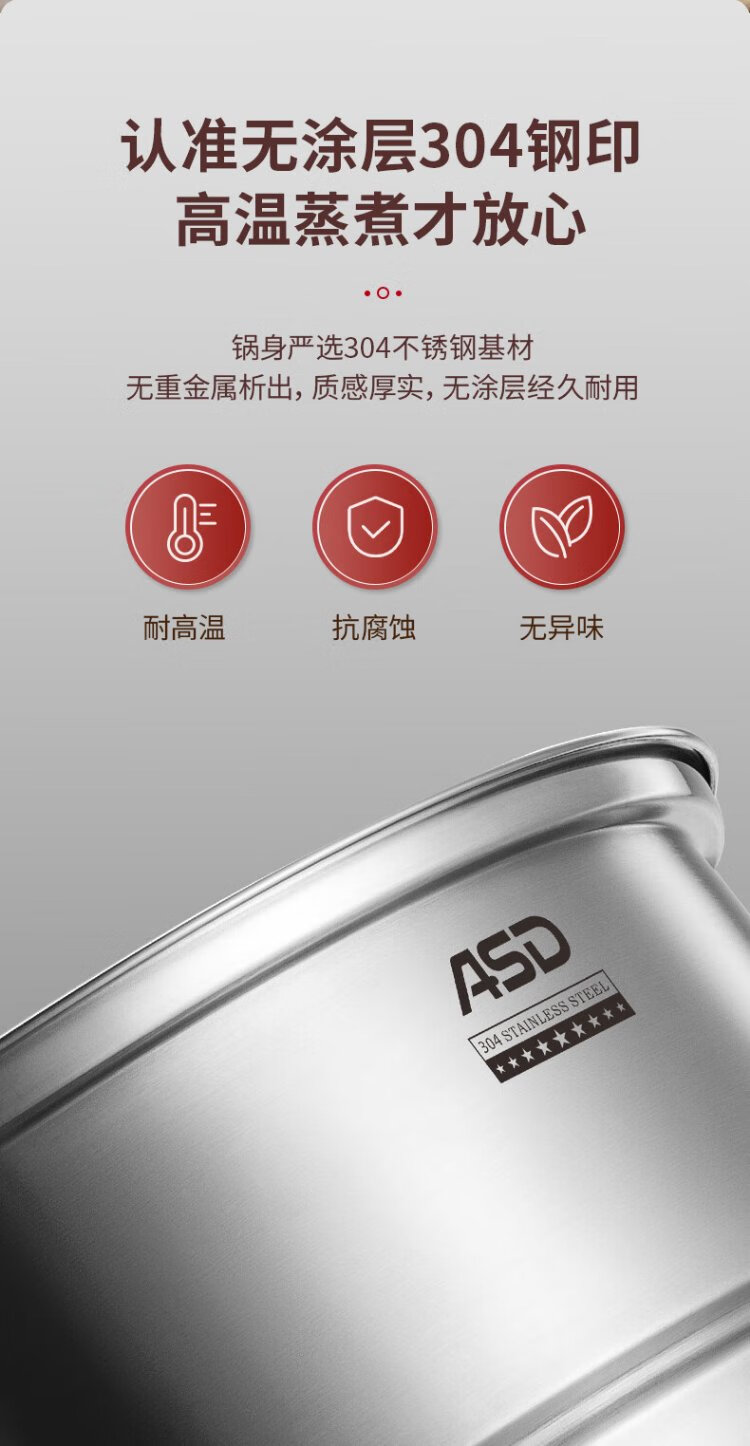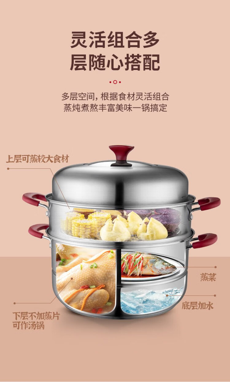 ASD steamer 304 stainless steel double-layer steamer household high arch lid soup pot 32CM steamer induction cooker gas universal C1