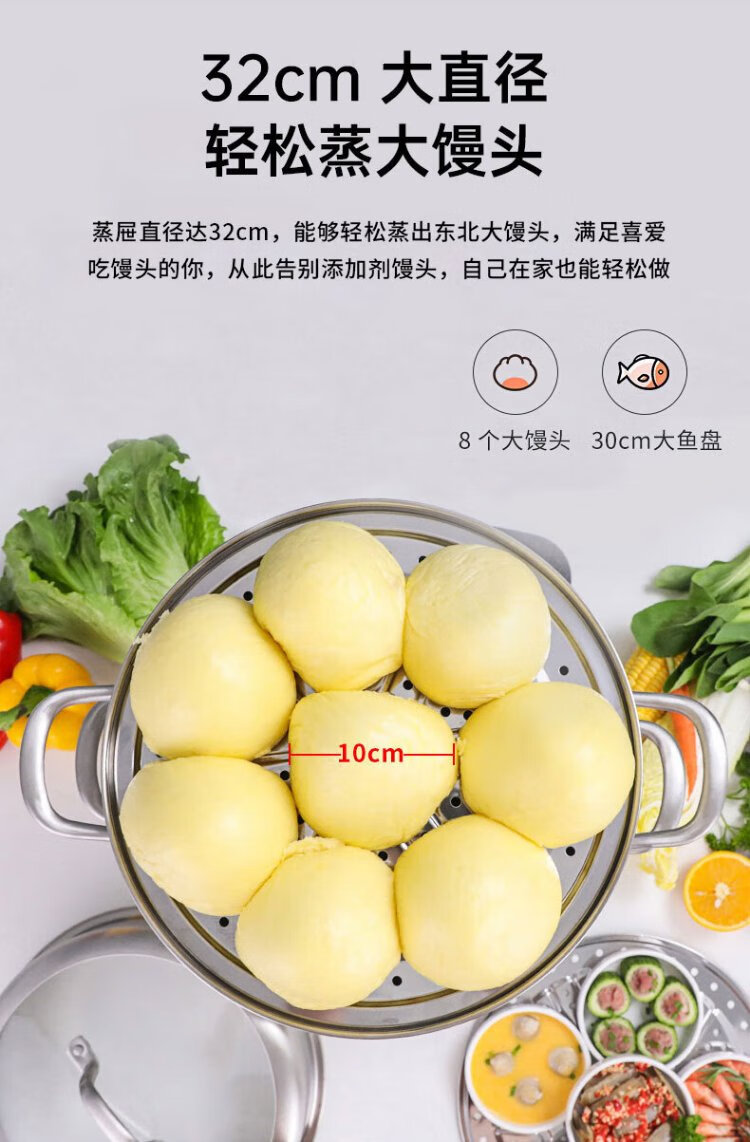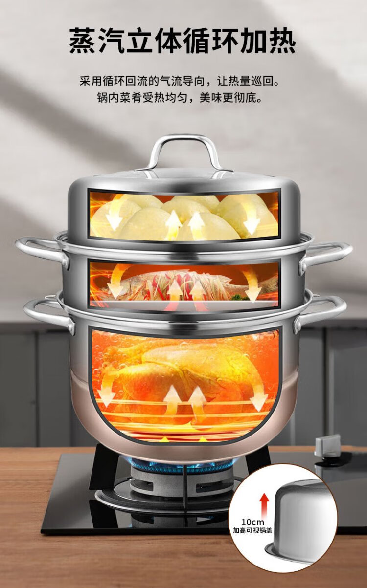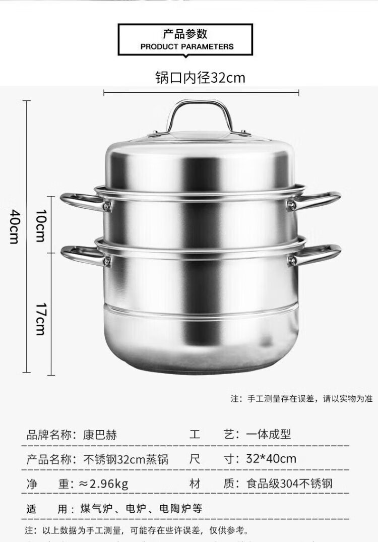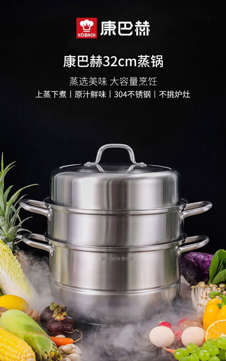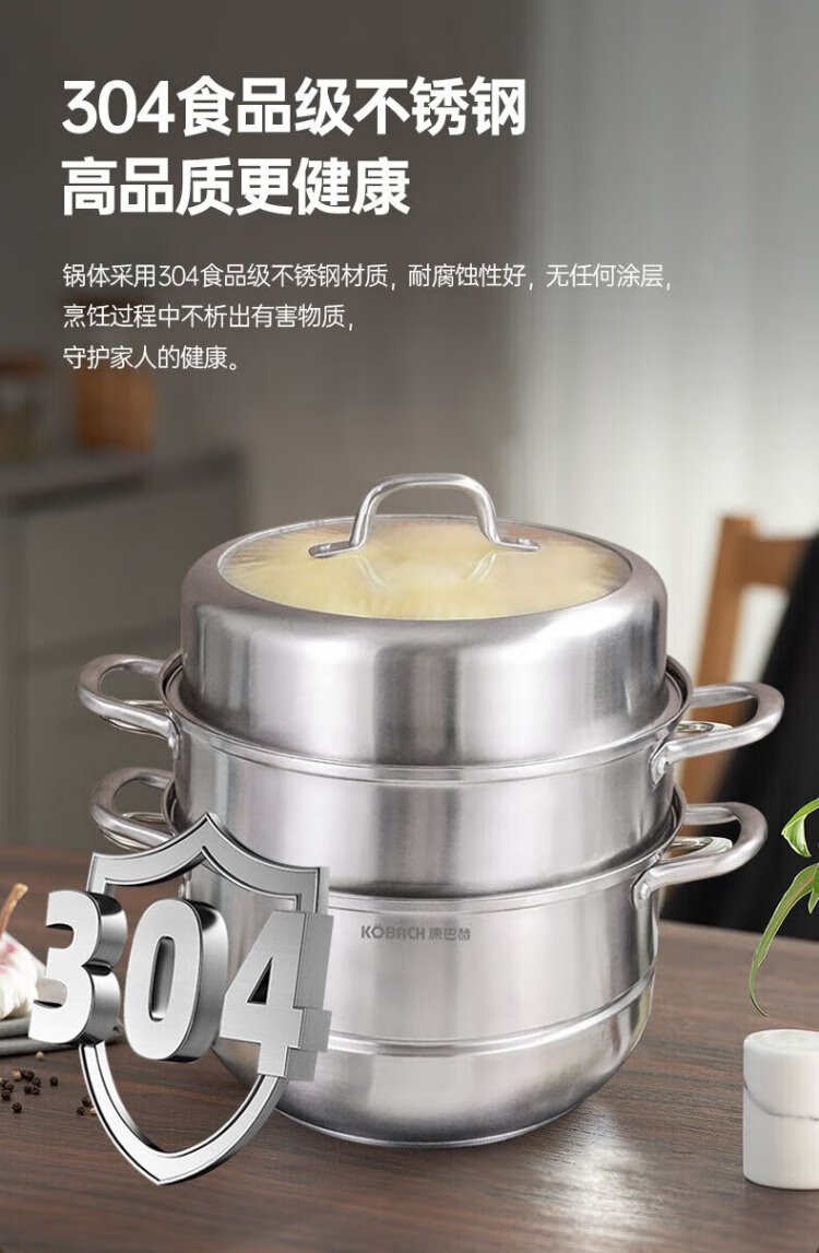 Kangbach 304 stainless steel three-layer steamer steamer with double bottom large soup steamer multi-functional pot 32cm universal for gas stoves