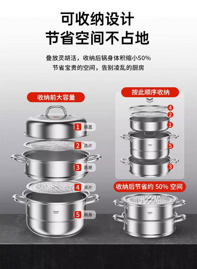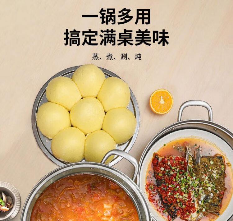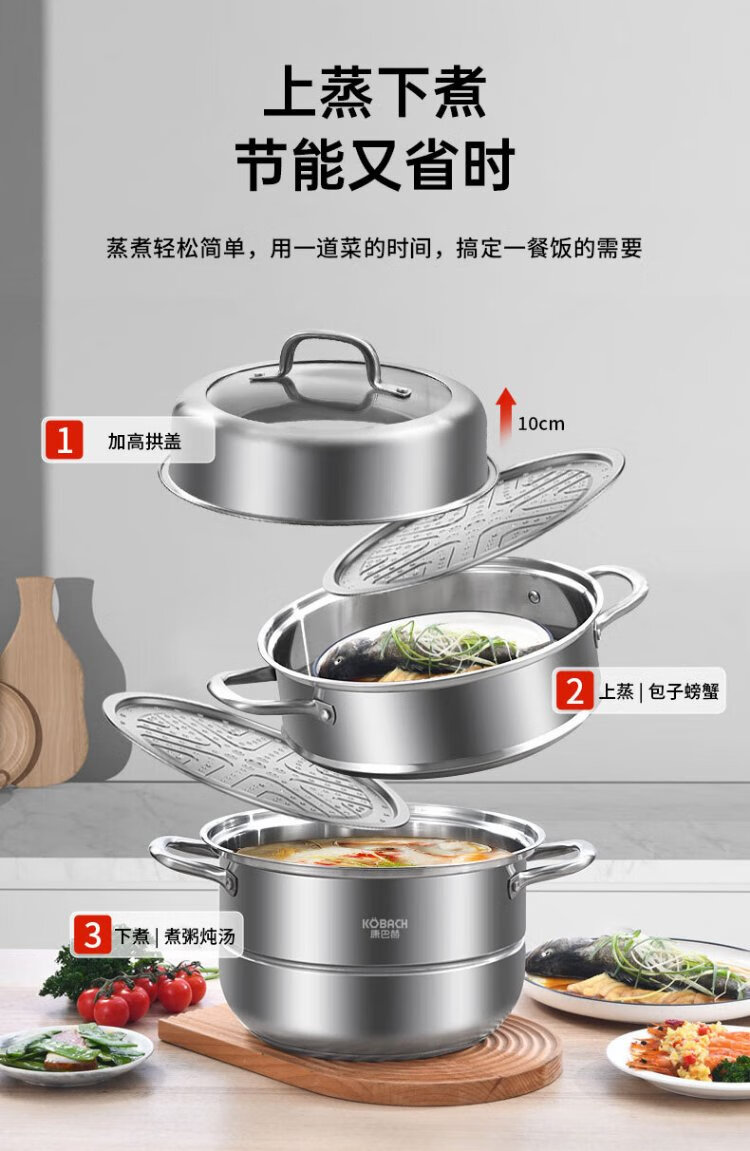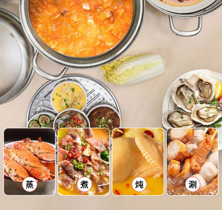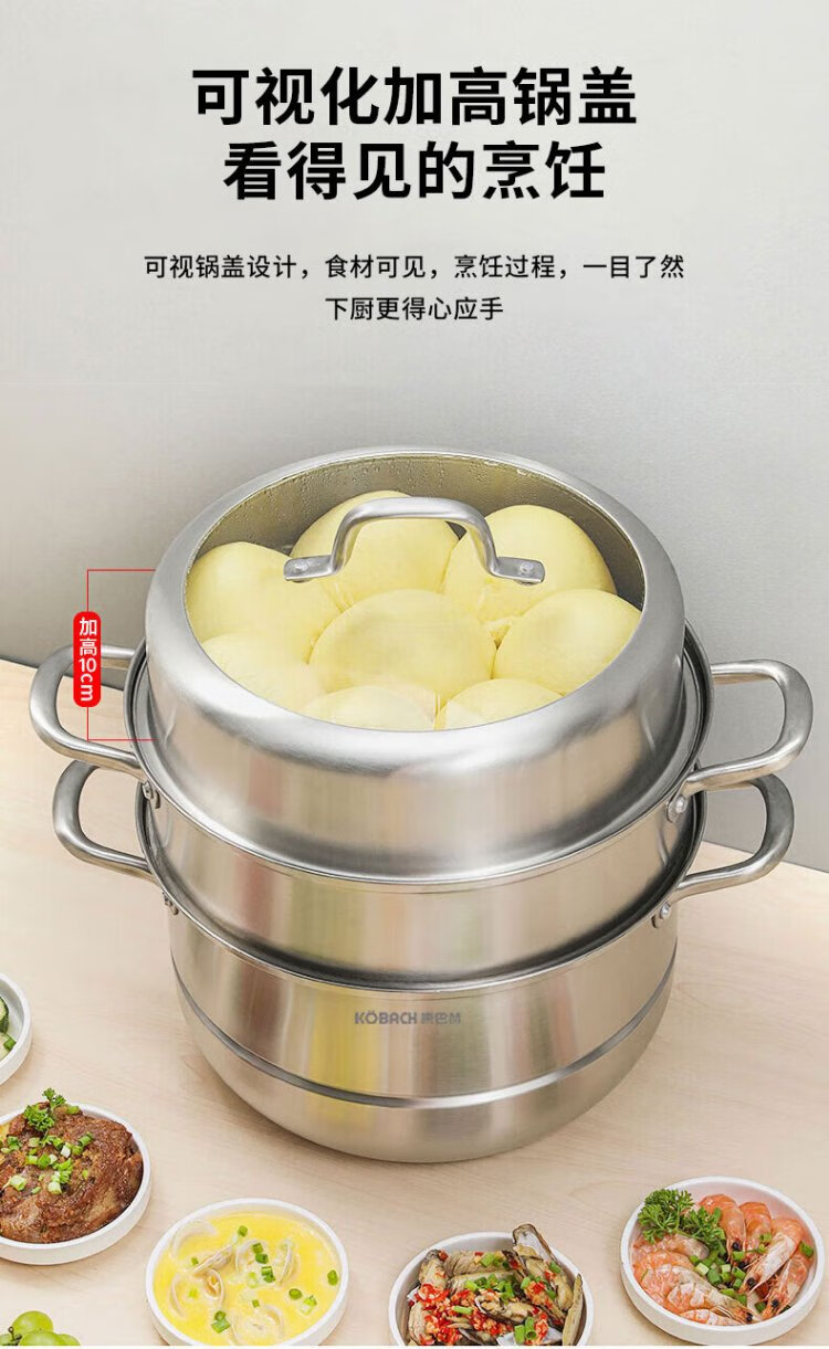 Kangbach 304 stainless steel three-layer steamer steamer with double bottom large soup steamer multi-functional pot 32cm universal for gas stoves