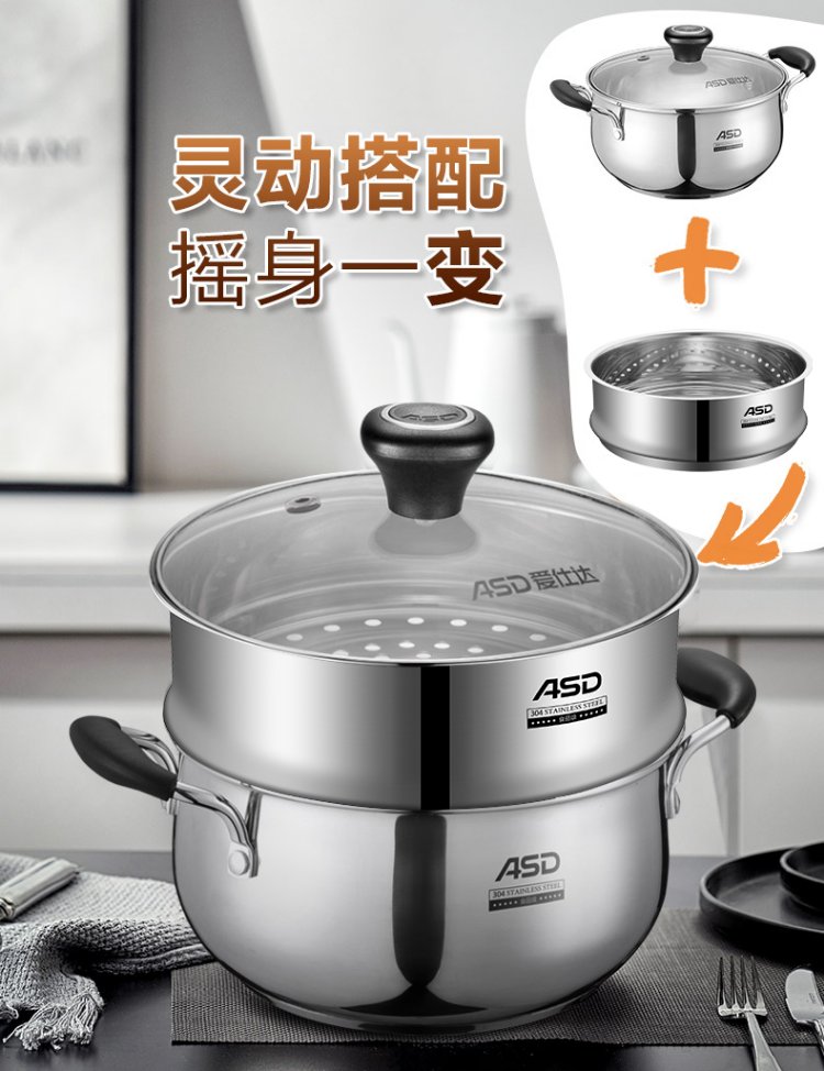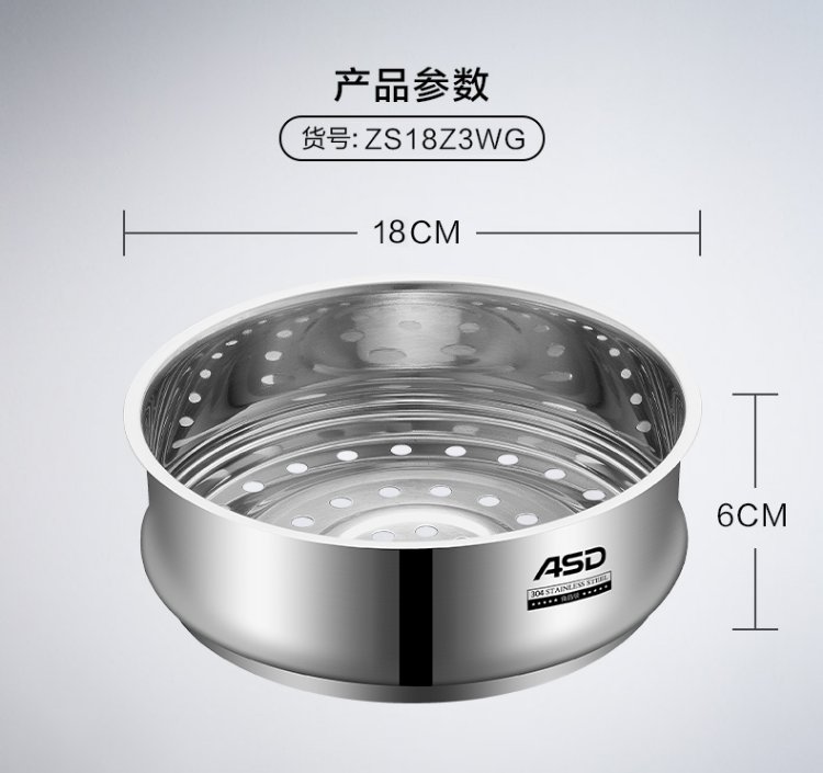ASD steamer steamer steamer 304 stainless steel 18CM food supplement pot universal steamer single layer steamer ZS18Z3WG