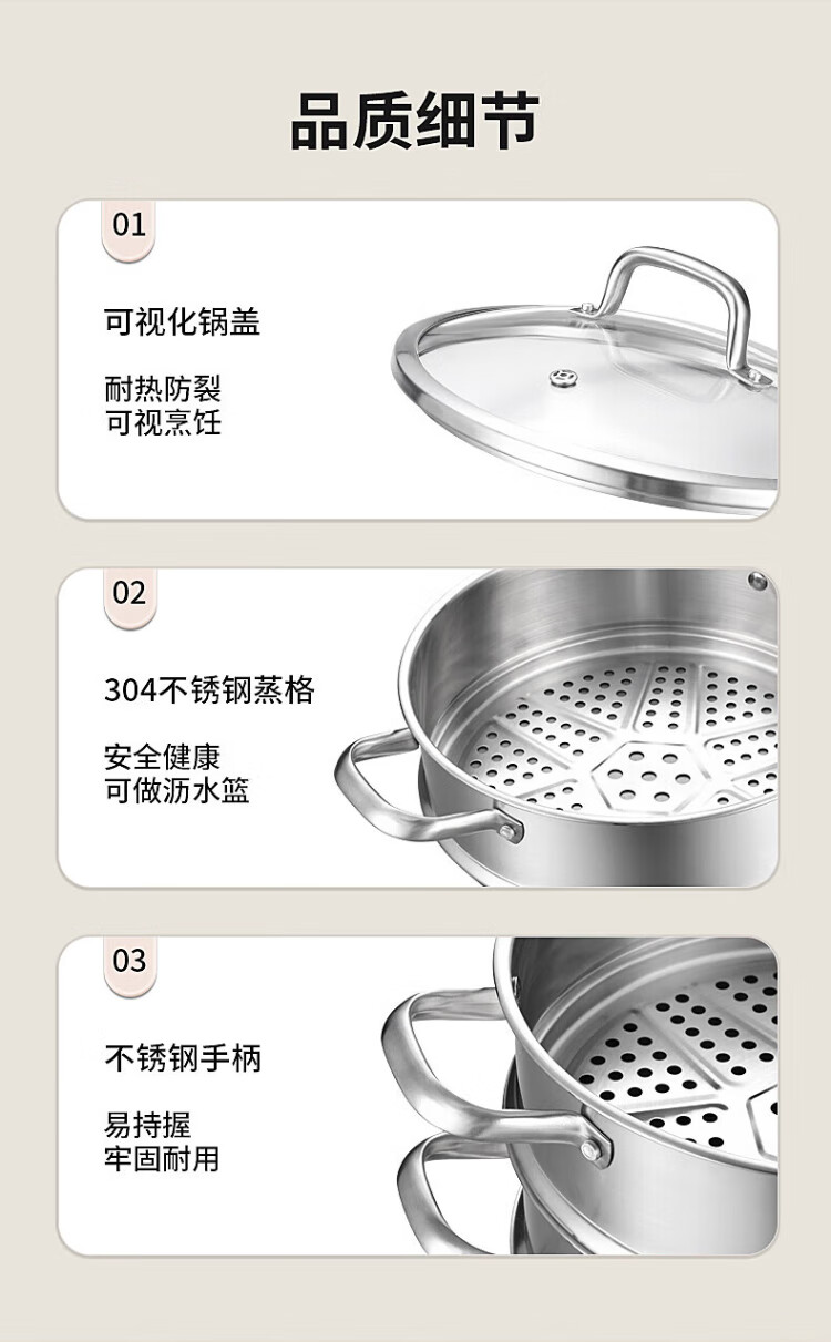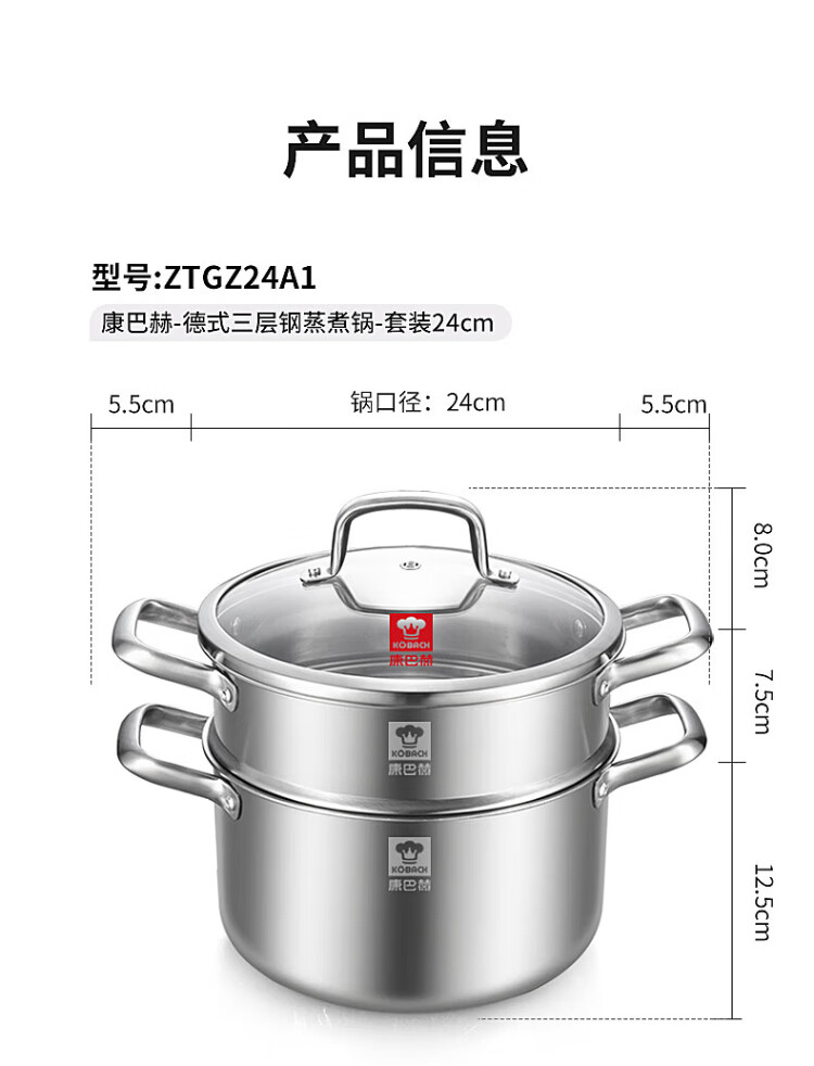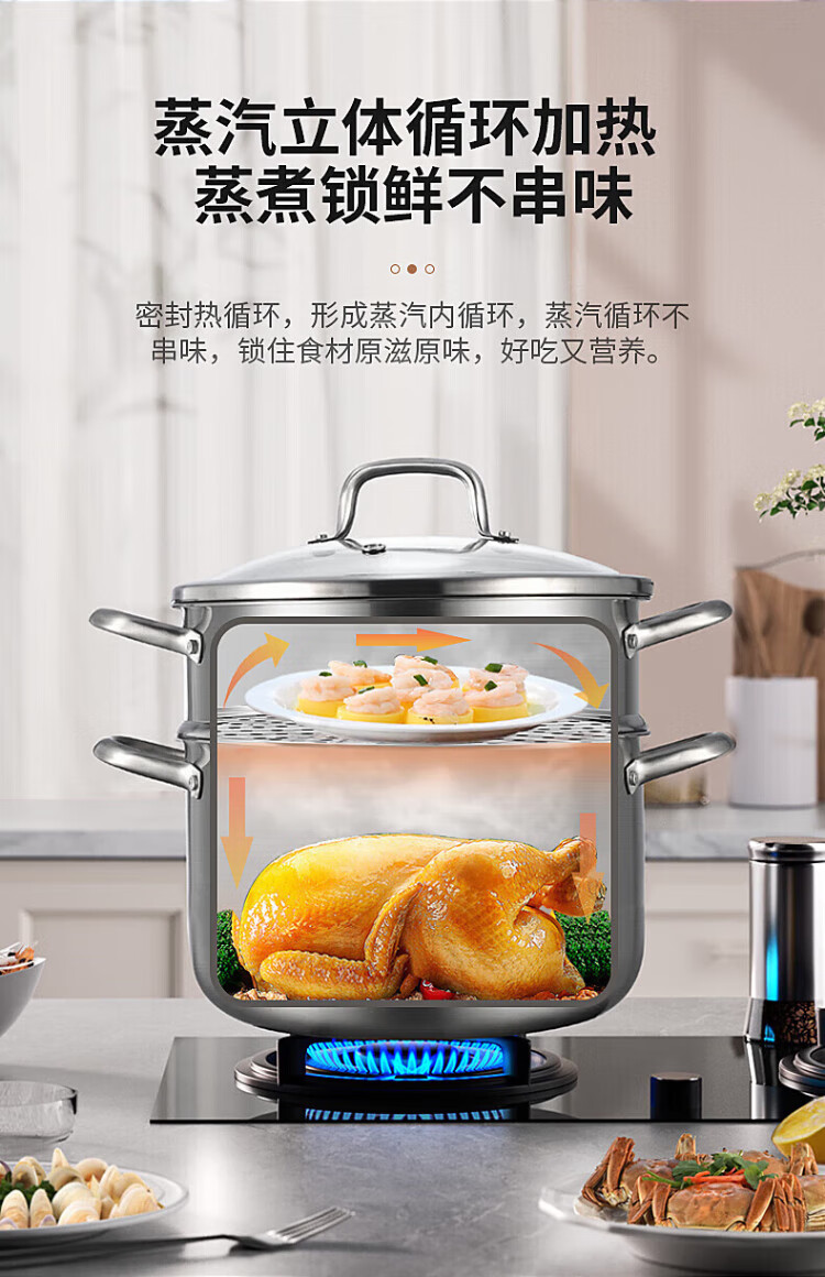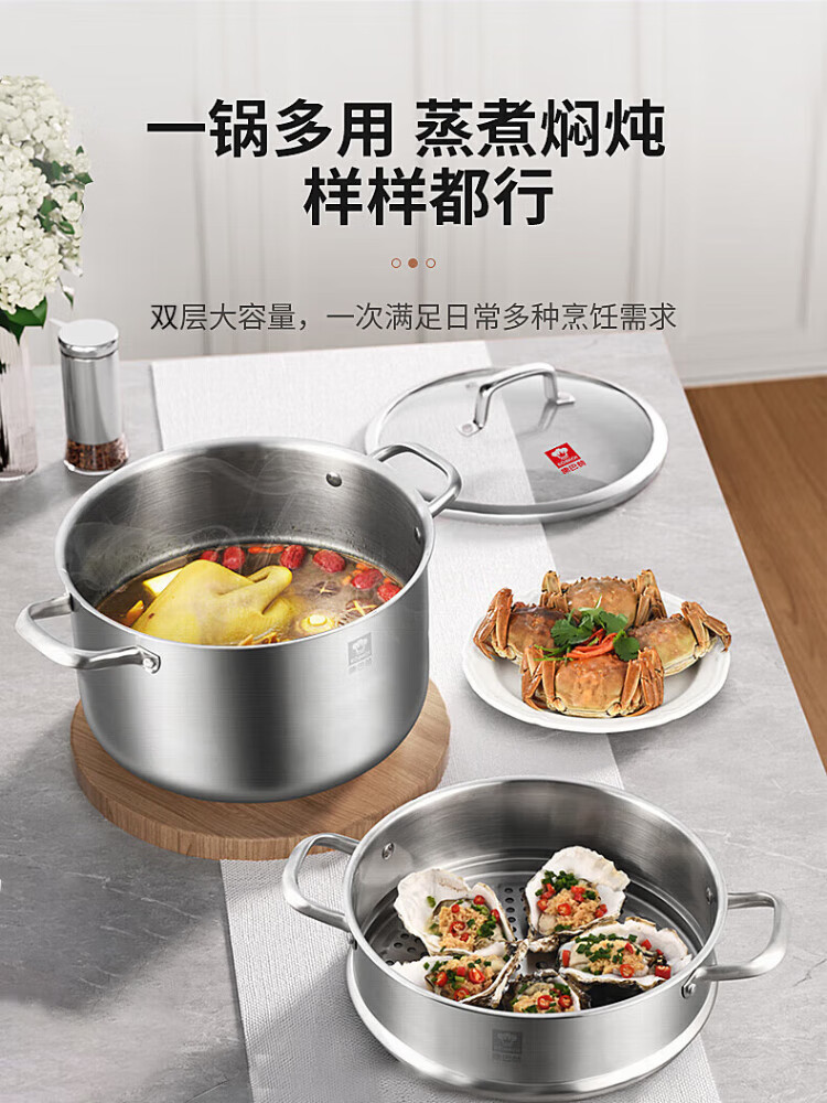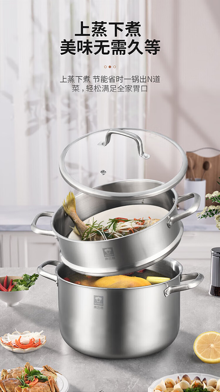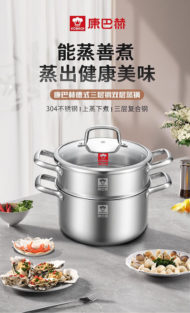 Kornbach steamer 304 stainless steel large capacity soup pot multifunctional steaming pot 24cm multi-bottom gas induction cooker universal