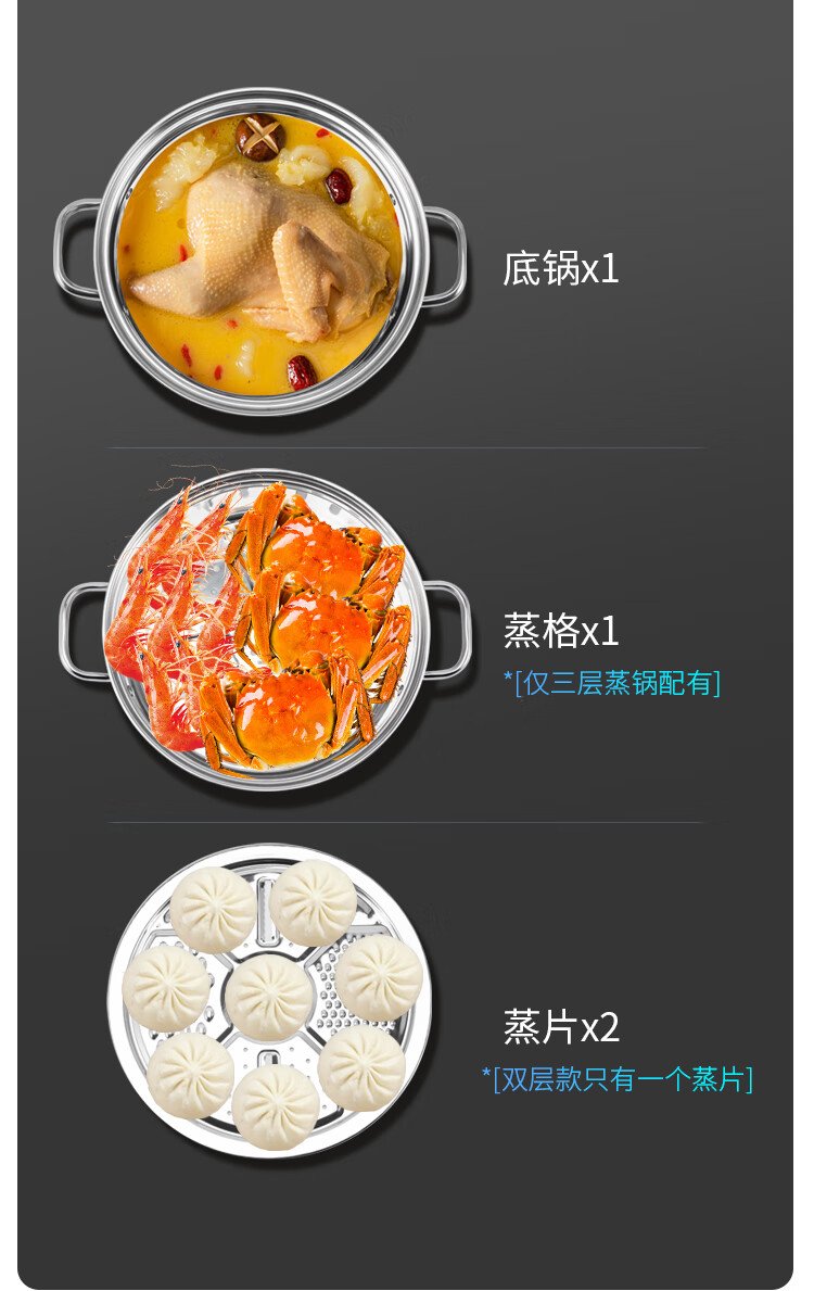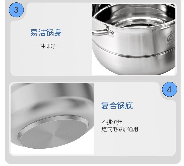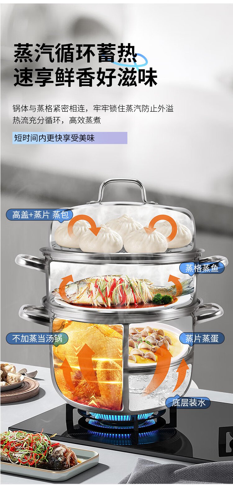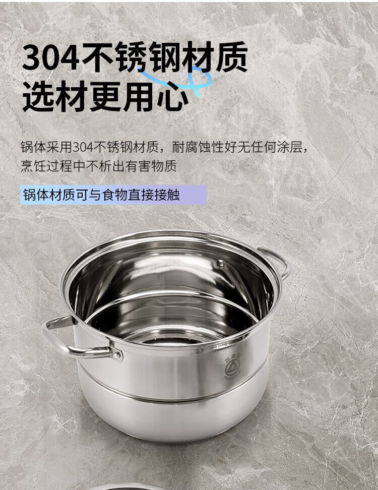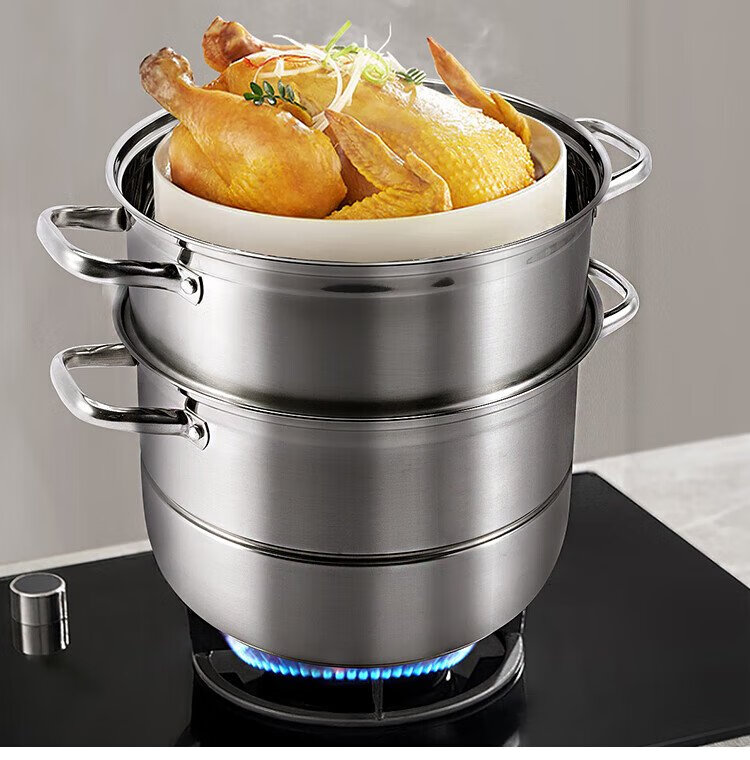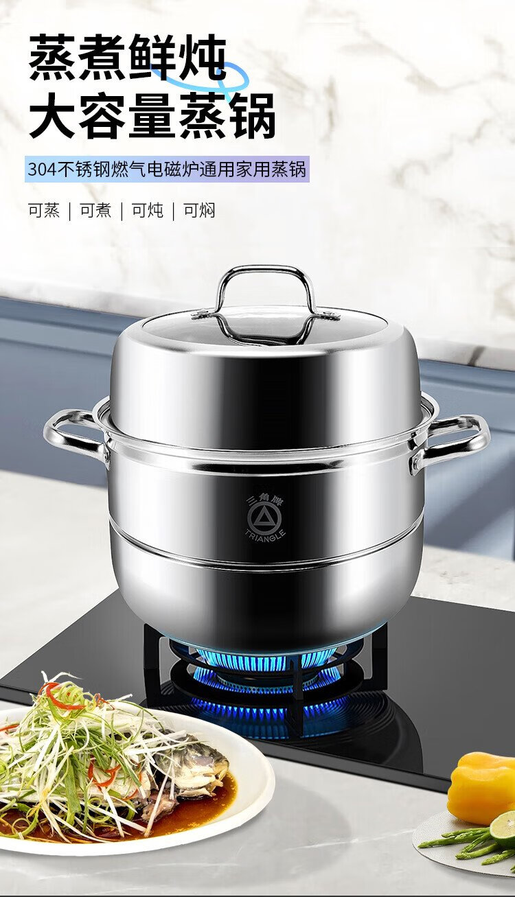 TRIANGLE steamer 304 stainless steel three-layer household 30cm soup pot steamed buns steamed buns multi-bottom gas induction cooker universal