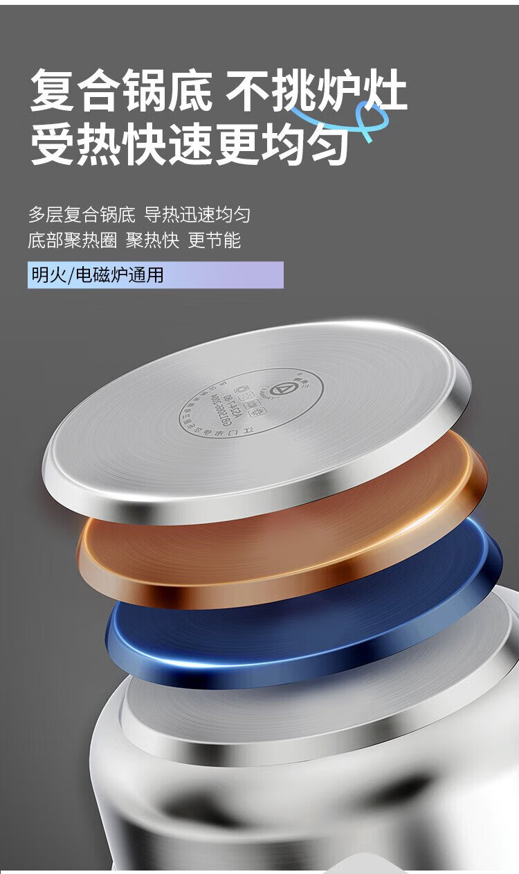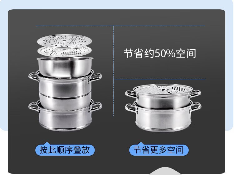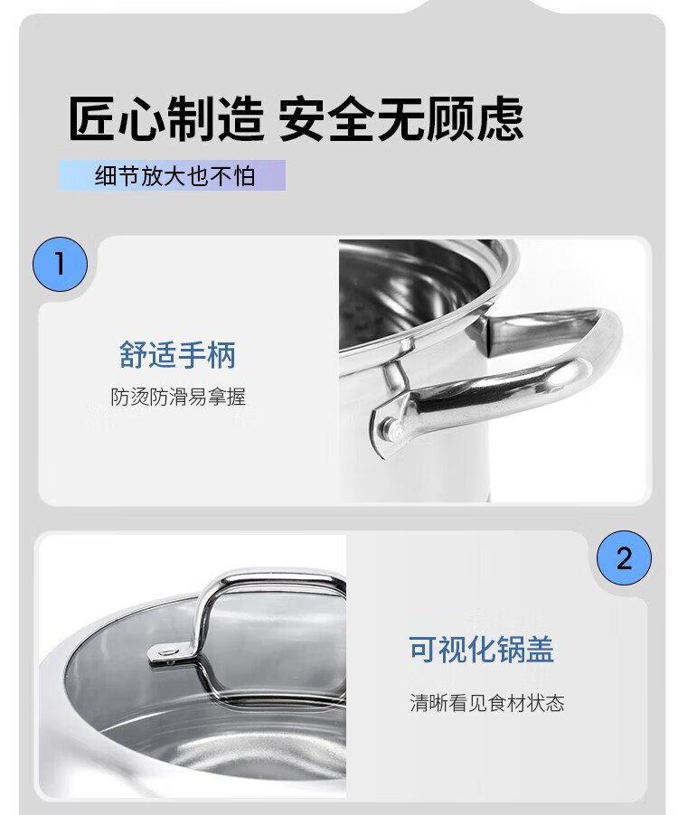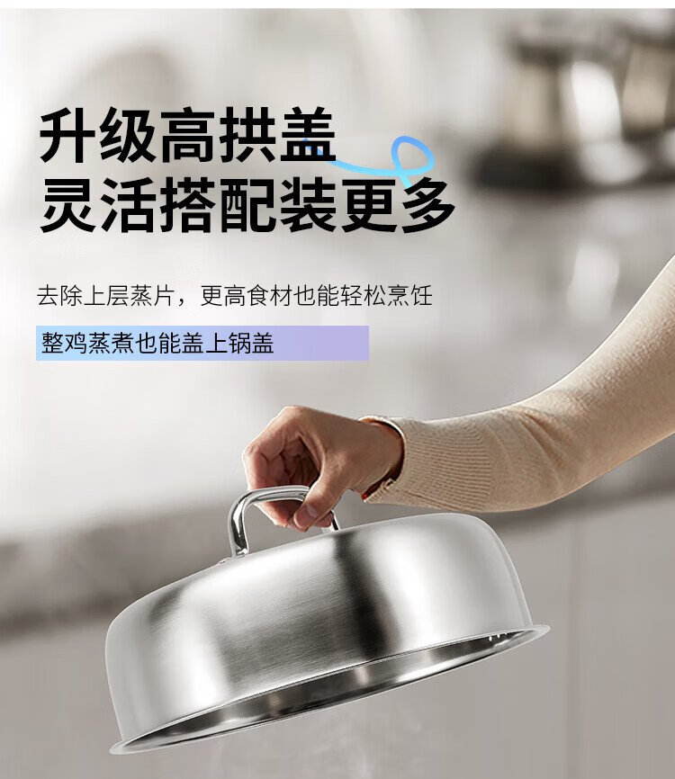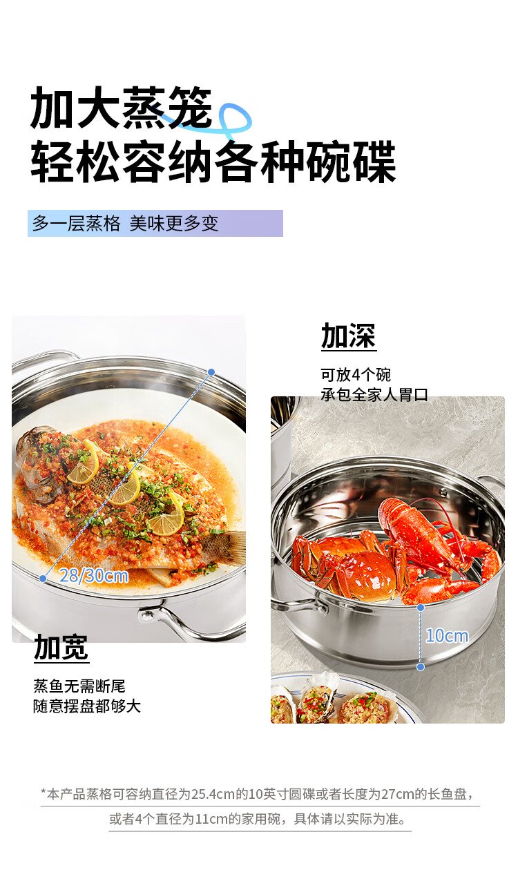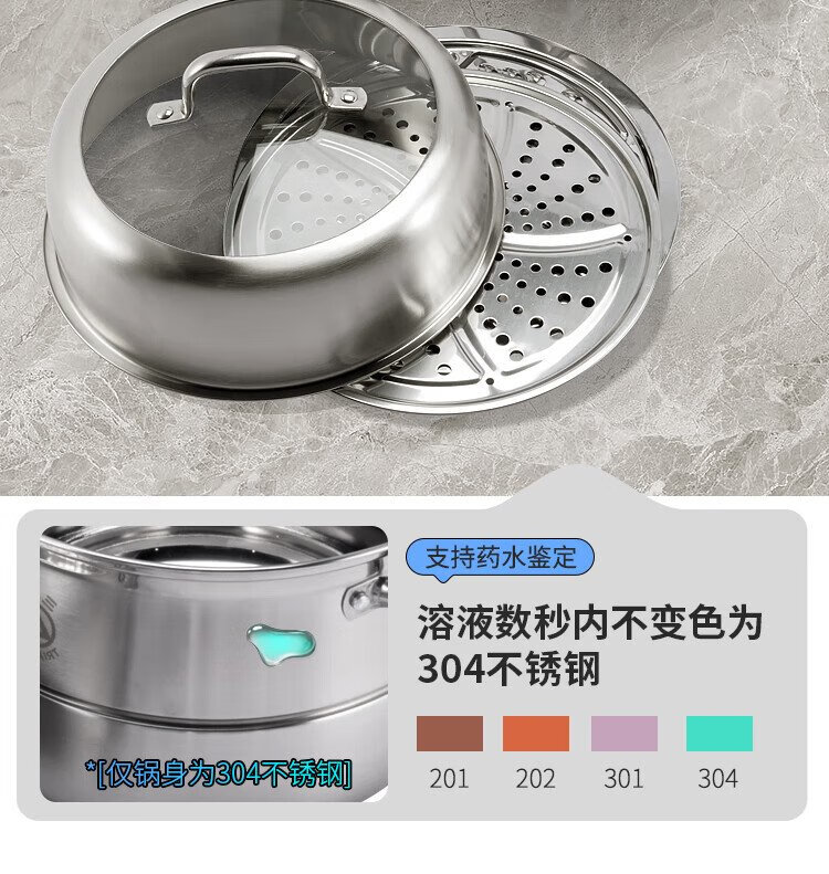 TRIANGLE steamer 304 stainless steel three-layer household 30cm soup pot steamed buns steamed buns multi-bottom gas induction cooker universal