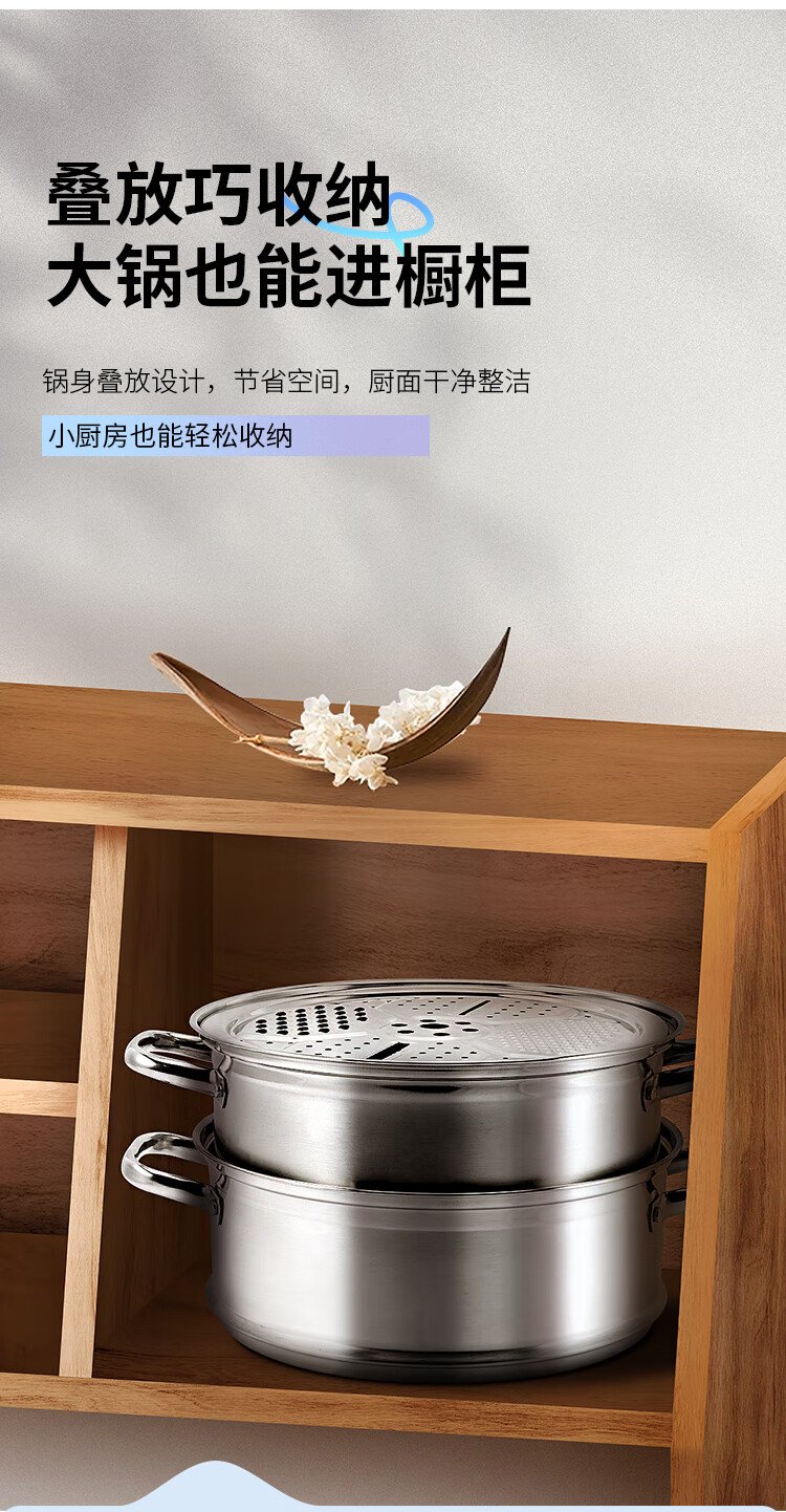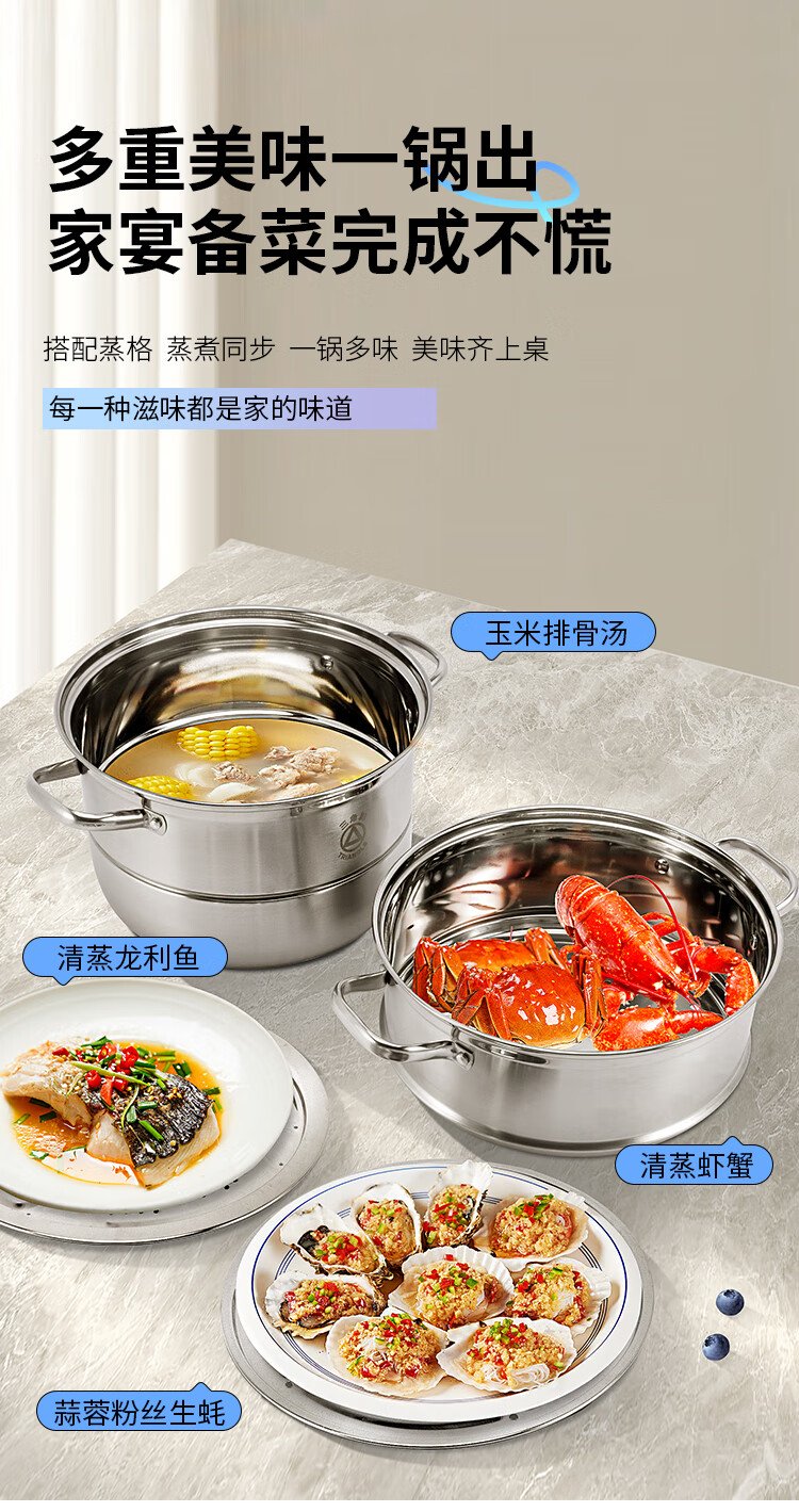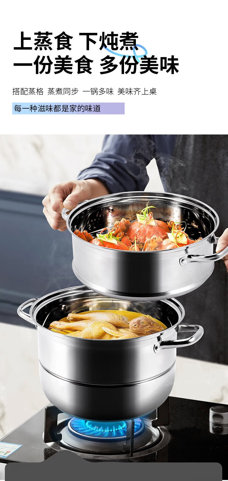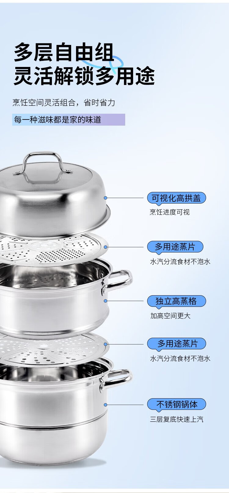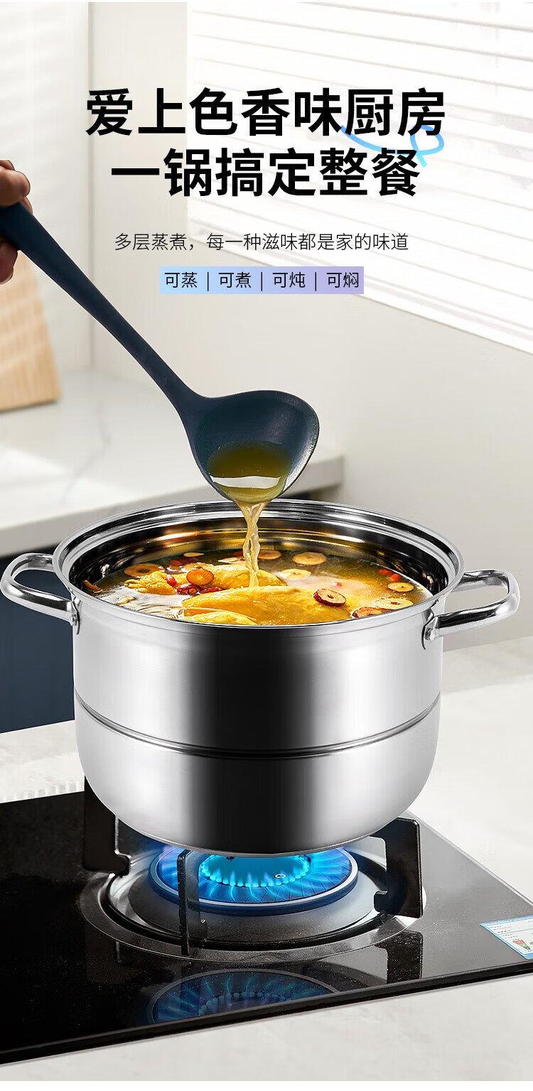 TRIANGLE steamer 304 stainless steel three-layer household 28cm soup pot steamed buns steamed buns multi-bottom gas induction cooker universal