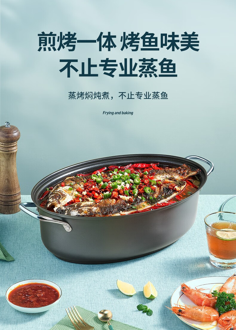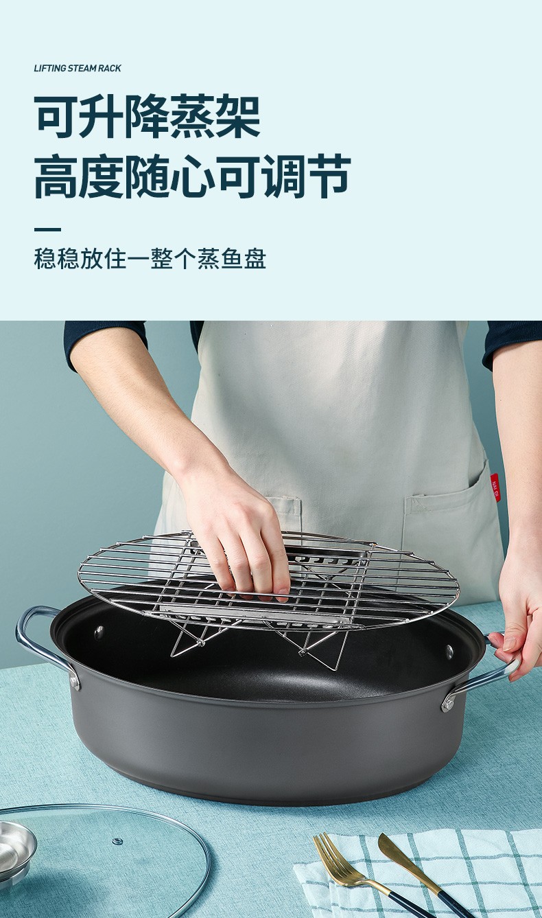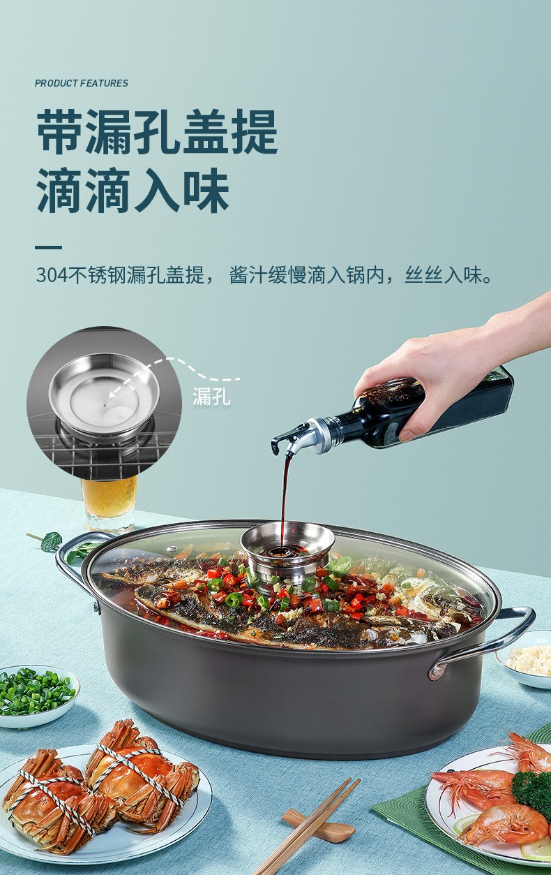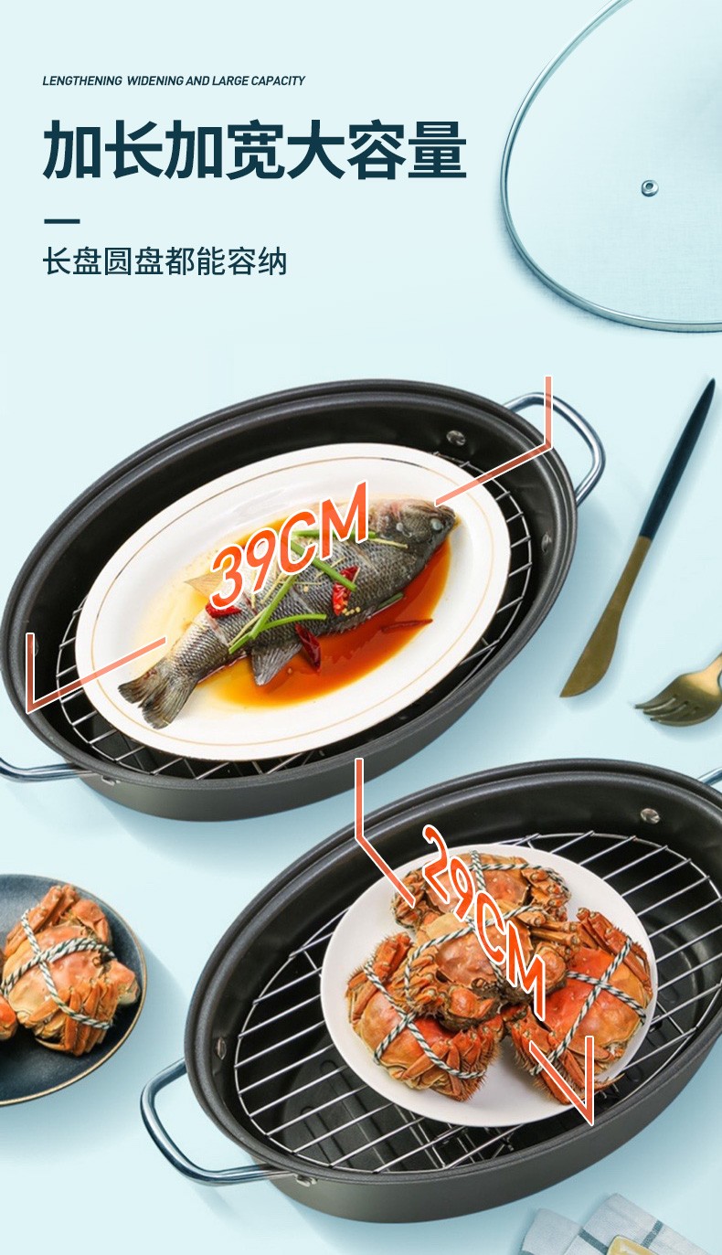Cui Da Huang Steamed Fish Pot Oval Steamer Extra Large Grilled Fish Tray Steaming Fish Pot One-layer Steamer Gas Special Steaming Fish Artifact Steaming Fish Pot (Steaming Rack + Plate Clamp + Fish Plate) 39cm