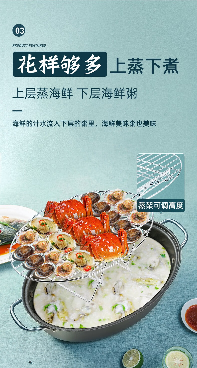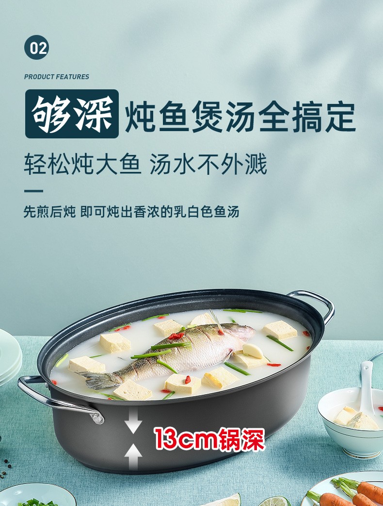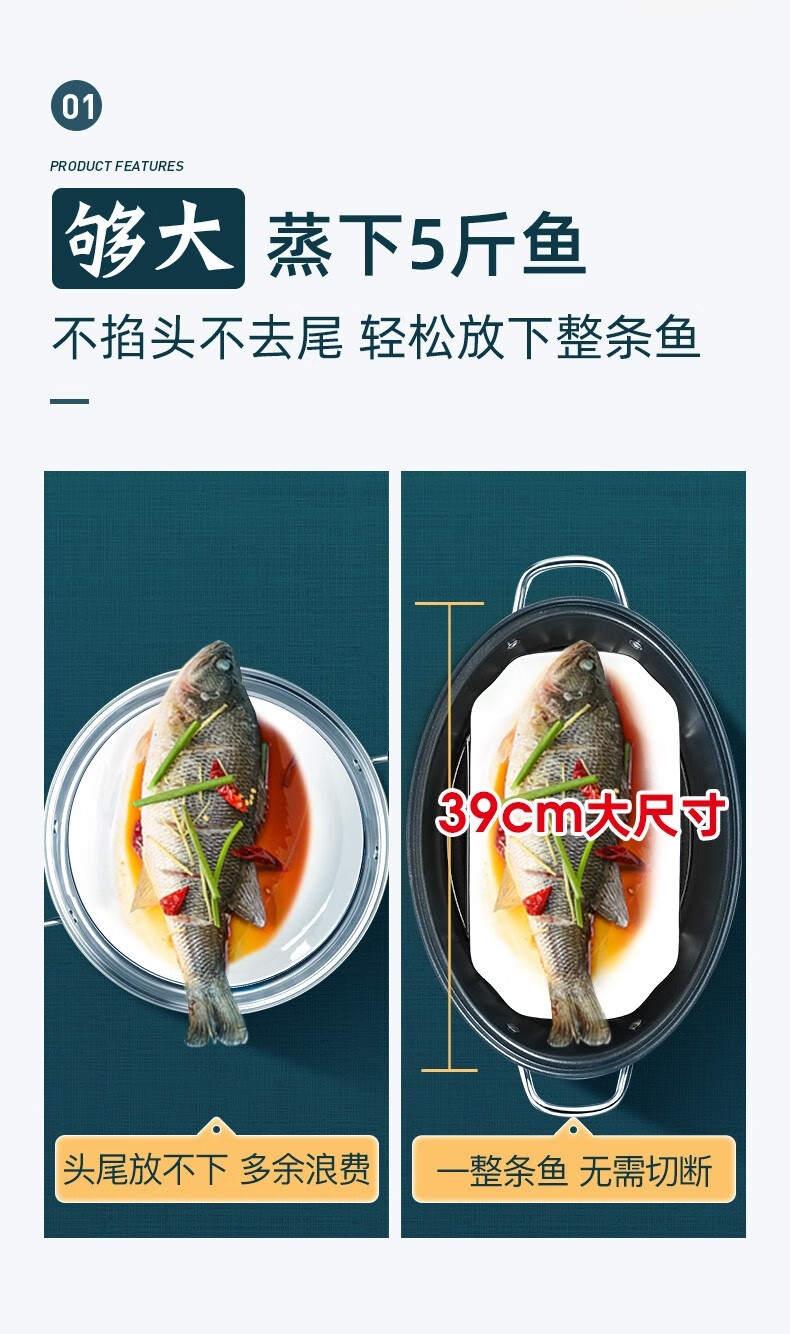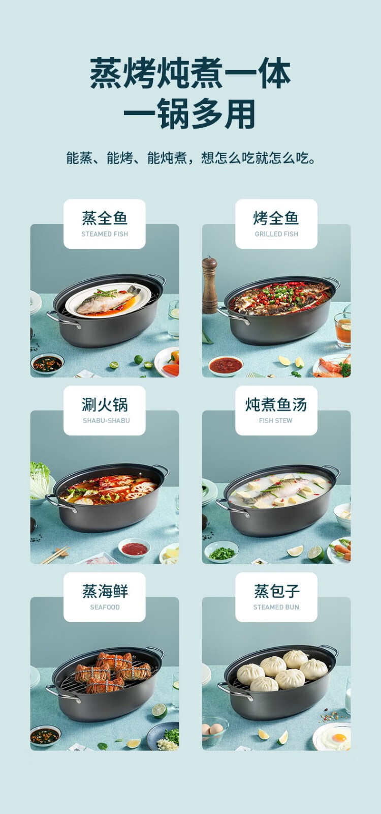 Cui Da Huang Steamed Fish Pot Oval Steamer Extra Large Grilled Fish Tray Steaming Fish Pot One-layer Steamer Gas Special Steaming Fish Artifact Steaming Fish Pot (Steaming Rack + Plate Clamp + Fish Plate) 39cm