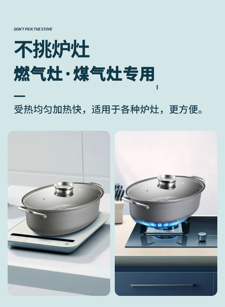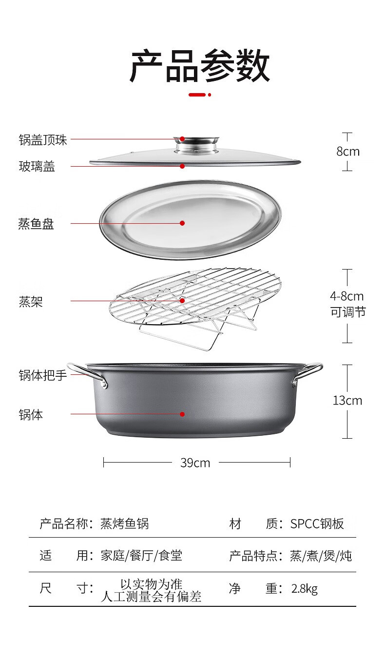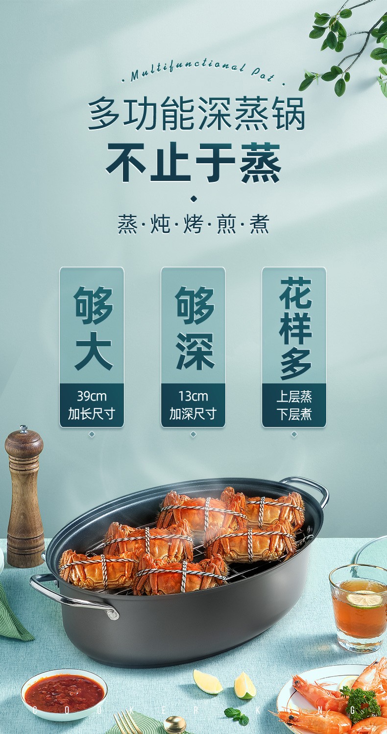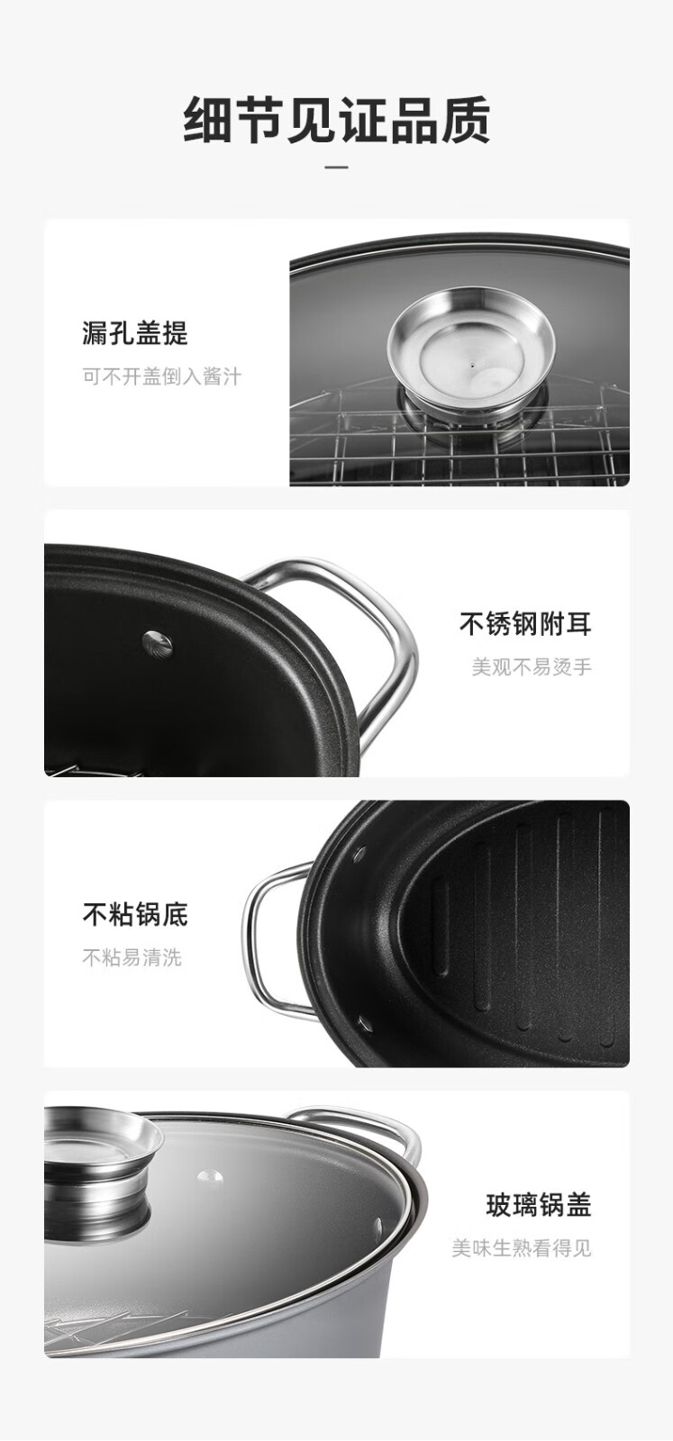 Cui Da Huang Steamed Fish Pot Oval Steamer Extra Large Grilled Fish Tray Steaming Fish Pot One-layer Steamer Gas Special Steaming Fish Artifact Steaming Fish Pot (Steaming Rack + Plate Clamp + Fish Plate) 39cm