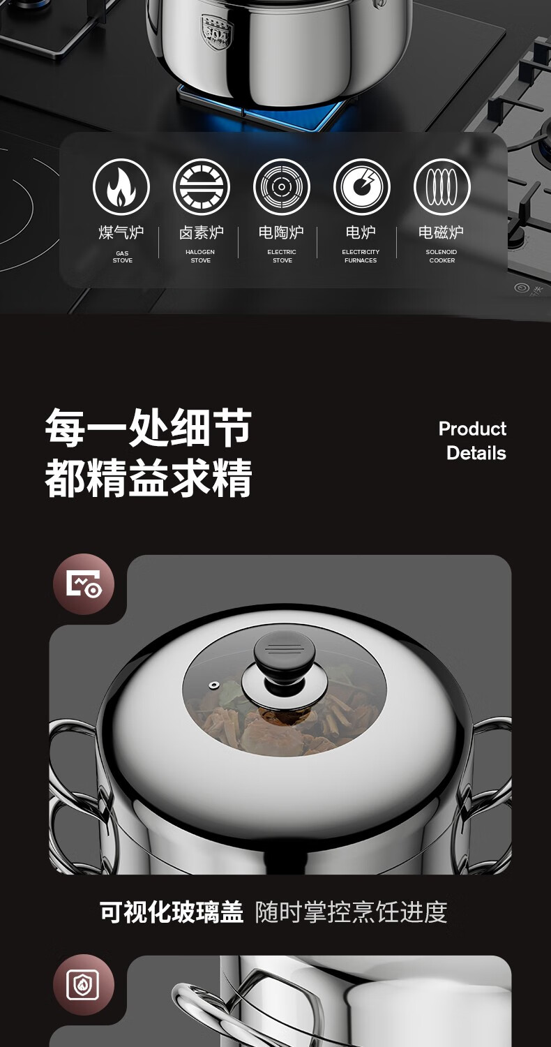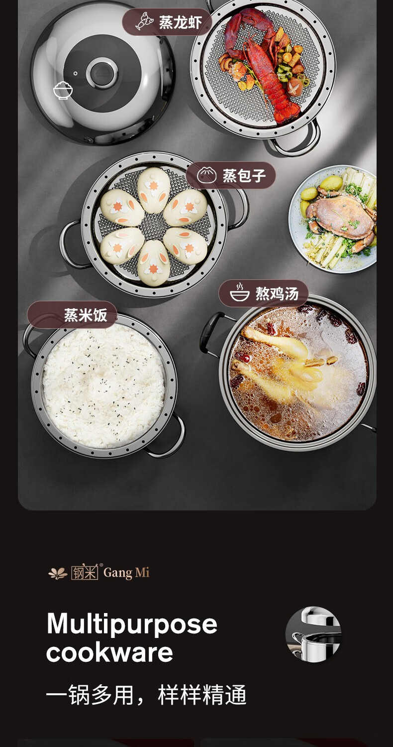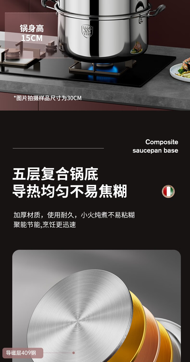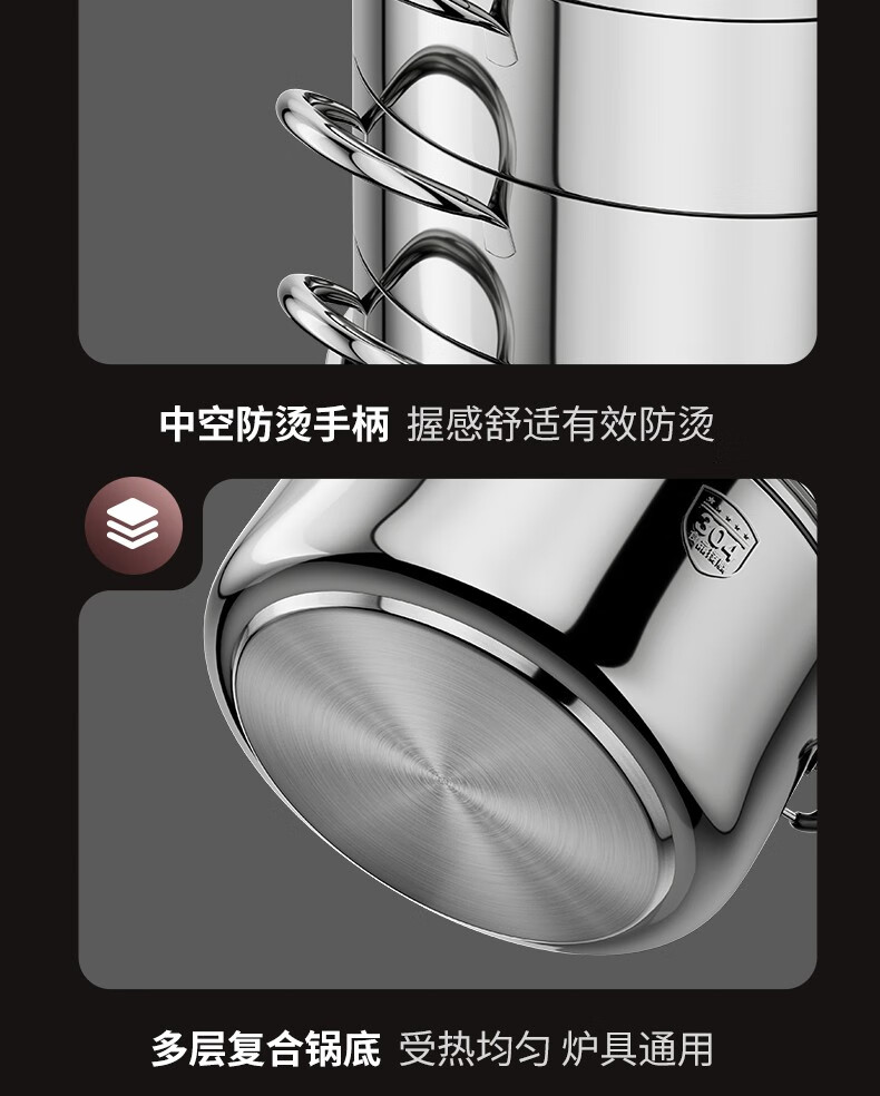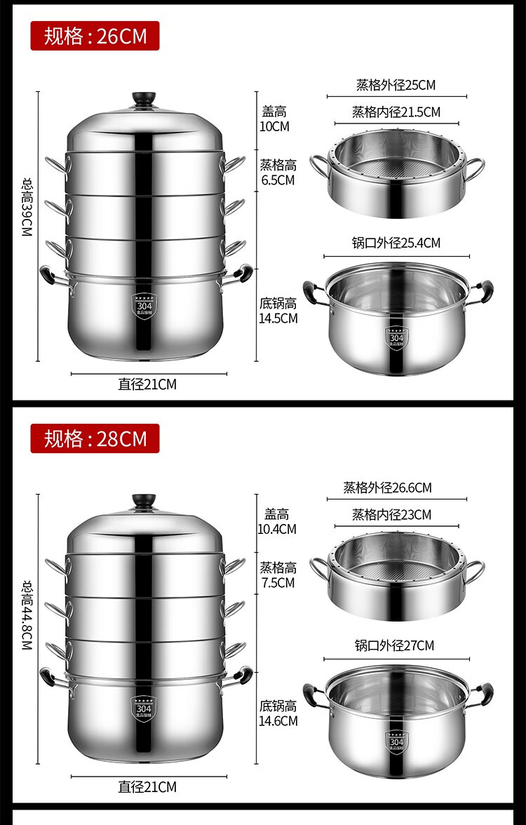 Steel rice 304 stainless steel non-porous steamer household non-odor steamer energy-saving original rice steamer multi-layer thickened basket (one pot, one lid, three steamers) 32CM thickened flagship model