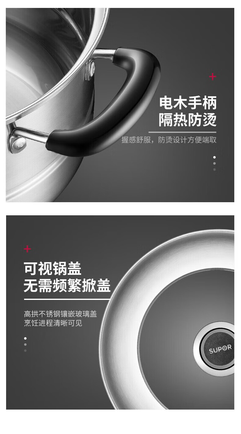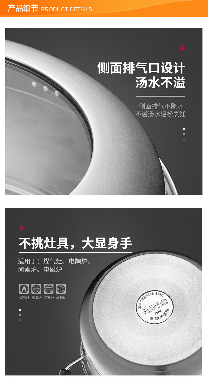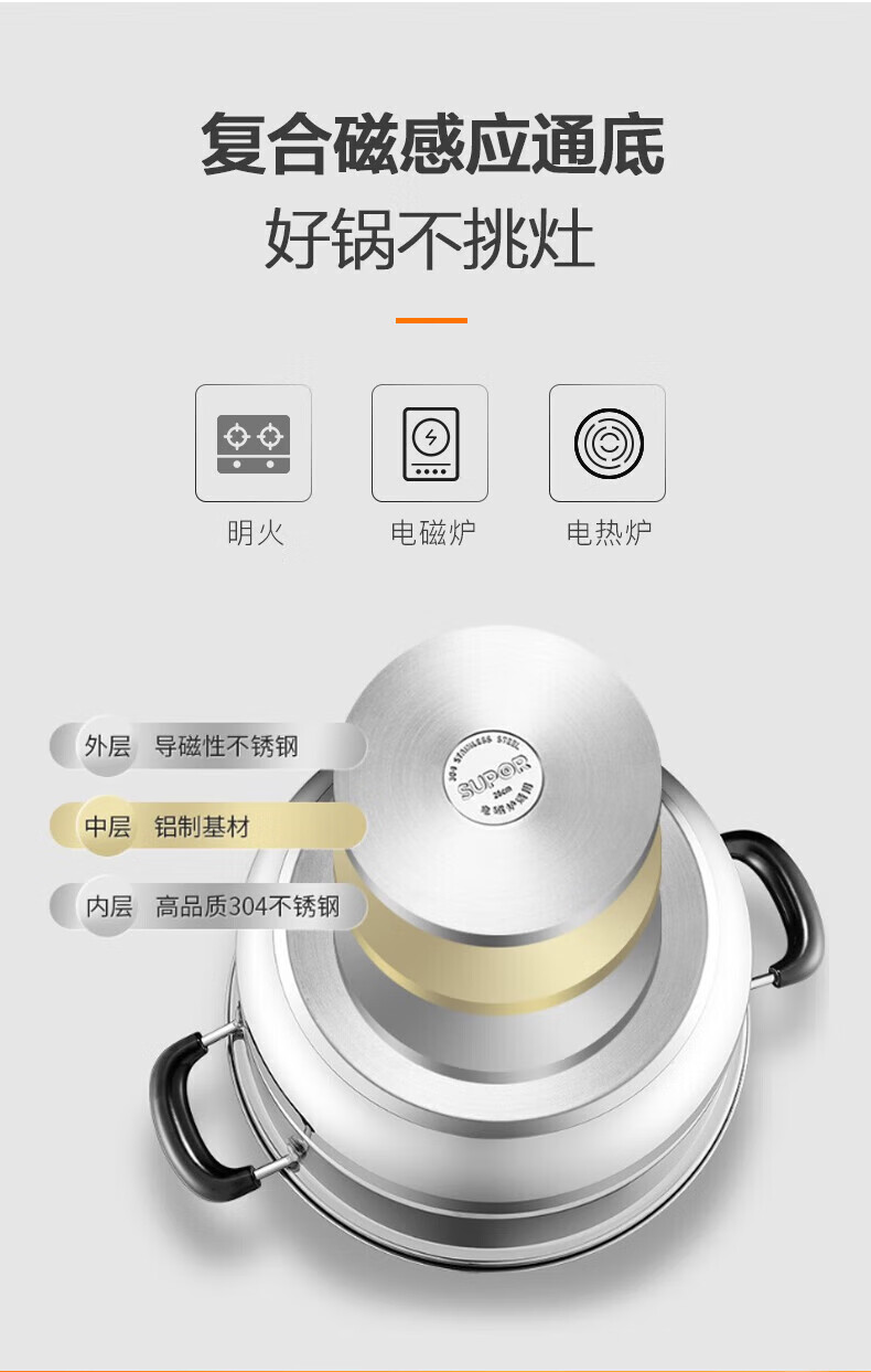 SUPOR steamer 304 stainless steel steamer three-layer multi-bottom steamer steamer easy storage gas induction cooker universal SZ28T9 supermarket same style 28cm