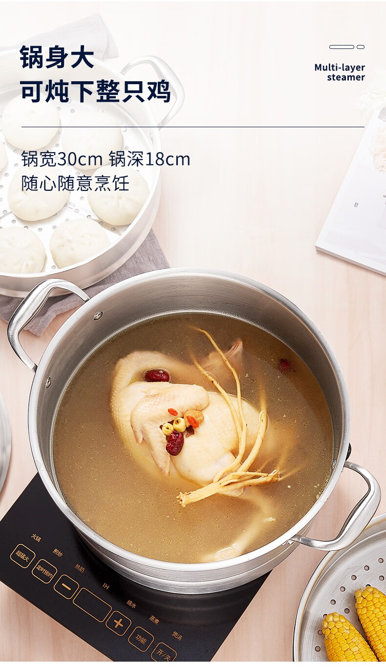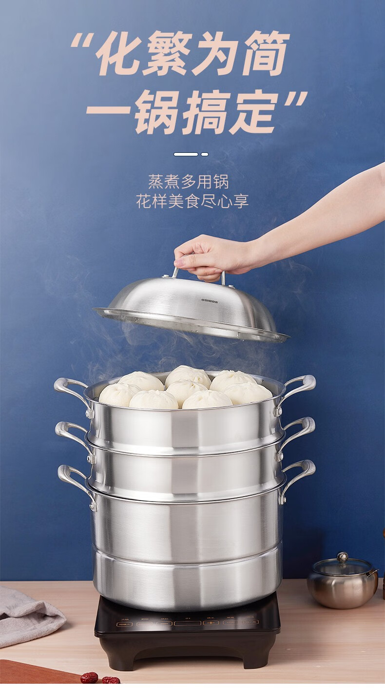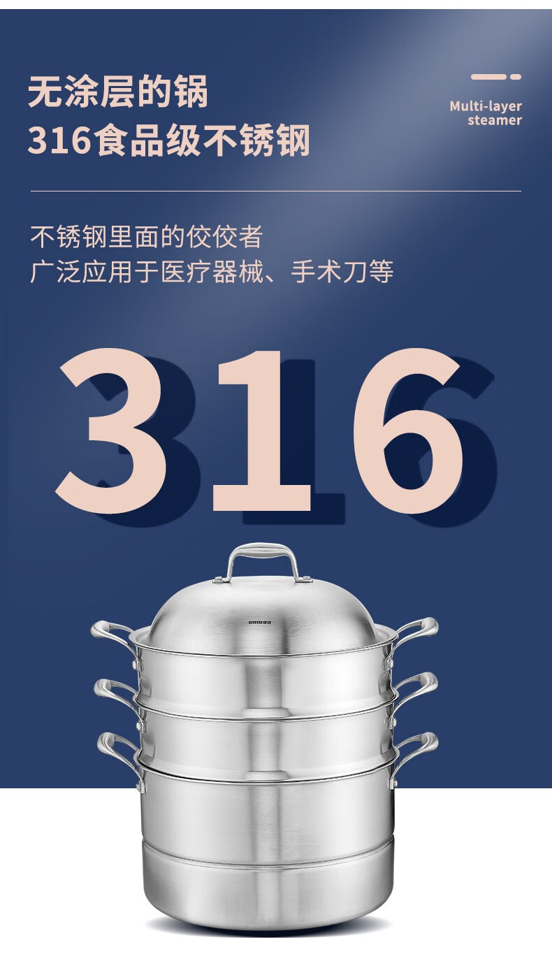 OmuDa 316 stainless steel steamed bun steamer household three-layer thickened stainless steel large steaming dual-purpose pot stove universal 30cm 30cm