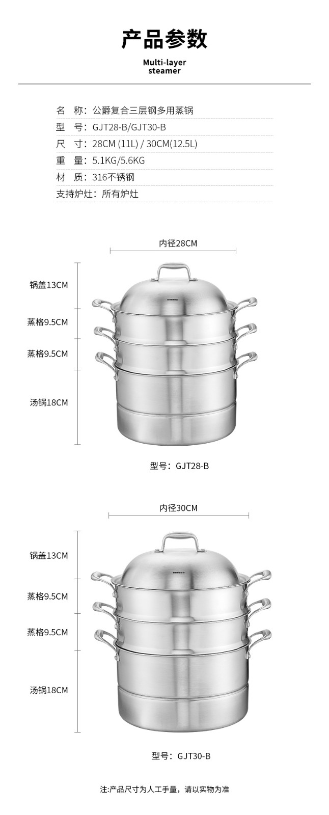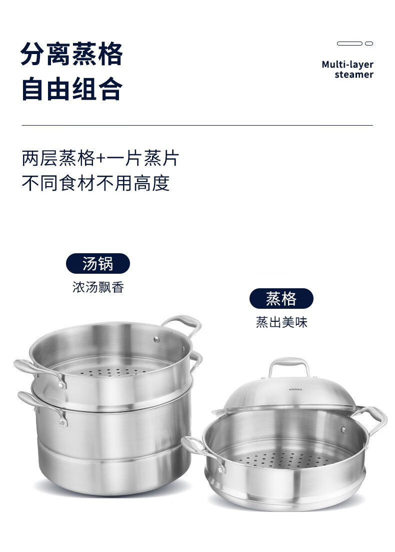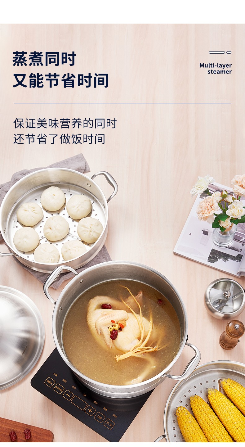 OmuDa 316 stainless steel steamed bun steamer household three-layer thickened stainless steel large steaming dual-purpose pot stove universal 30cm 30cm