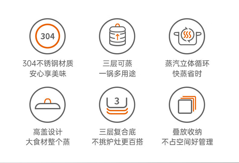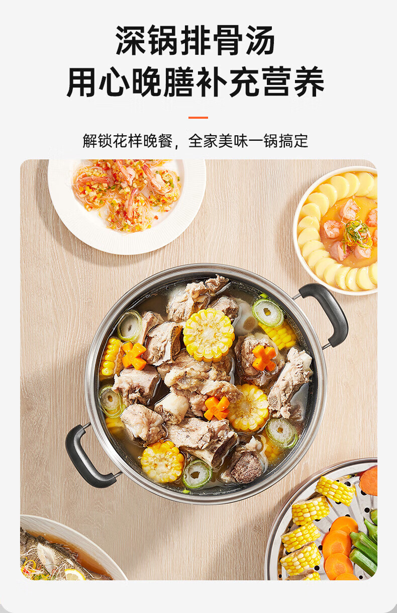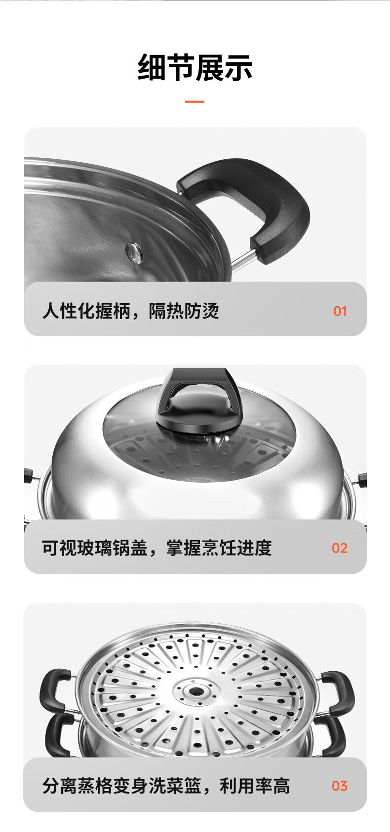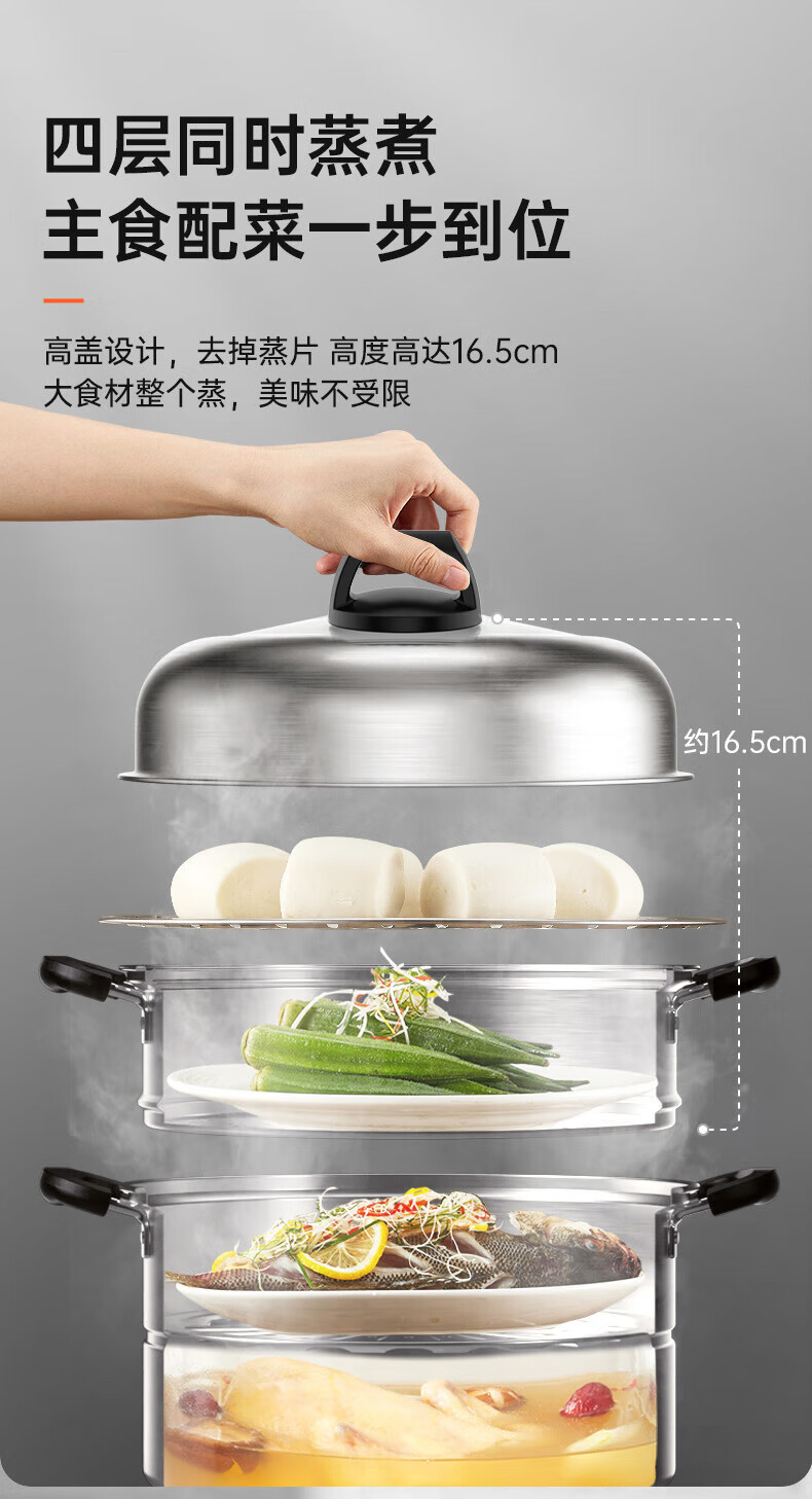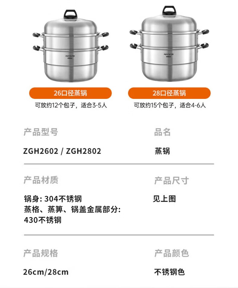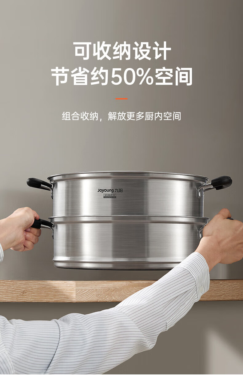 Jiuyang steamer 304 stainless steel three-layer compound bottom household steamed fish and raised lid steamer steamer steamer induction cooker gas stove high arch lid large capacity丨ZGH2802 3 layers 28cm