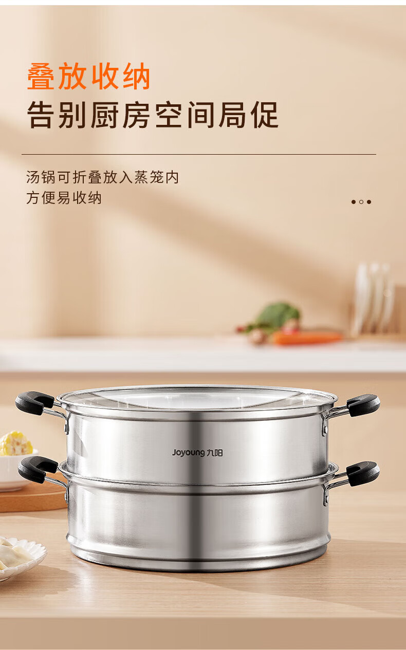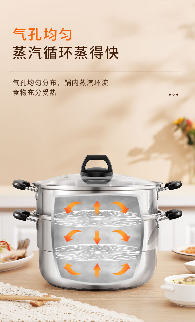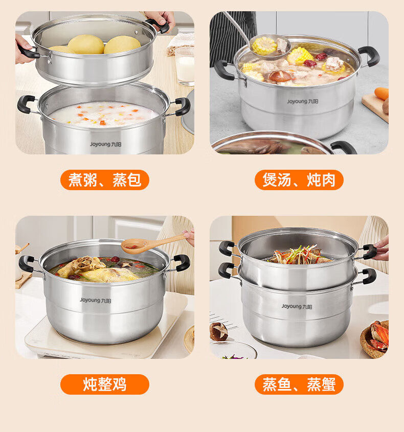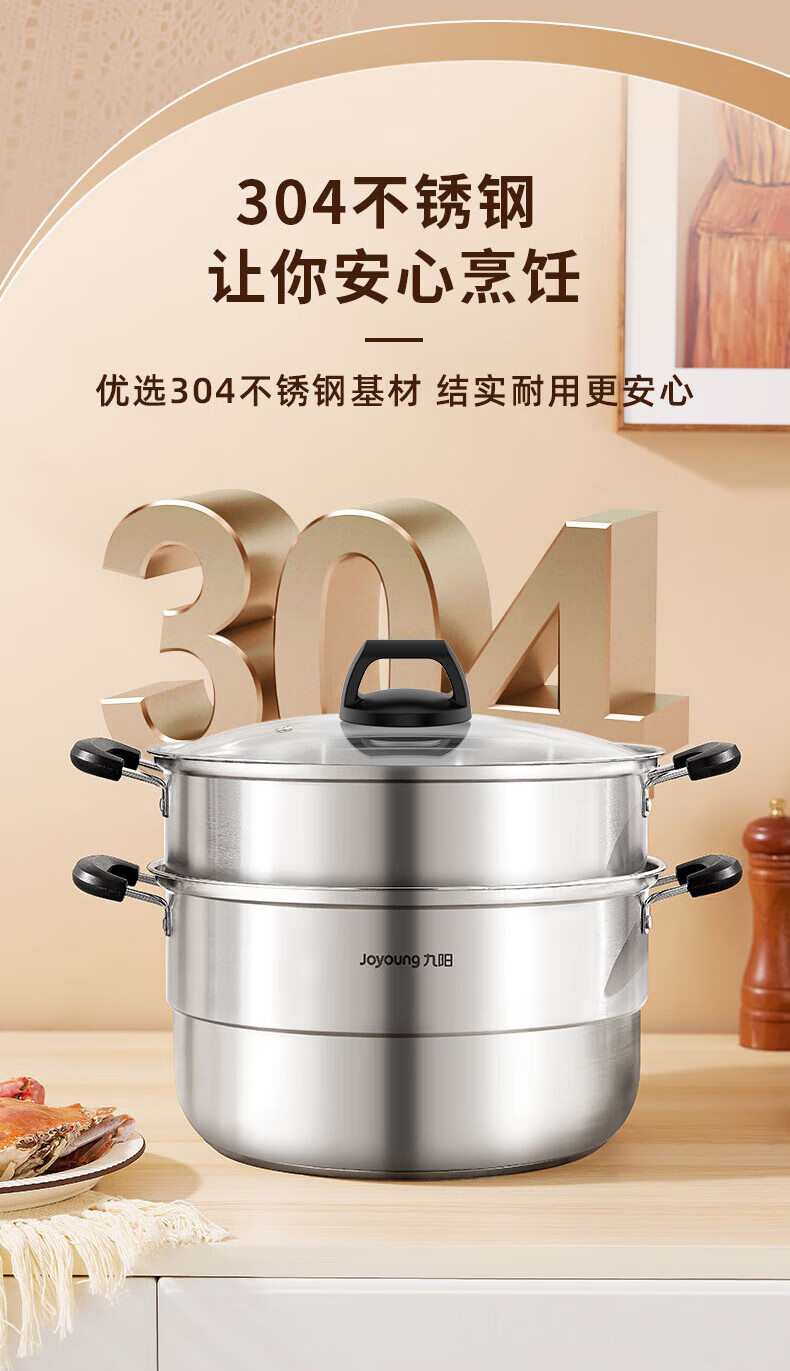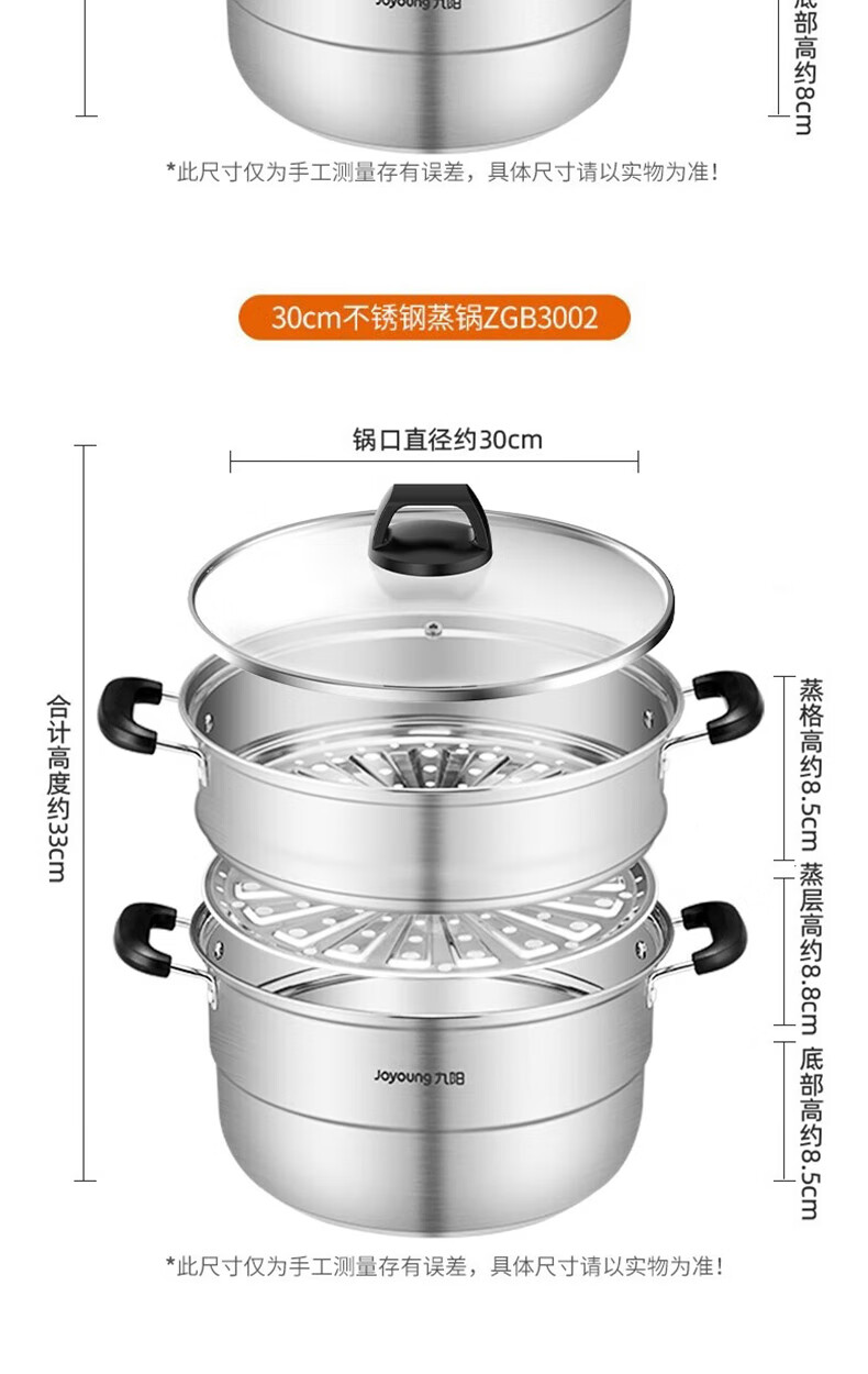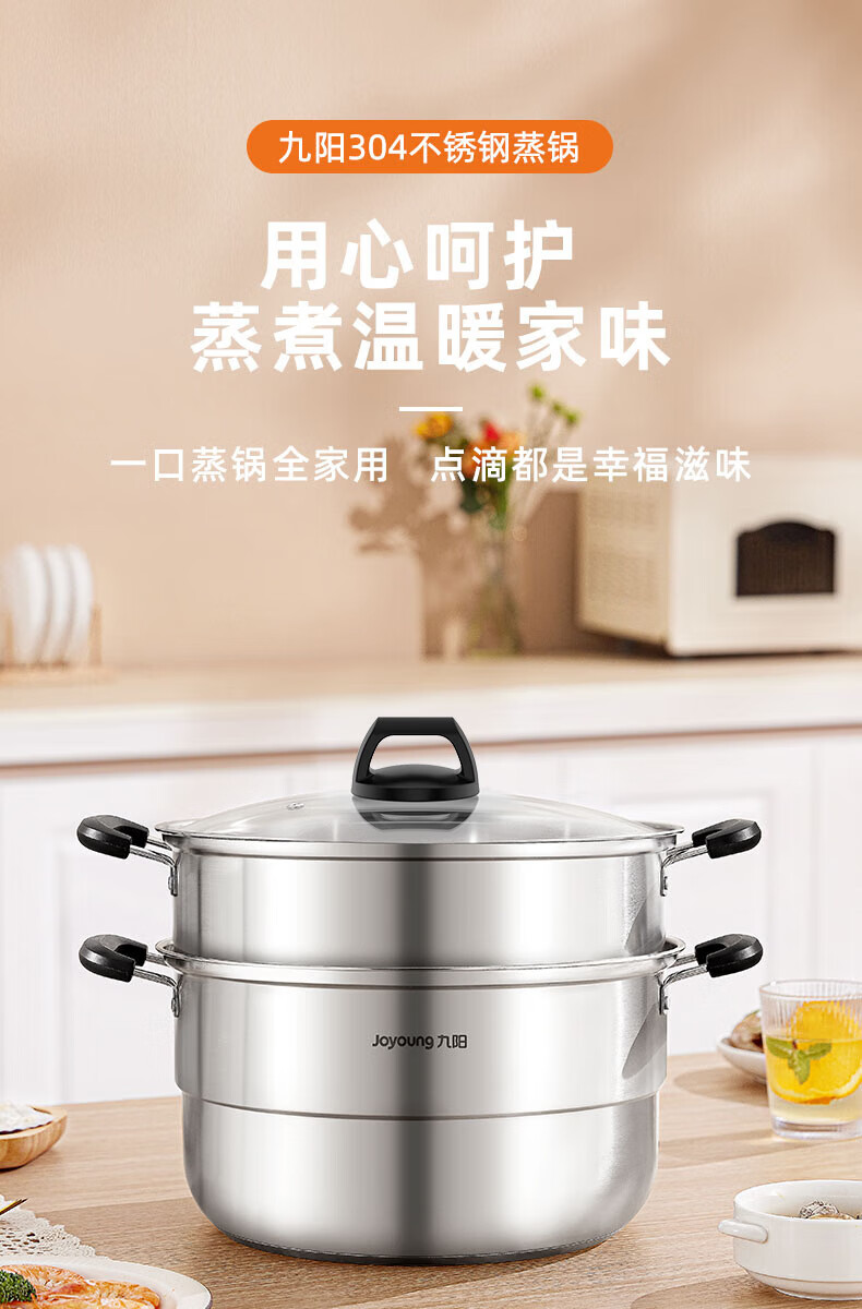 Joyoung Steamer 304 stainless steel household steamer thickened double layer large capacity soup pot steamed buns large steamer steamed bun pot 30CM double layer - ZGB3002 2 layers 30cm