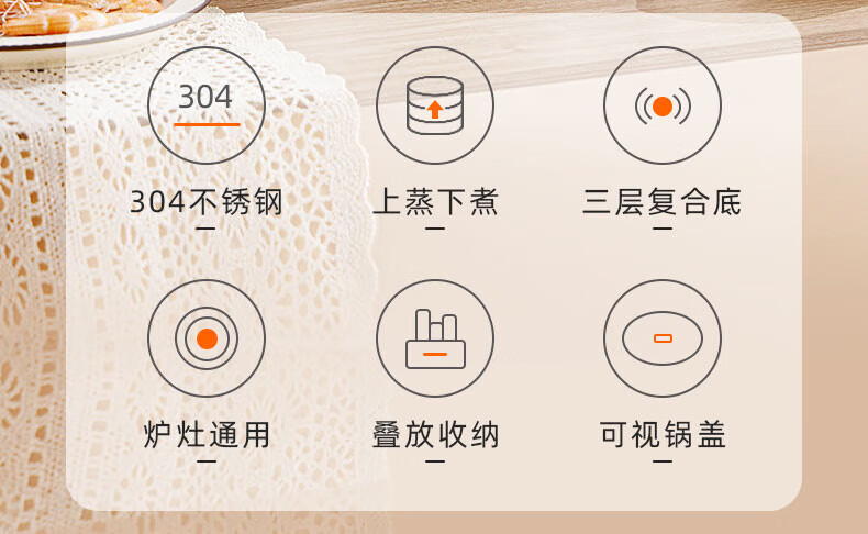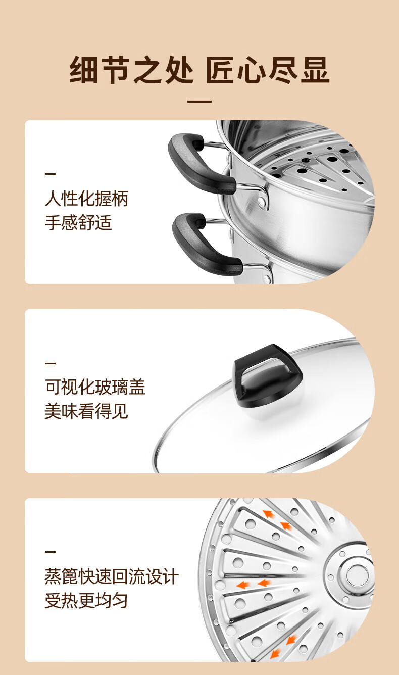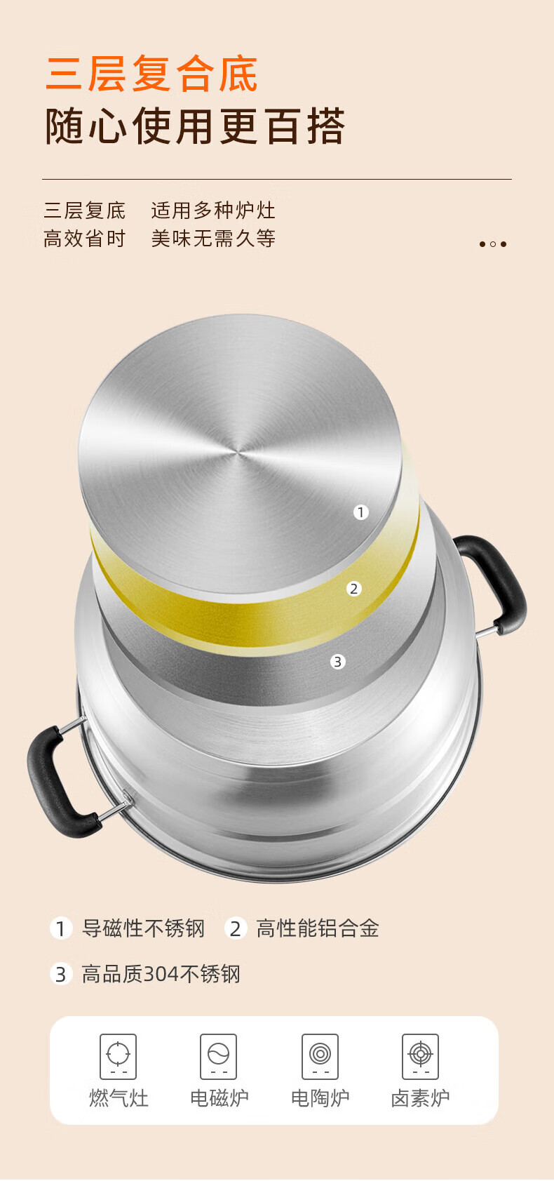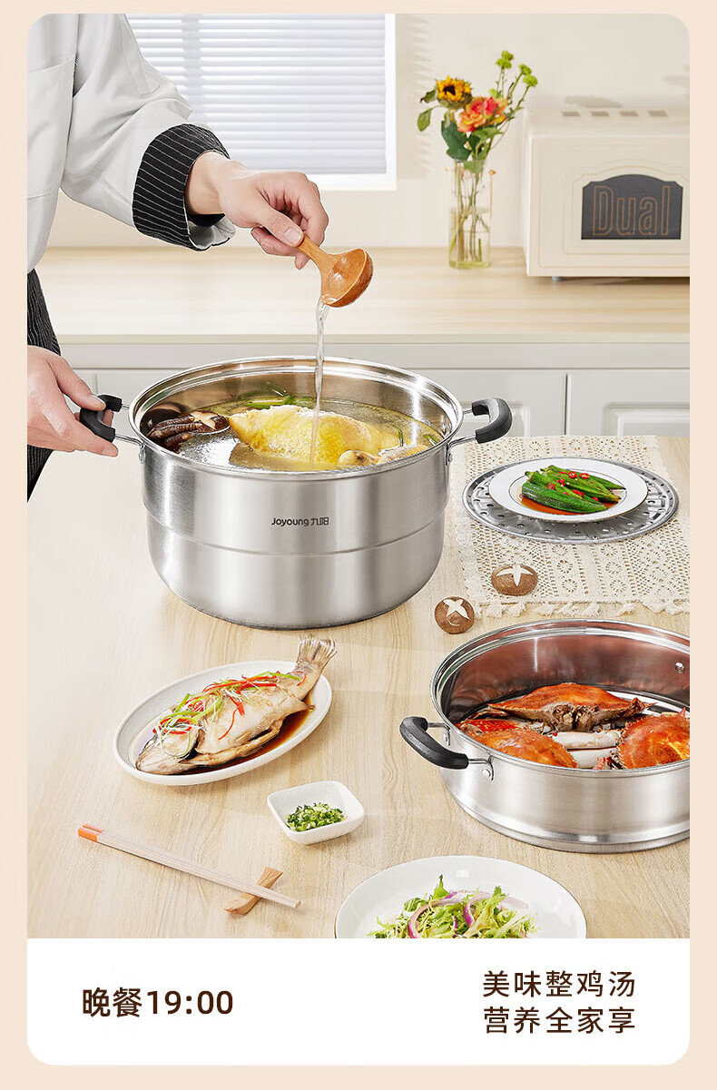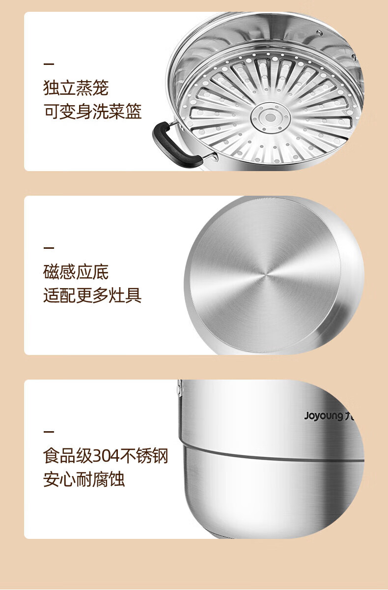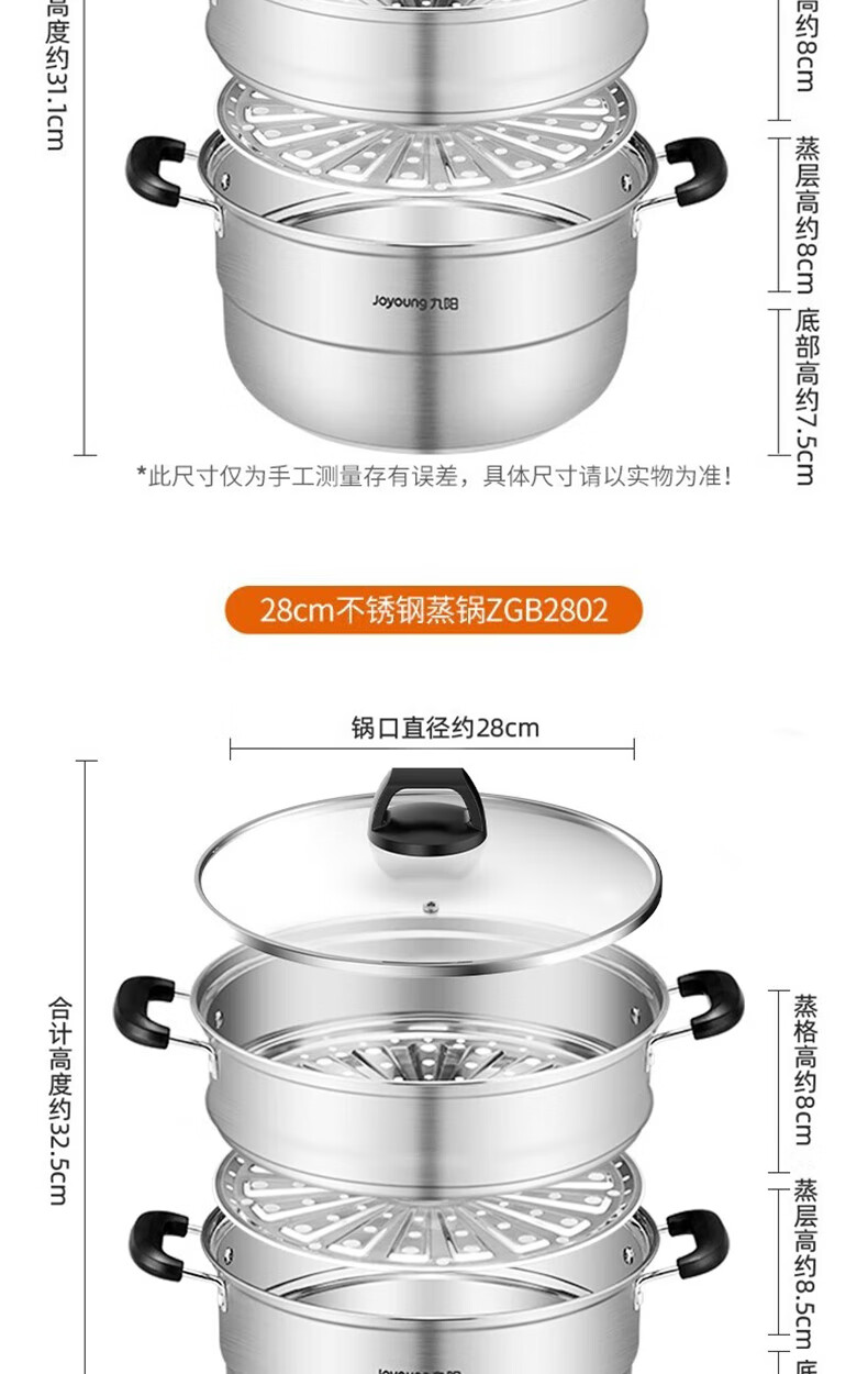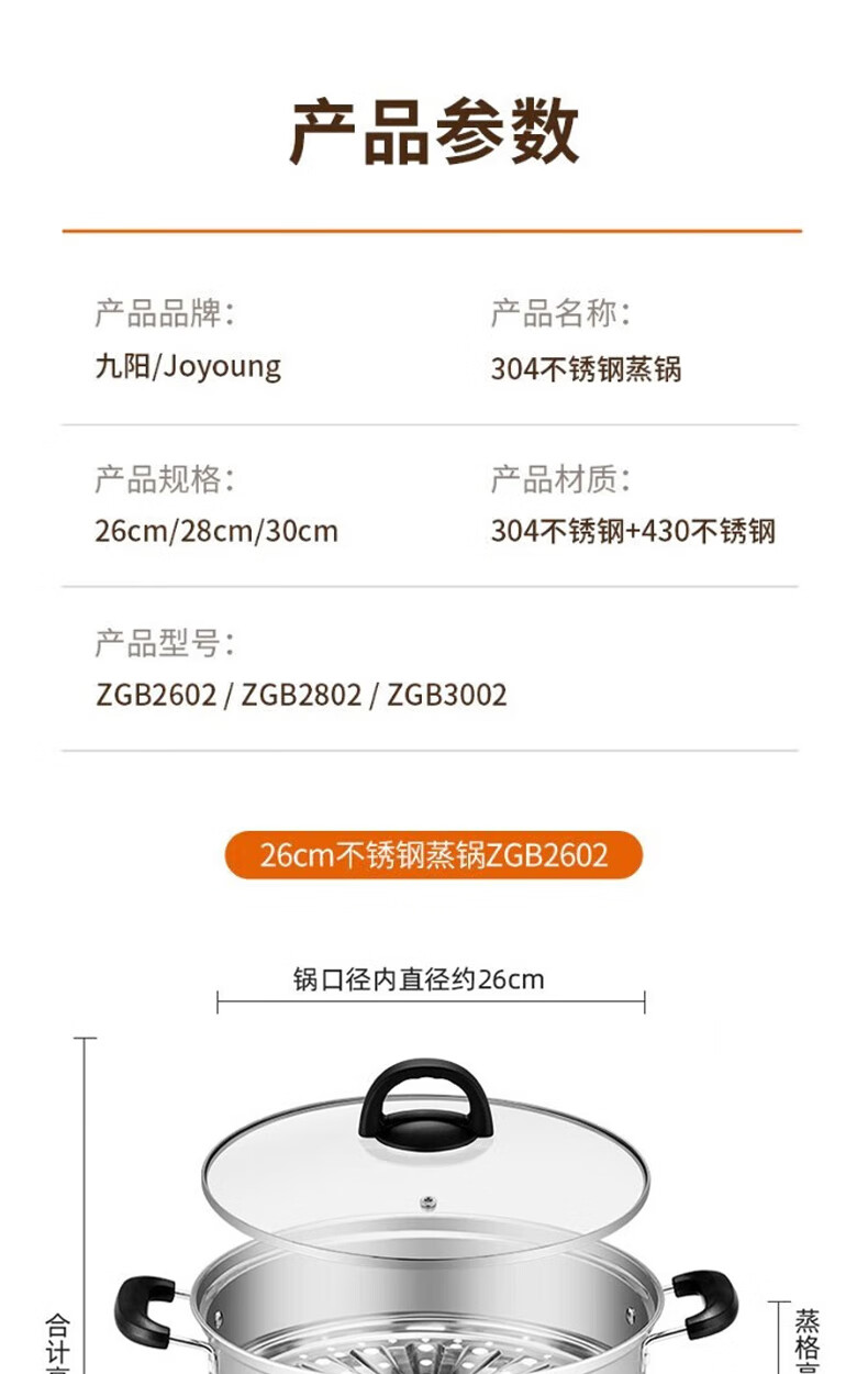Joyoung Steamer 304 stainless steel household steamer thickened double layer large capacity soup pot steamed buns large steamer steamed bun pot 30CM double layer - ZGB3002 2 layers 30cm