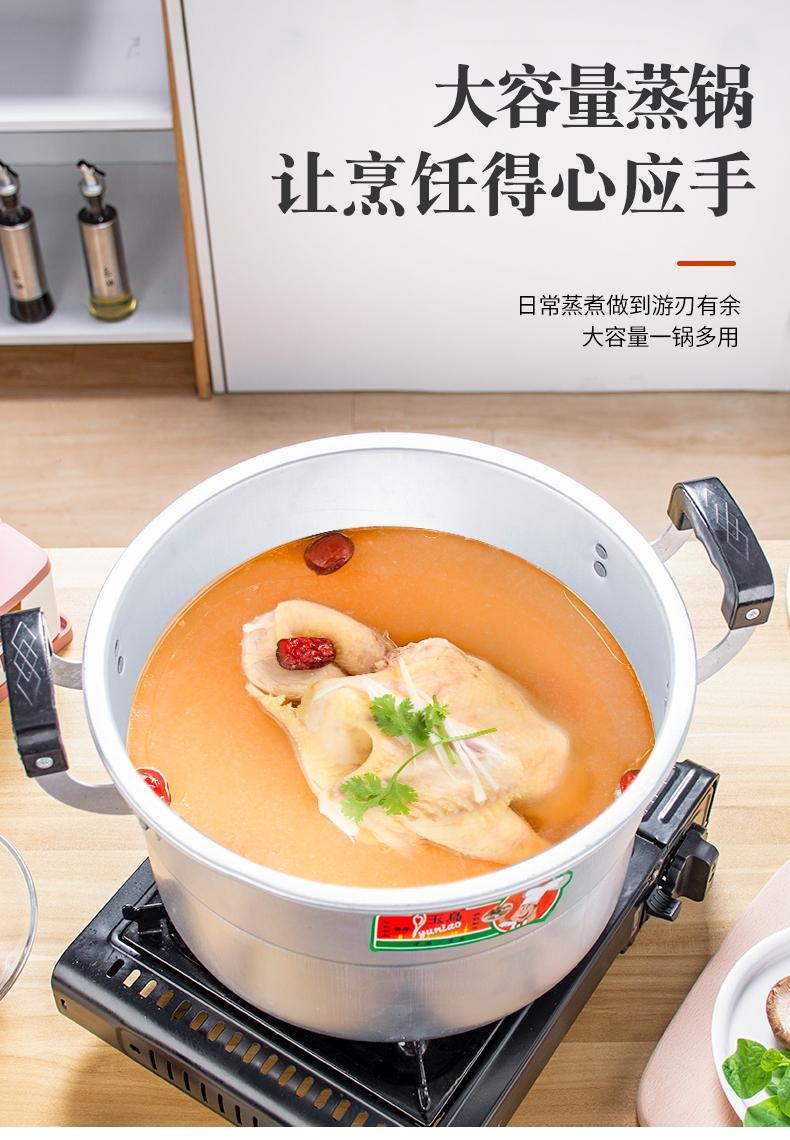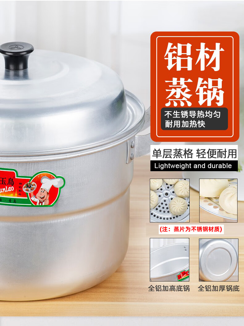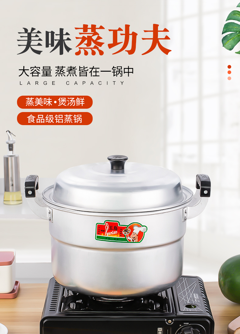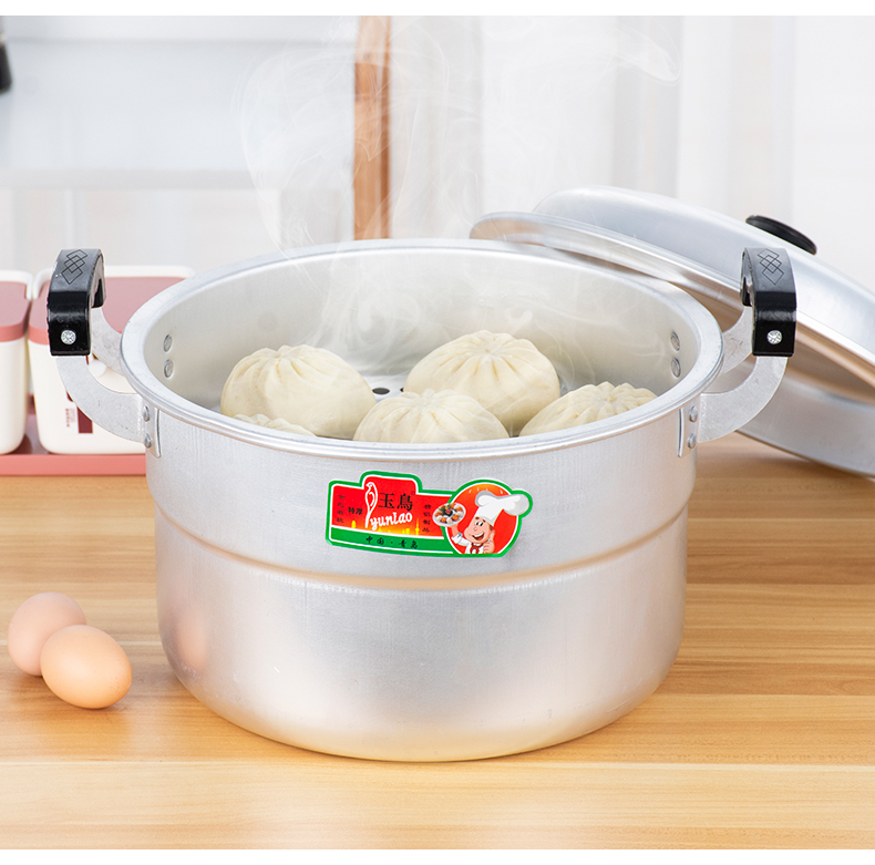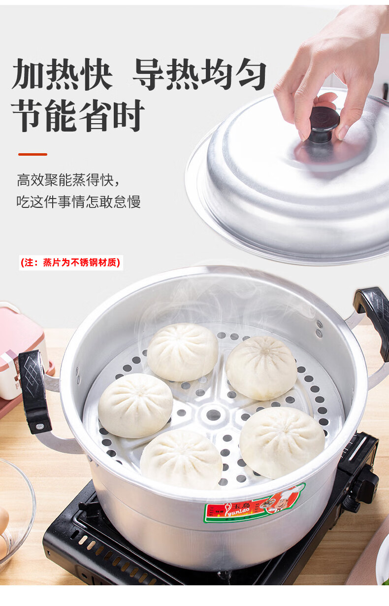 Yuniao aluminum small steamer old-fashioned household multi-layer steamer aluminum pot steaming dual-purpose soup pot large capacity steamed bun pot gas stove extra thick 24cm single layer aluminum steamer 1 layer 24cm
