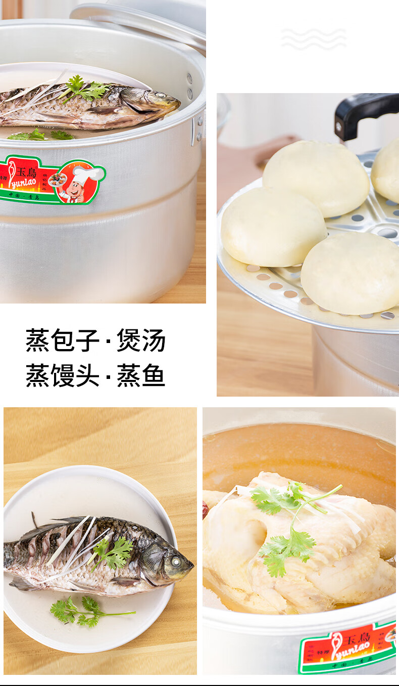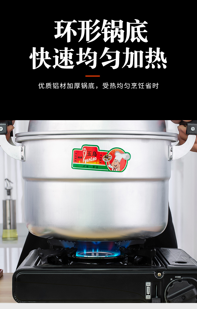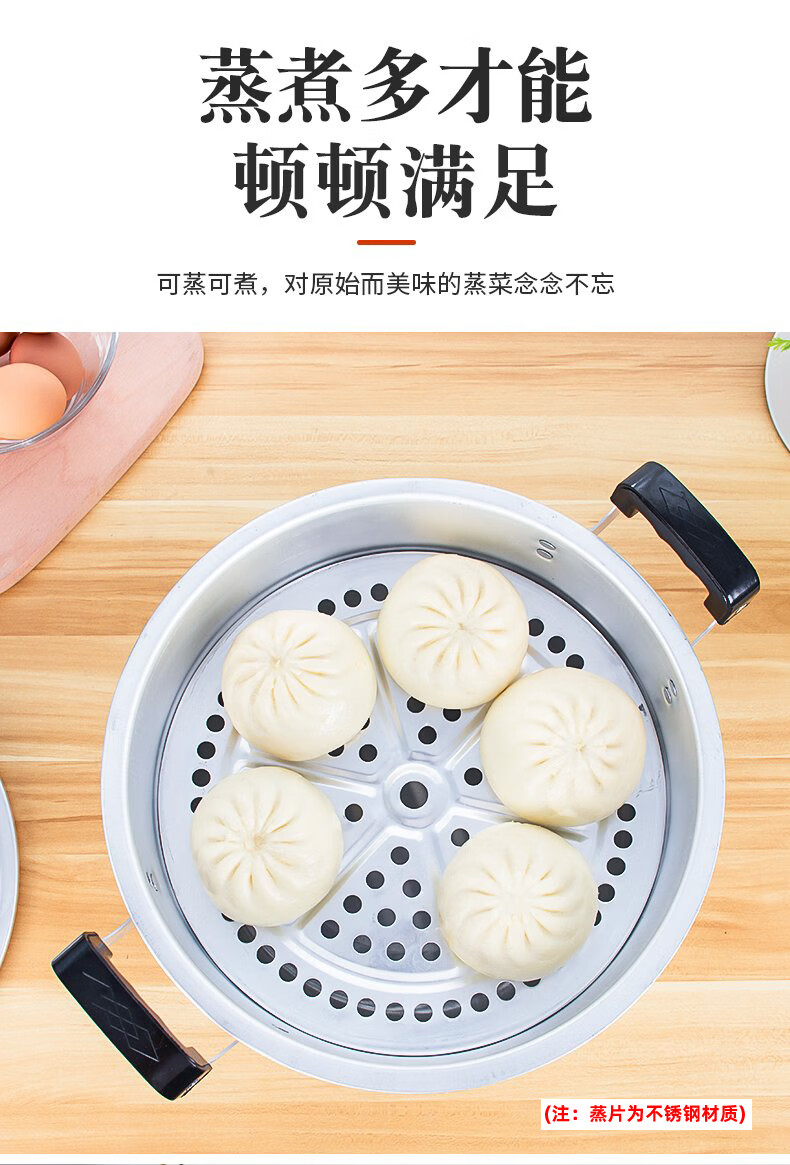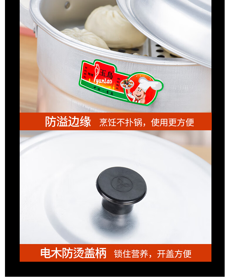 Yuniao aluminum small steamer old-fashioned household multi-layer steamer aluminum pot steaming dual-purpose soup pot large capacity steamed bun pot gas stove extra thick 24cm single layer aluminum steamer 1 layer 24cm