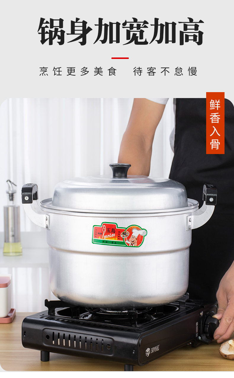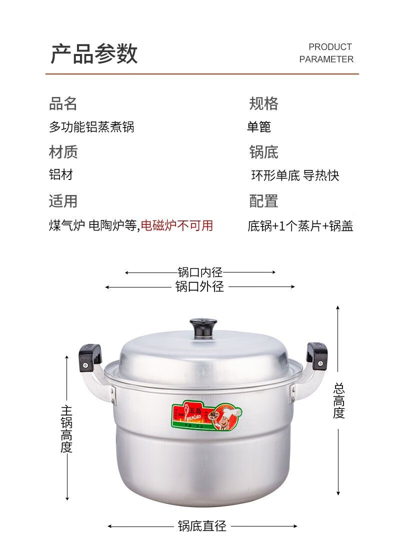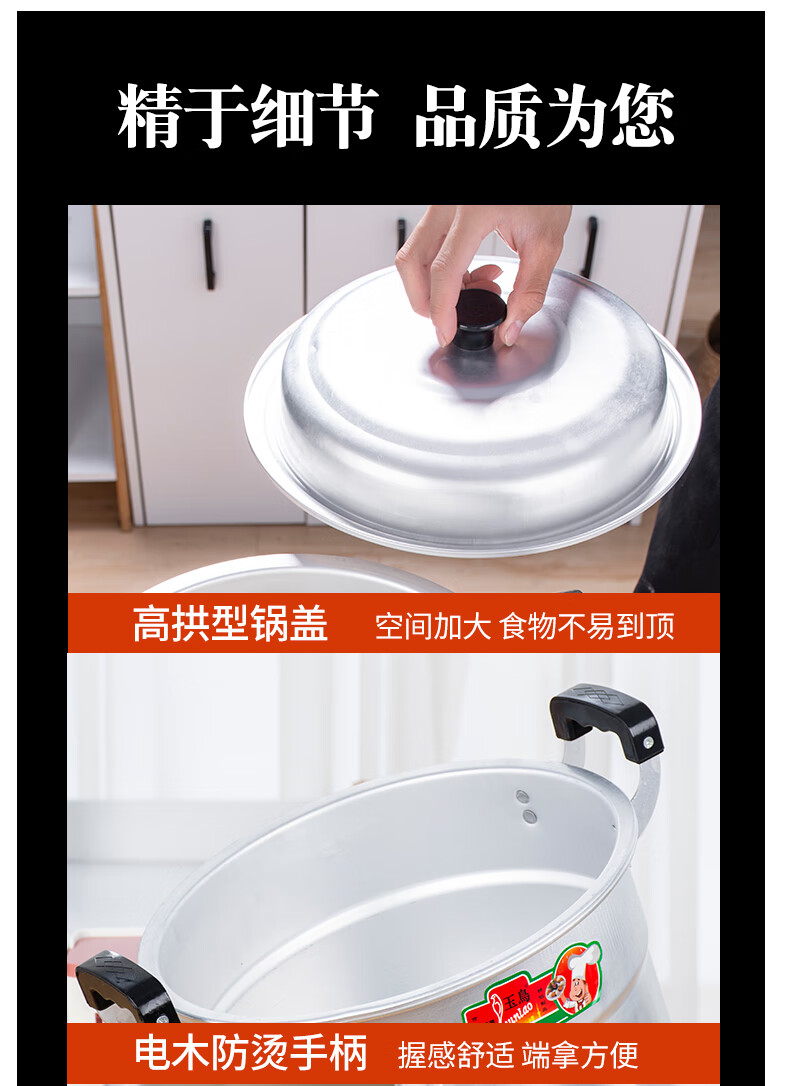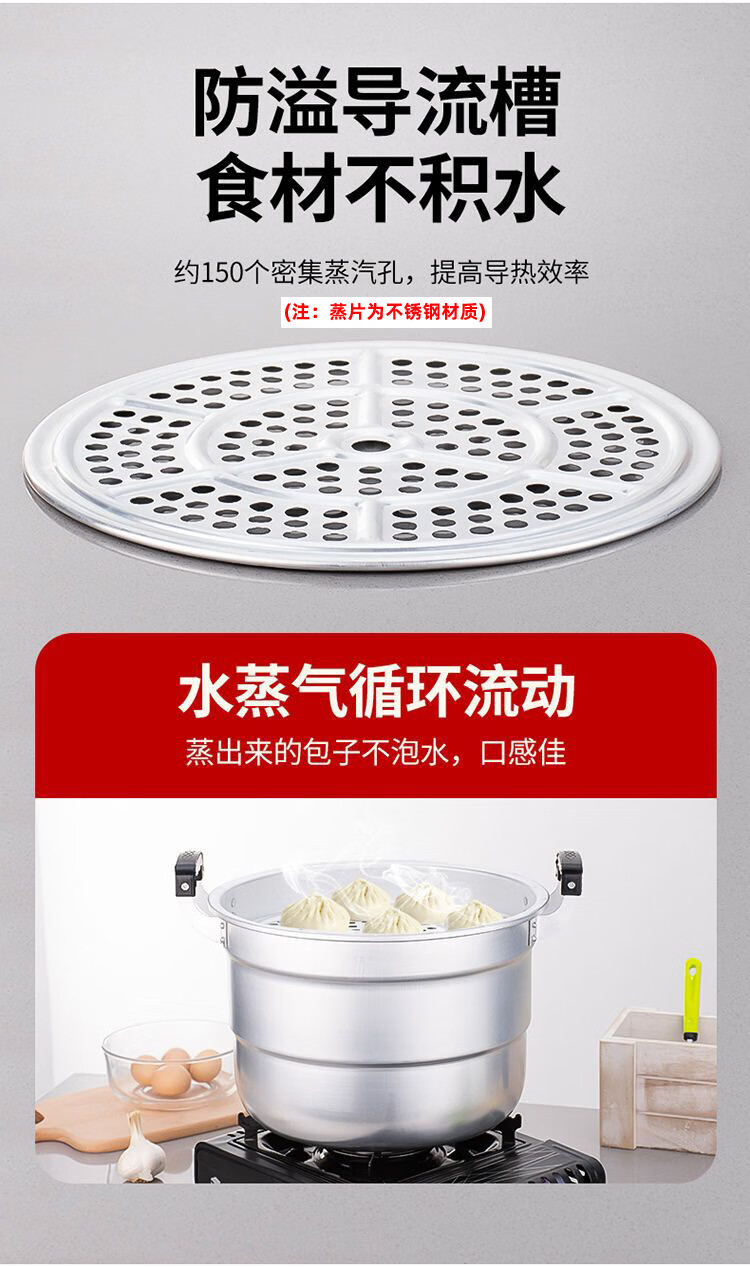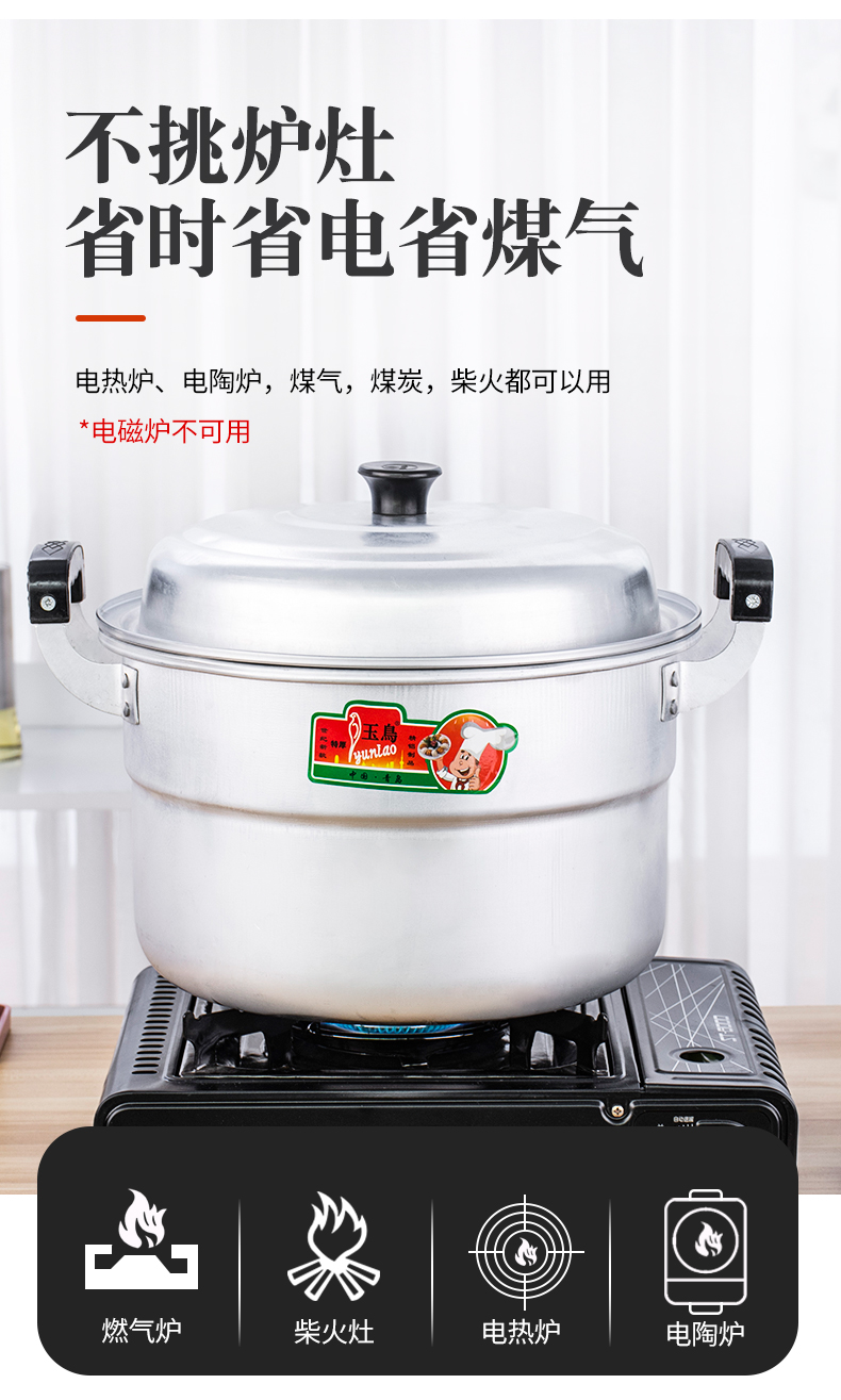 Yuniao aluminum small steamer old-fashioned household multi-layer steamer aluminum pot steaming dual-purpose soup pot large capacity steamed bun pot gas stove extra thick 24cm single layer aluminum steamer 1 layer 24cm