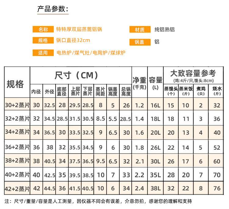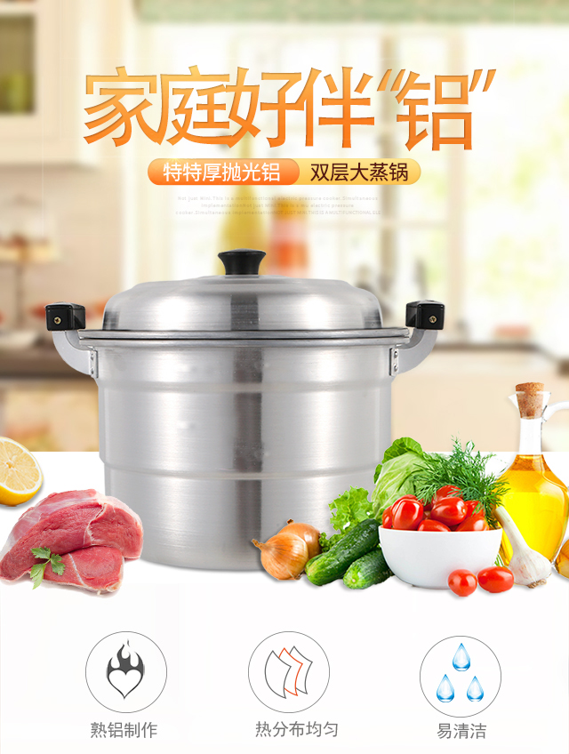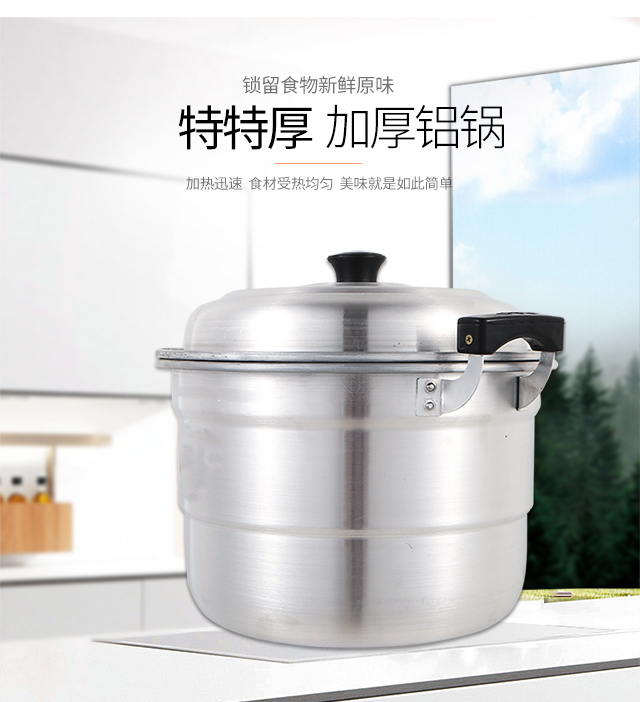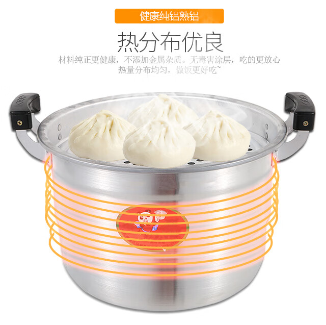 Yuniao extra thick double-layer aluminum steamer household old-fashioned large aluminum pot thickened large capacity soup pot commercial large Lu pot water boiler 32CM extra thick polished aluminum pot + 2 steaming sheets 32cm