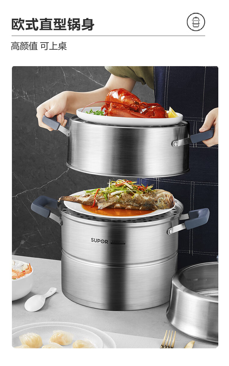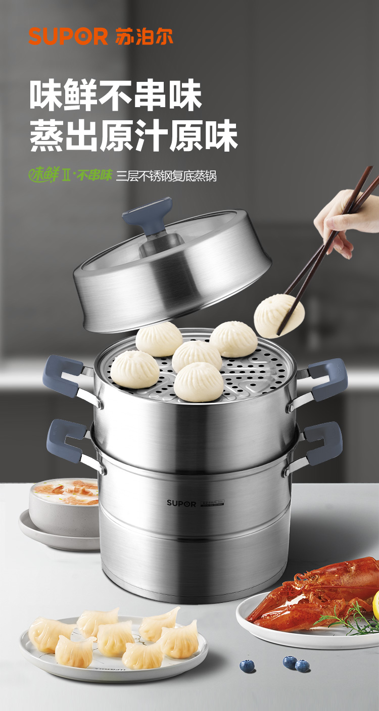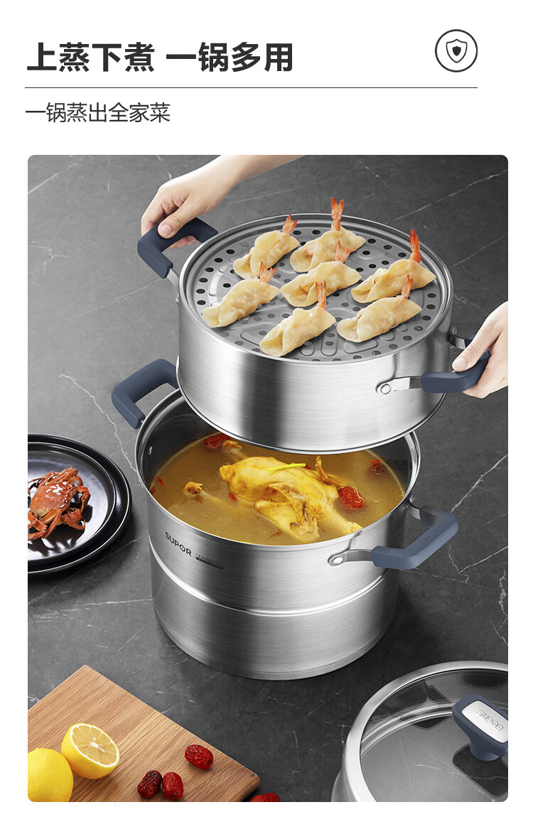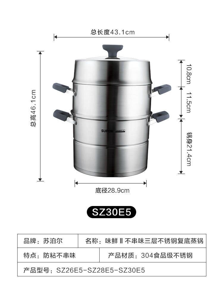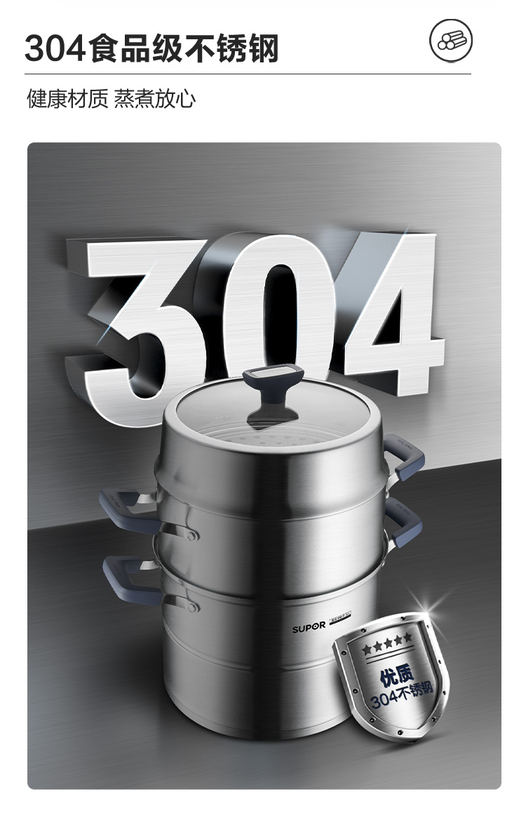 SUPOR steamer three-layer 304 stainless steel steamer steamer multi-layer large capacity gas induction cooker universal 28cm 28cm