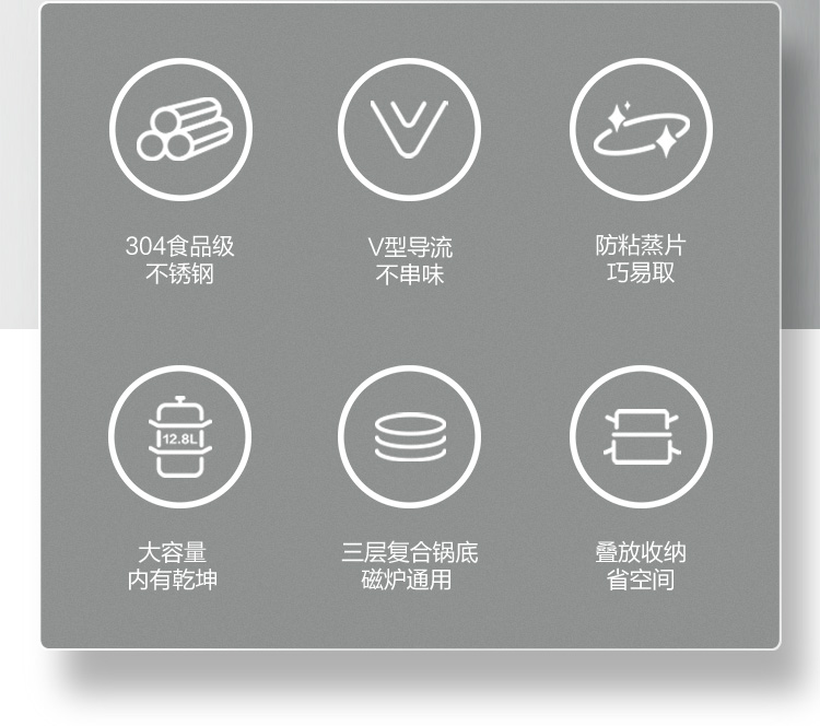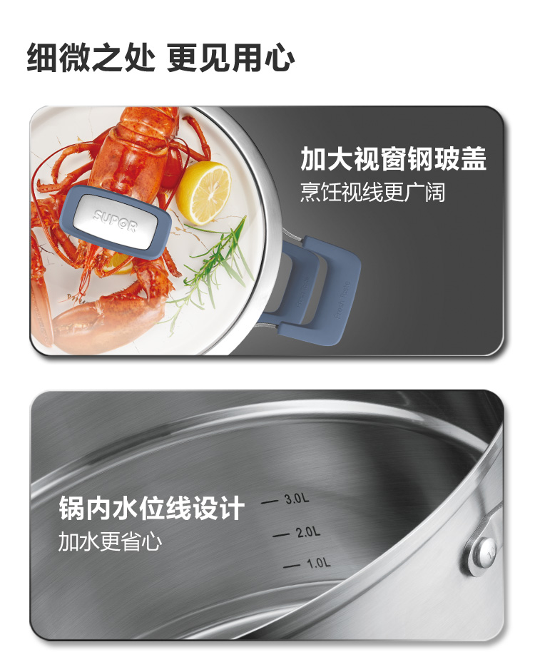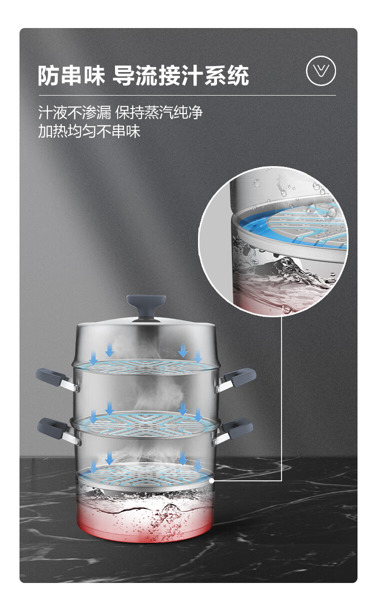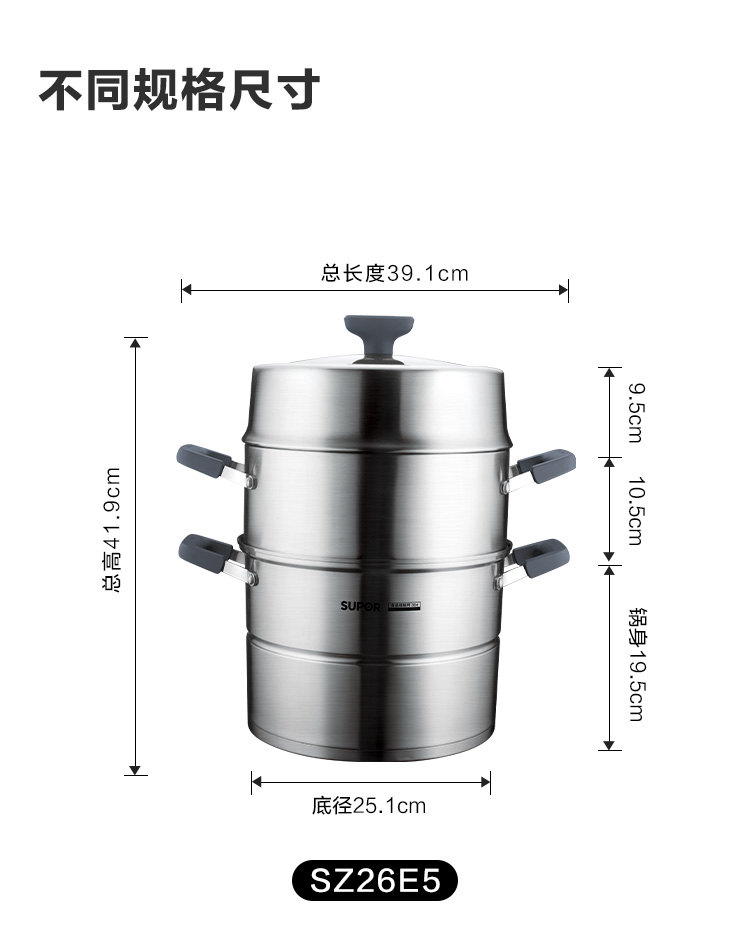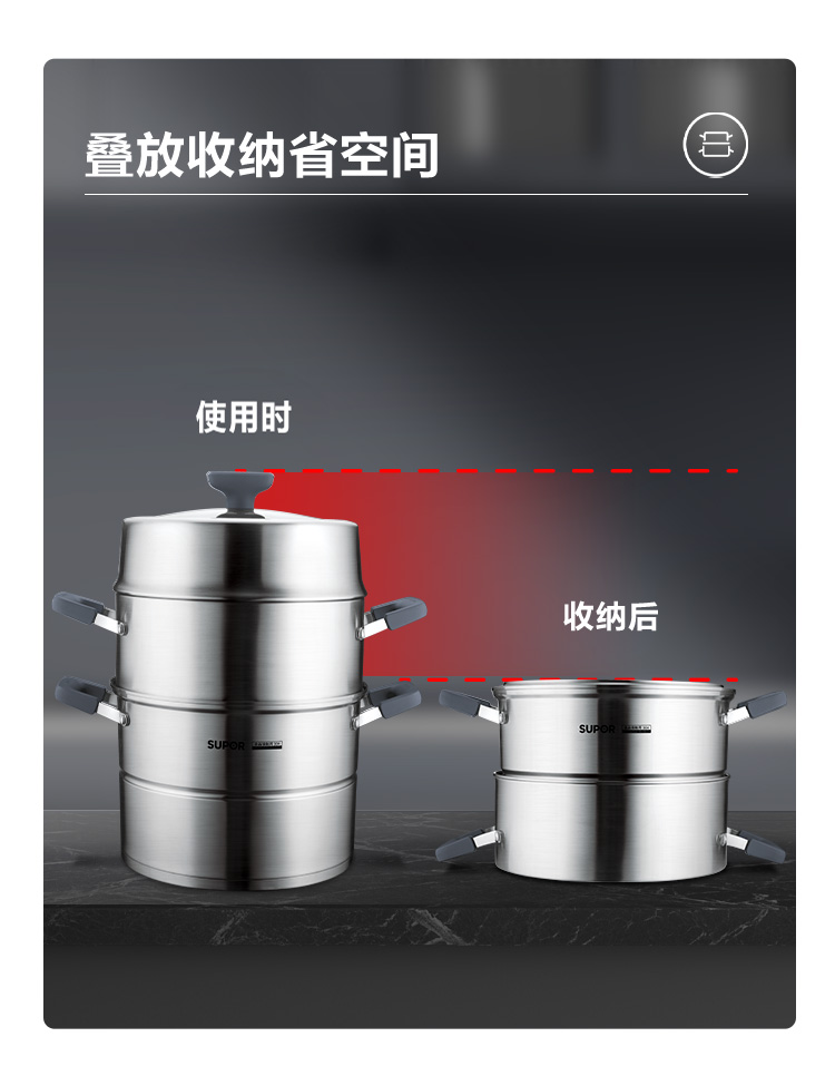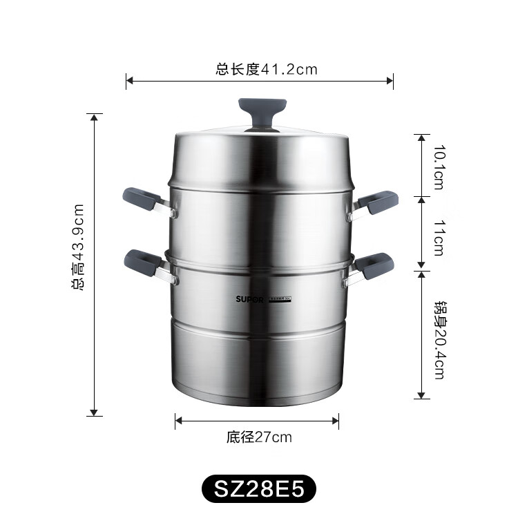 SUPOR steamer three-layer 304 stainless steel steamer steamer multi-layer large capacity gas induction cooker universal 28cm 28cm