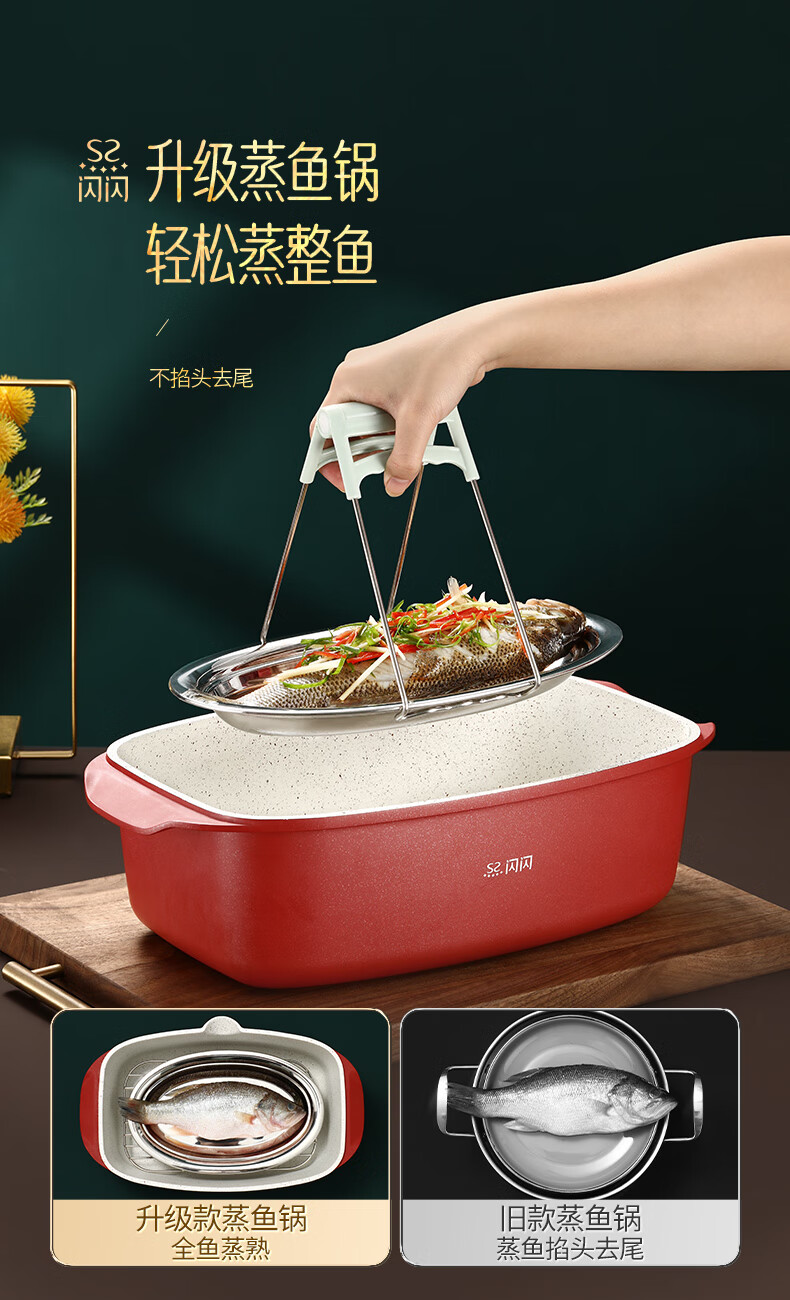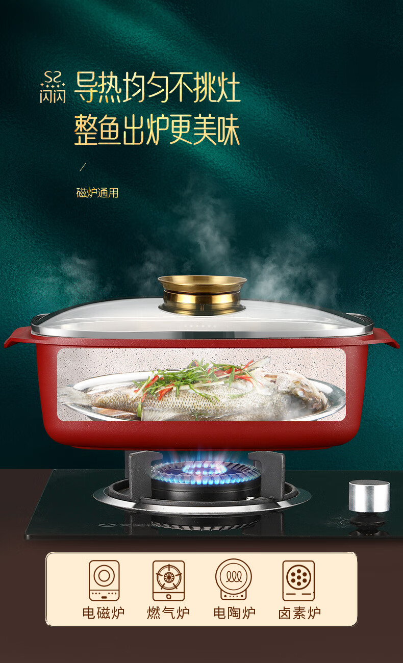 Shining high-quality fish steaming artifact, steaming fish pot, non-stick pot, oval steamer, non-stick steamer, steaming fish, induction cooker, gas universal pot, frying, cooking and steaming in one, with stainless steel steaming rack 32cm