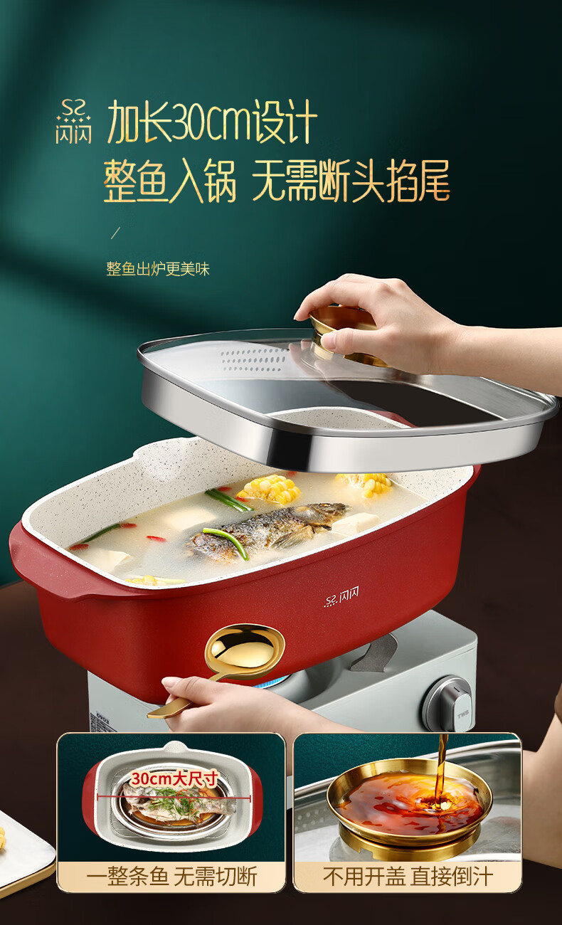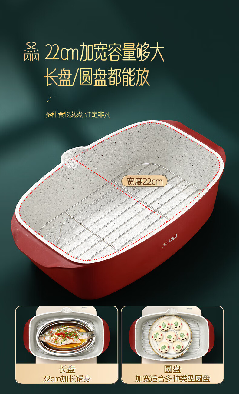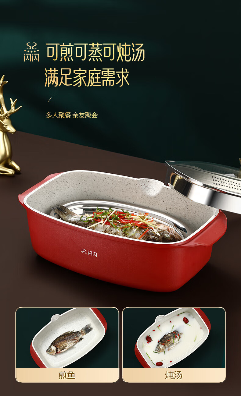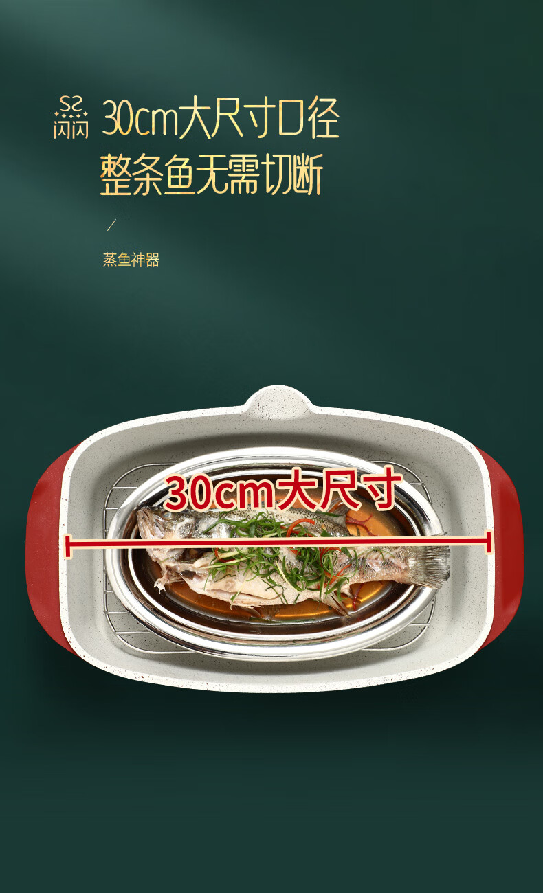 Shining high-quality medical stone color steamed fish pot household non-stick pot soup pot steamer gas stove induction cooker steaming pot large steaming pot steamed fish pot medical stone non-stick inner wall 29cm