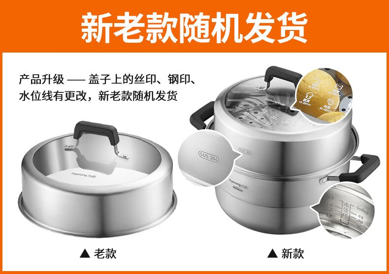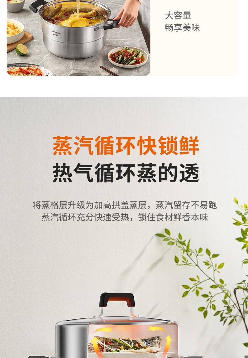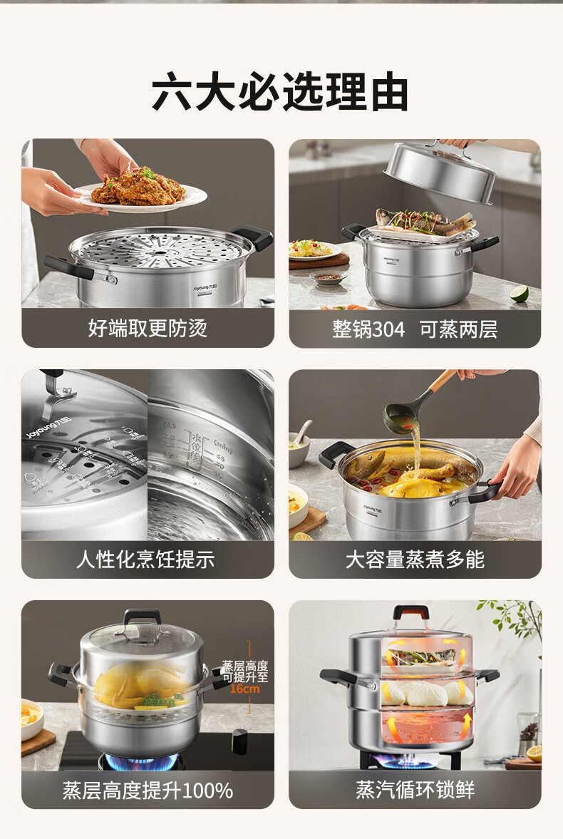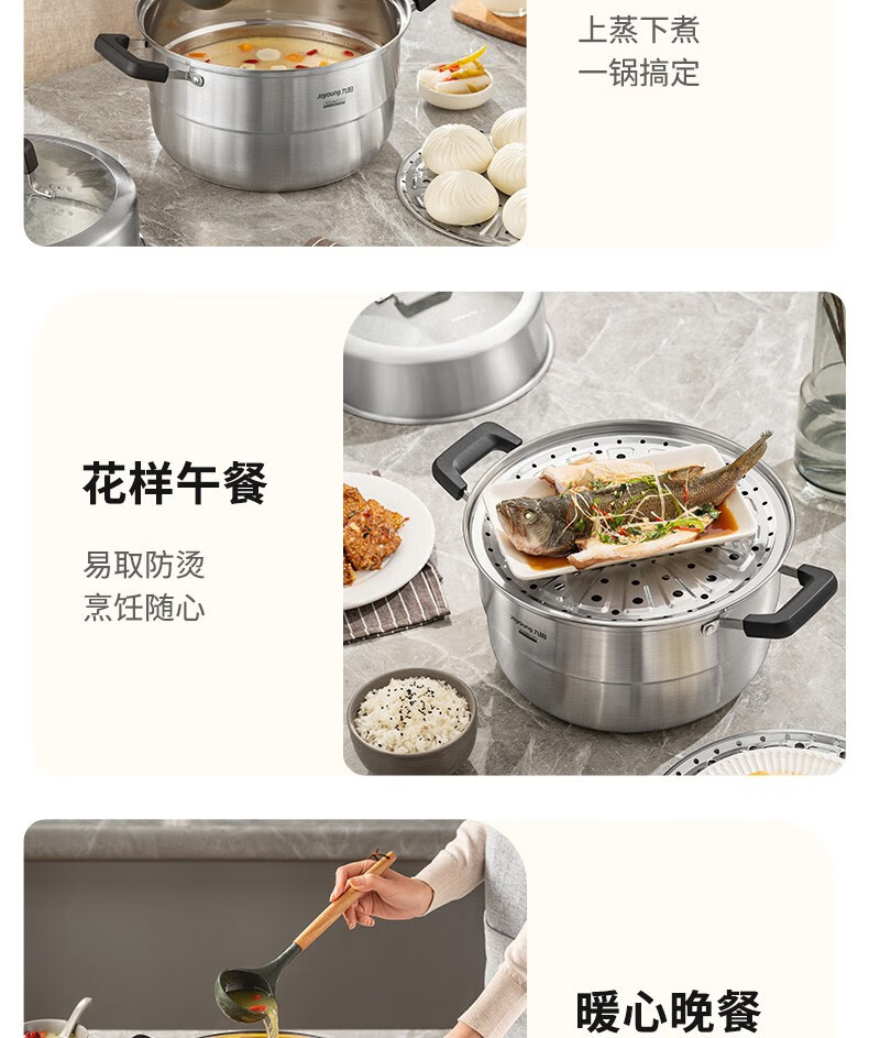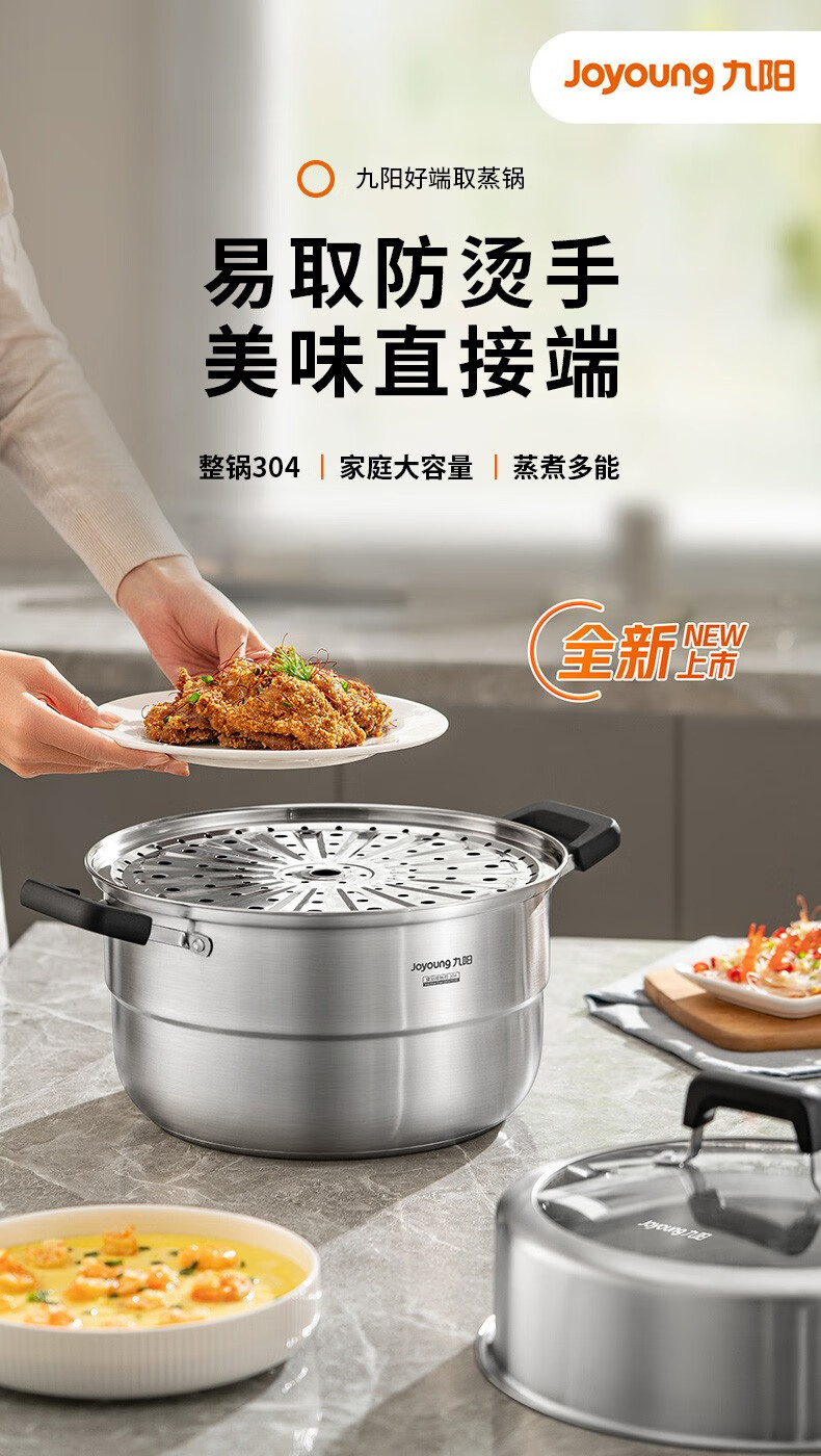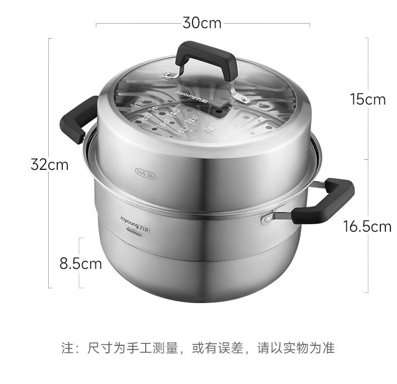 Joyoung Steamer 304 stainless steel double-layered bottom large-capacity high-arch lid steamer soup pot steamer induction cooker universal heightening design-CZ513- 2 layers 28cm